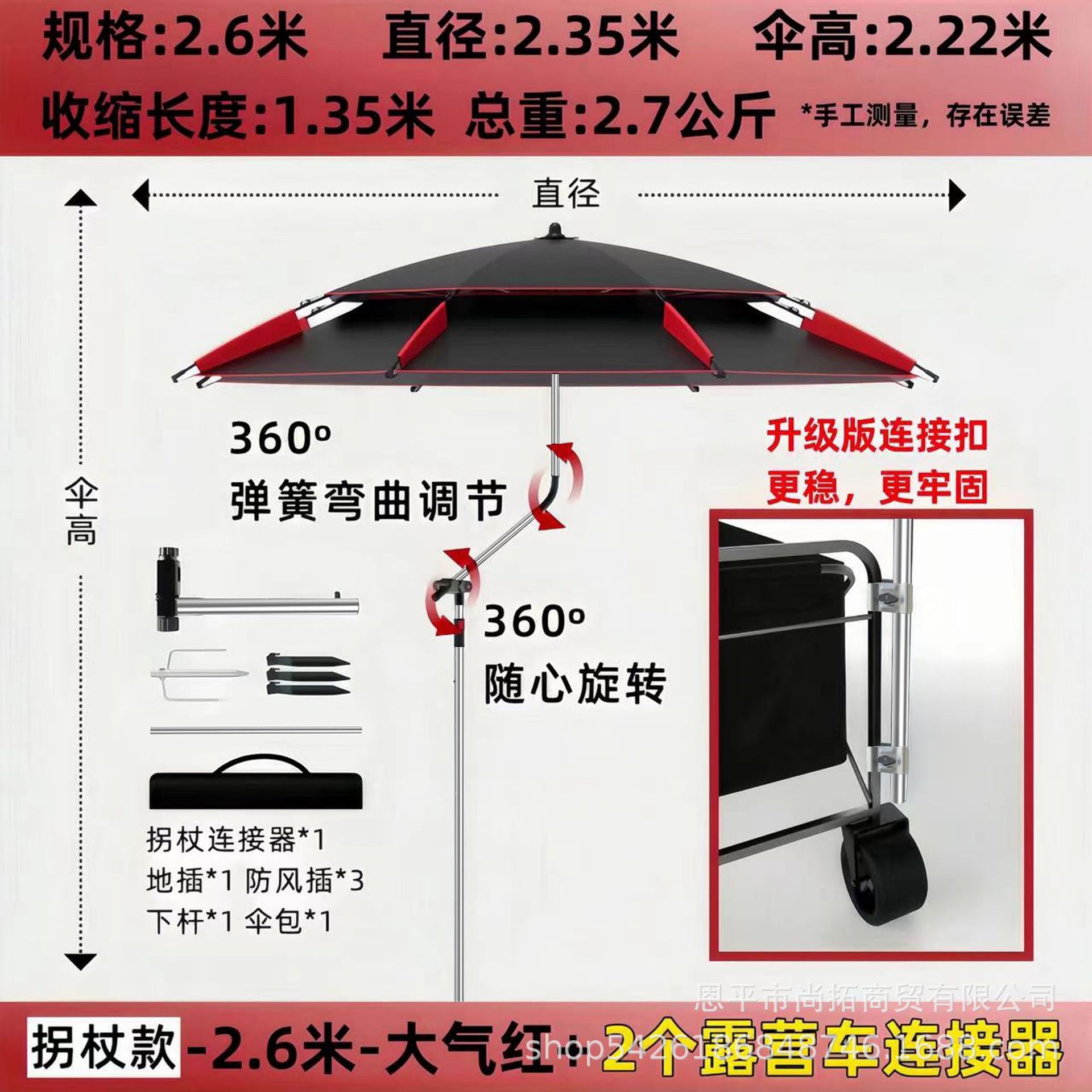 • [목발 모델] 2.6m - 대기 블랙/레드 + 캠핑카 커넥터 2개