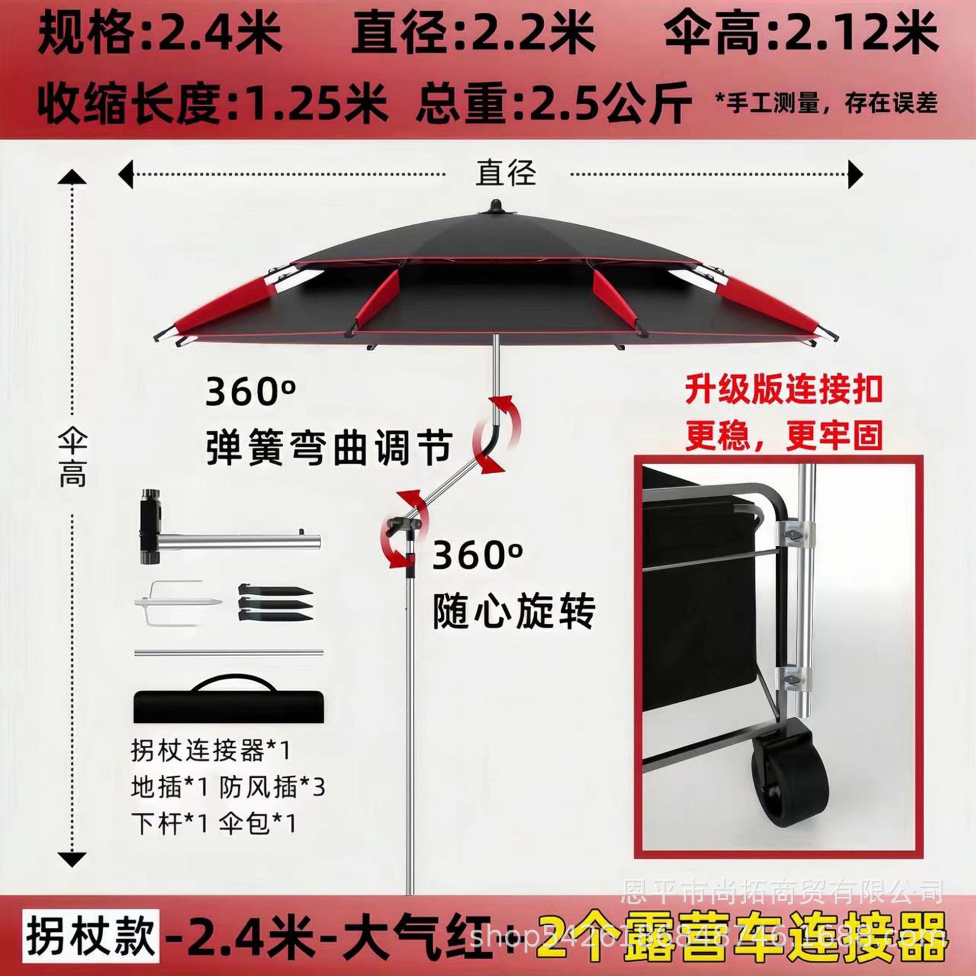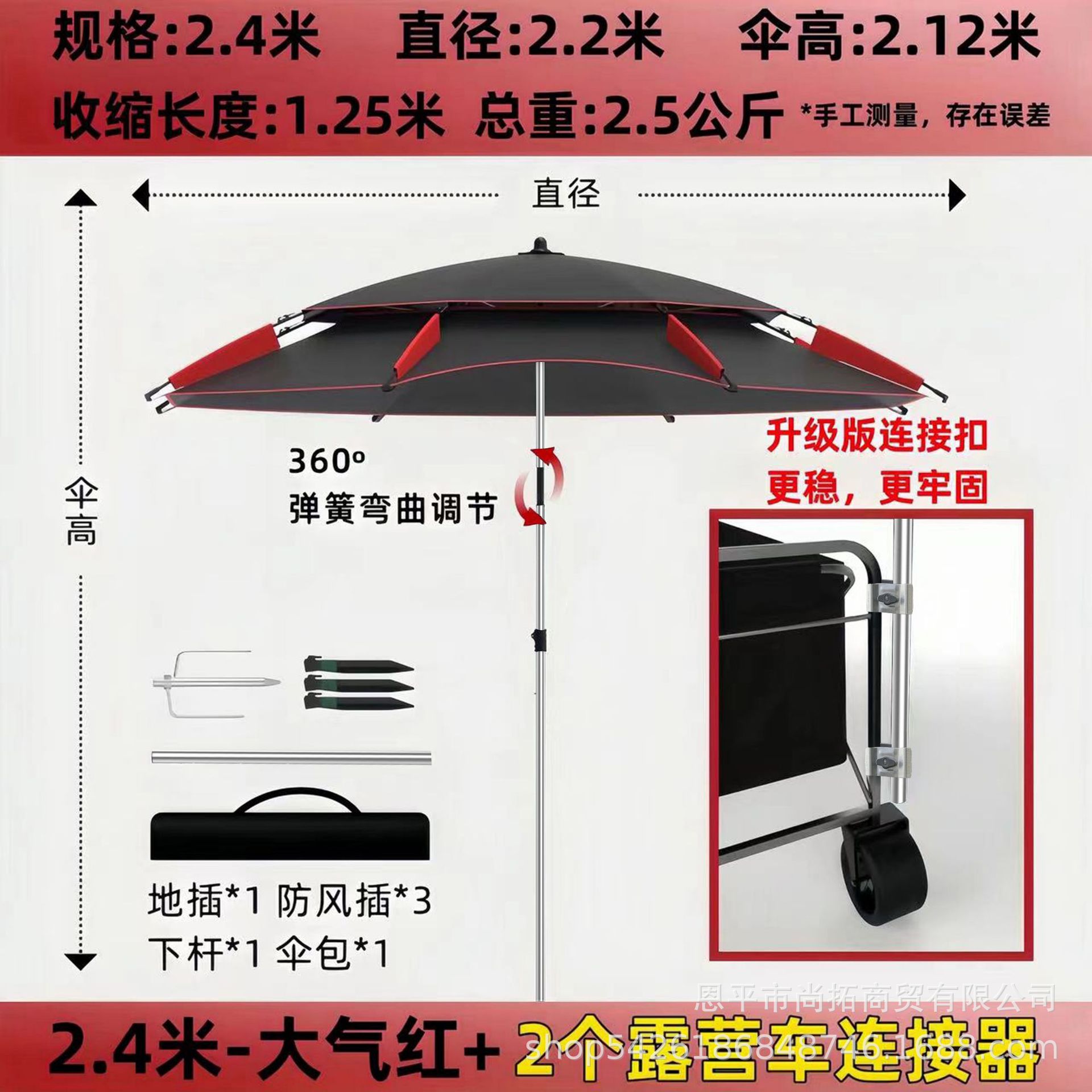• [목발 모델] 2.4m - 대기 블랙/레드 + 캠핑카 커넥터 2개