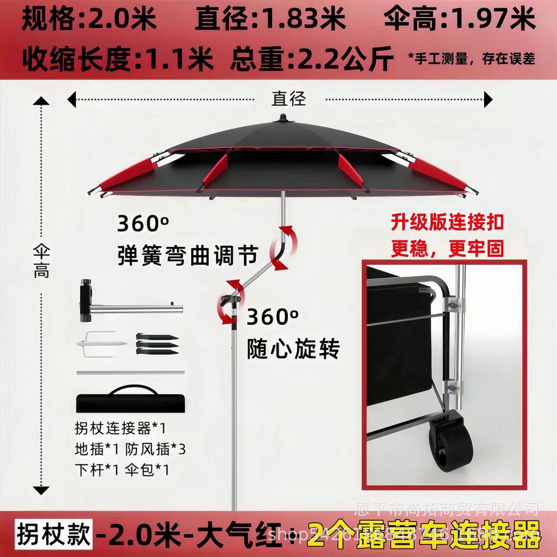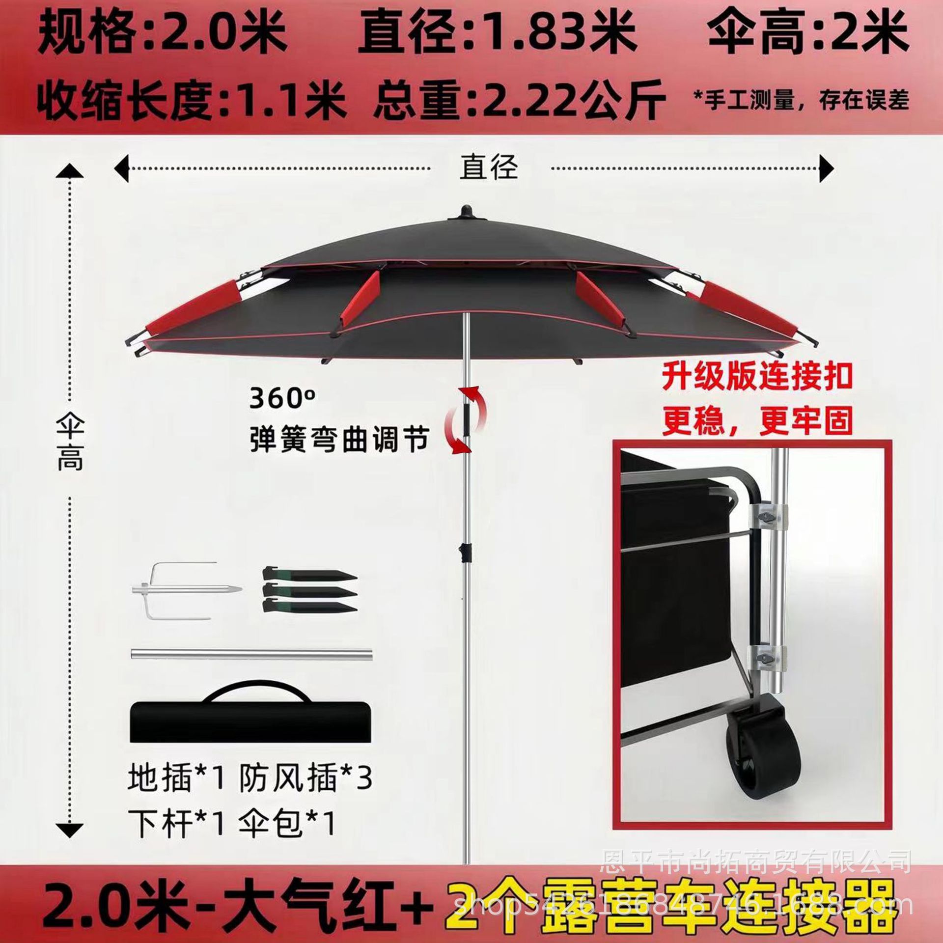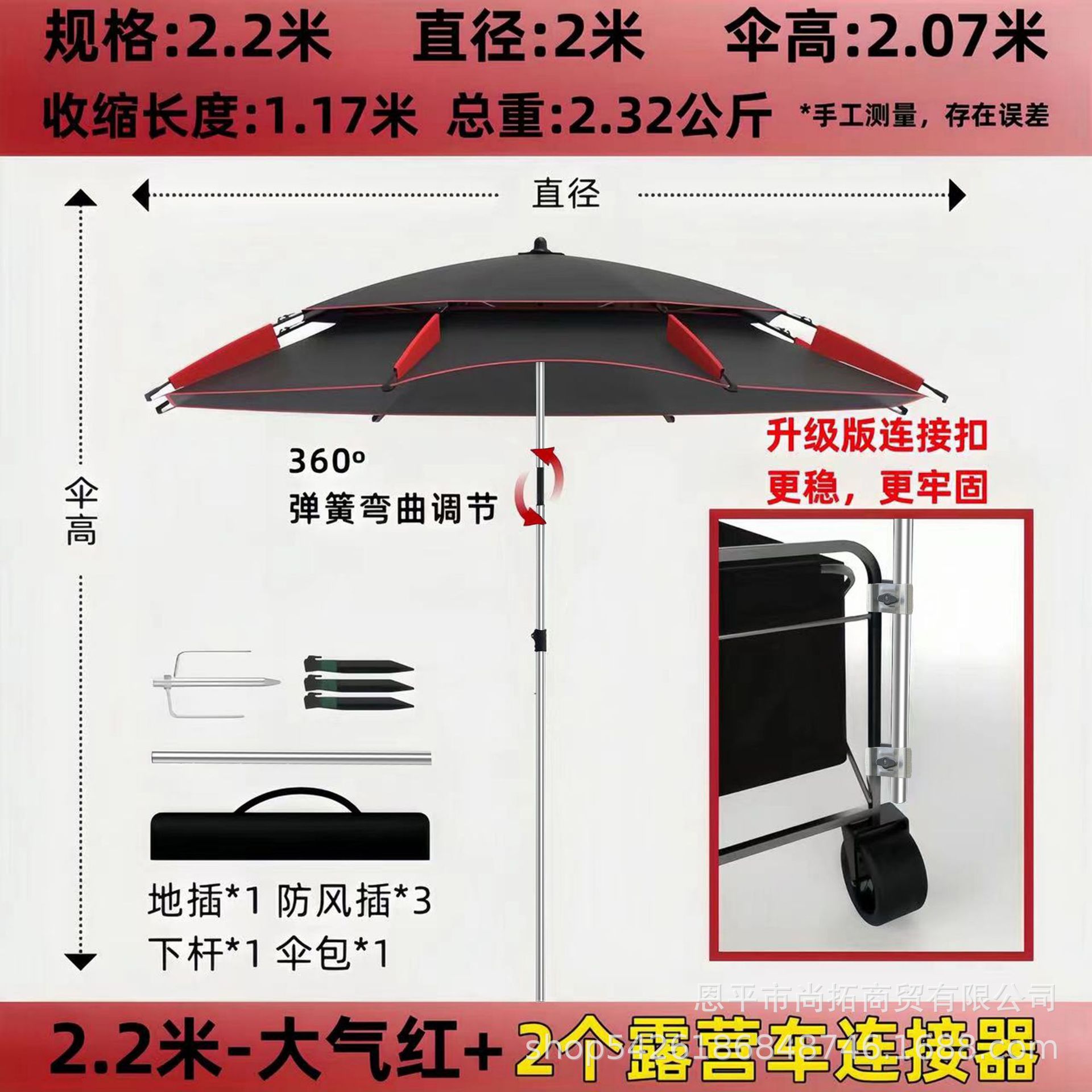 • [목발 모델] 2.2m - 대기 블랙/레드 + 캠핑카 커넥터 2개