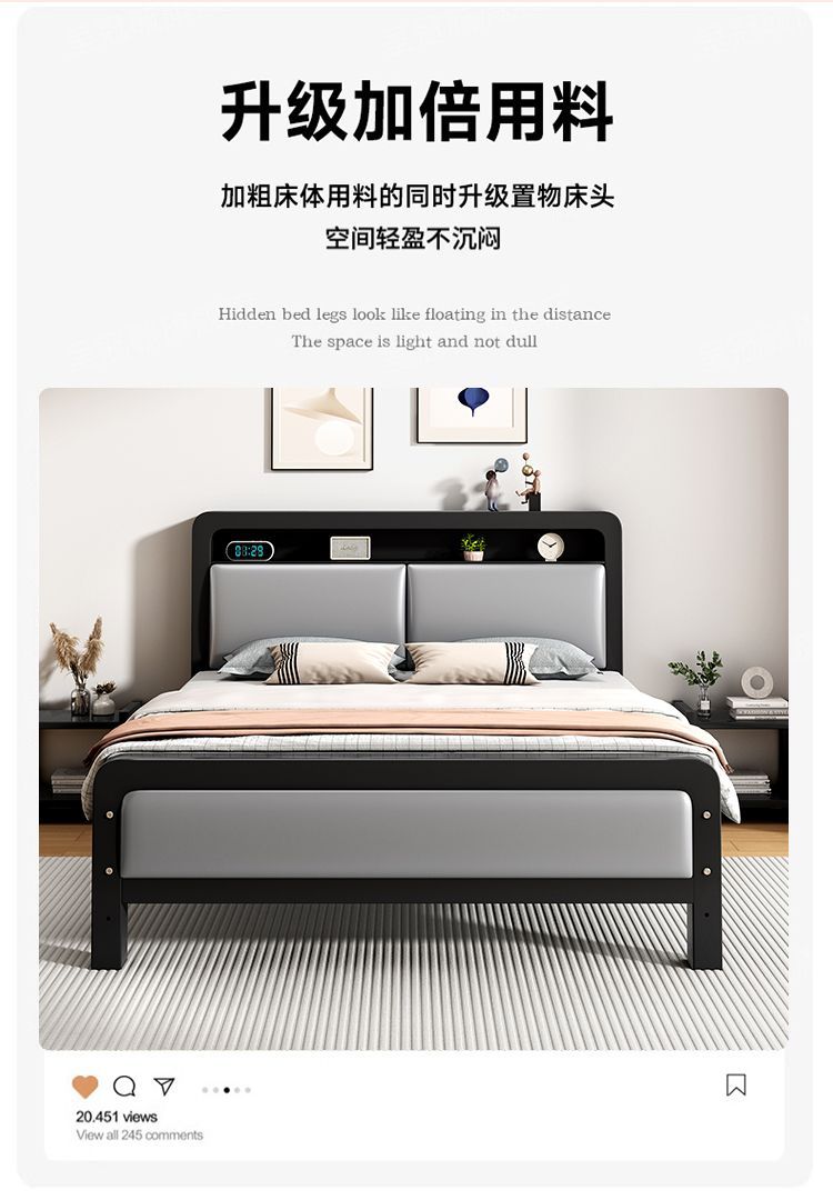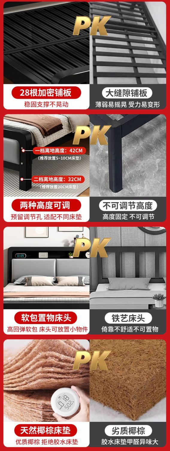 침실 철제 침대 가정용 심플 1.8m 두꺼운 더블 침대 임대실 1m 철제 프레임 침대 1.5m 철제 침대스토어 가기