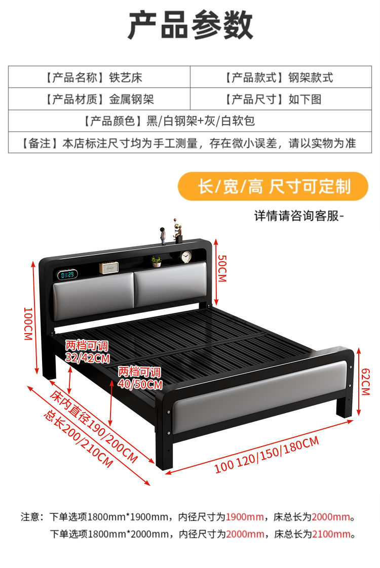 침실 철제 침대 가정용 심플 1.8m 두꺼운 더블 침대 임대실 1m 철제 프레임 침대 1.5m 철제 침대