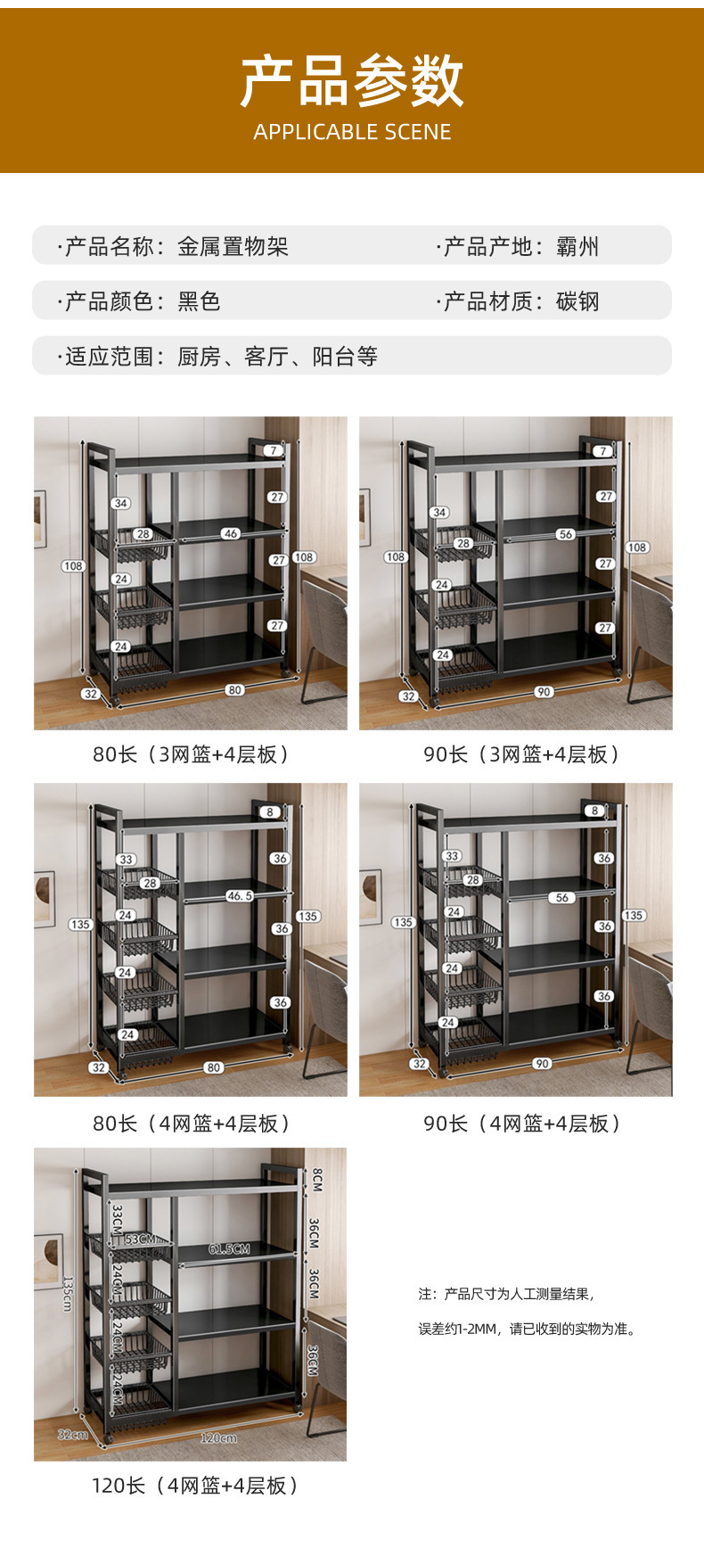 • 검정색 80 길이(메시바구니 3개 + 보드 4개)