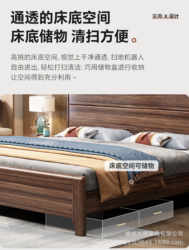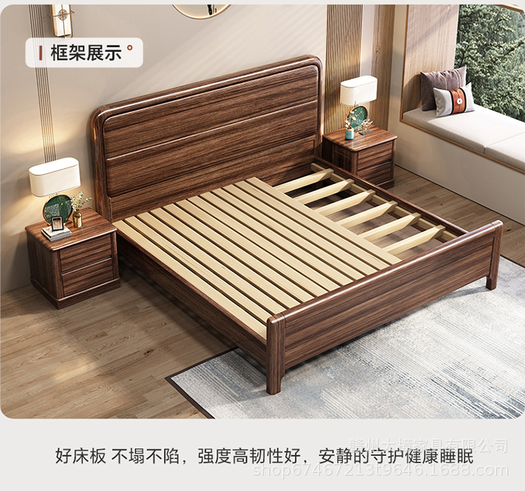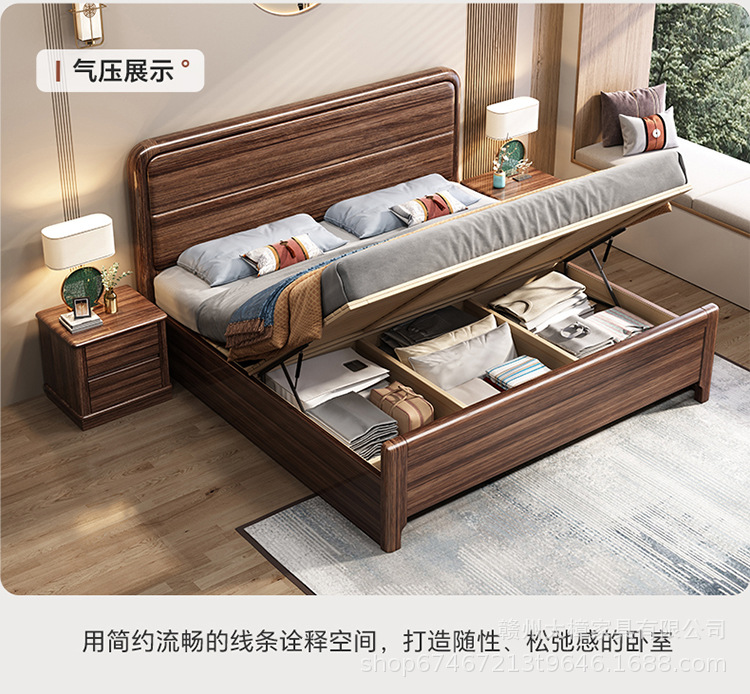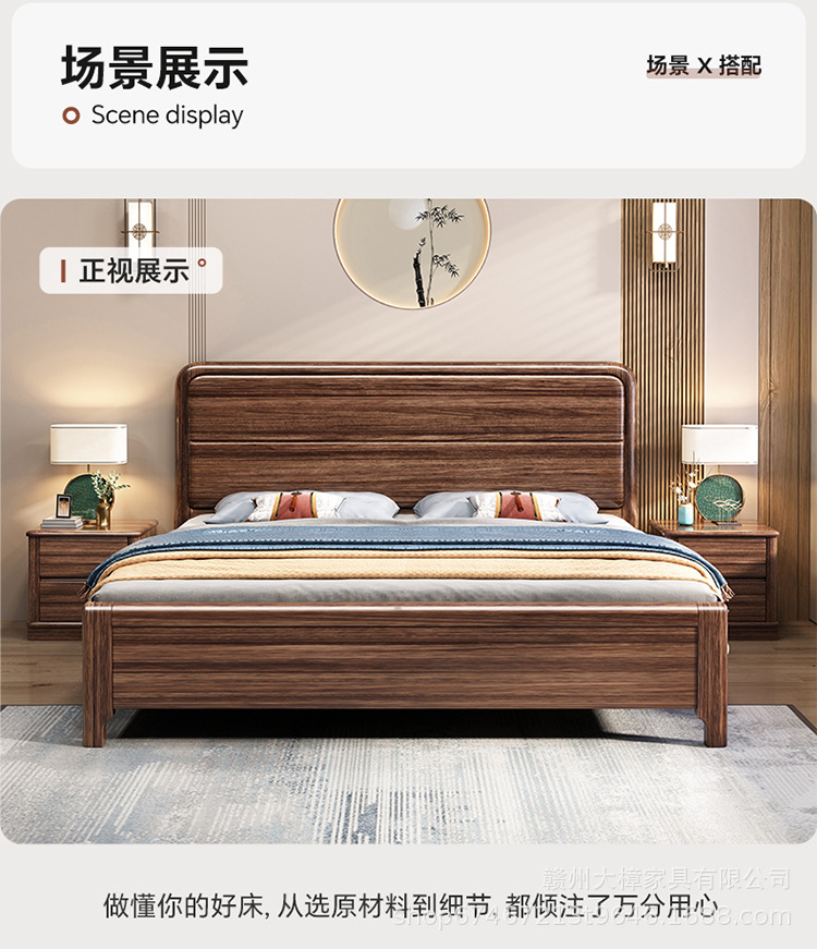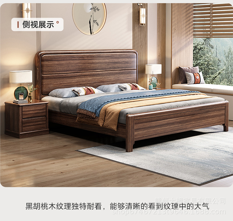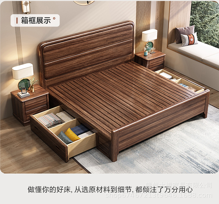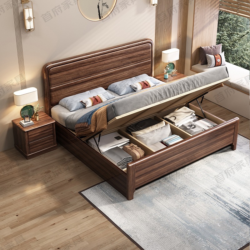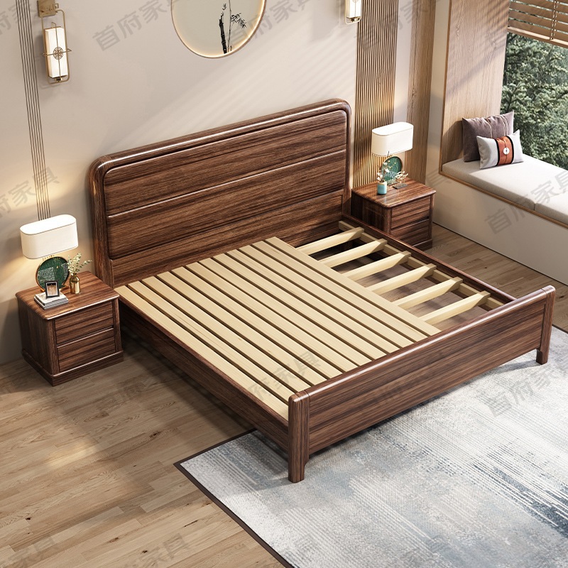 호두나무 침대, 가벼운 럭셔리, 미니멀리스트 홈 침실, 단단한 나무 침대, 중소형 수납 마스터 침실, 새로운 중국 스타일의 단단한 나무 침대스토어 가기