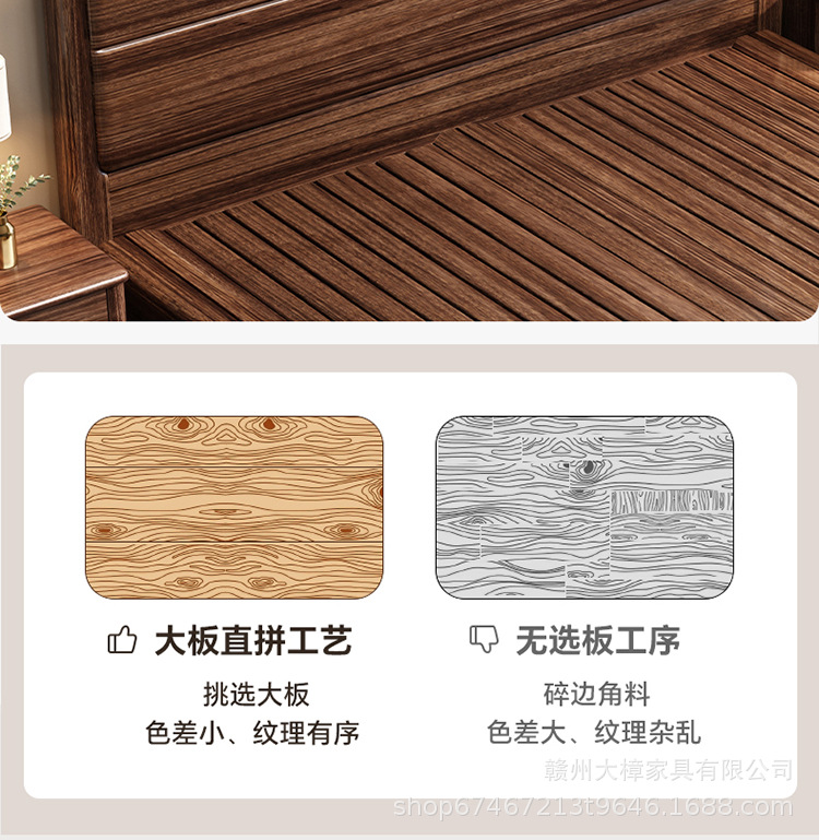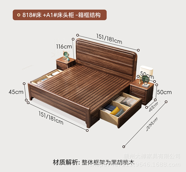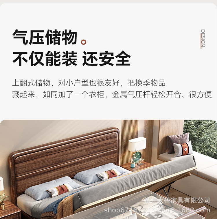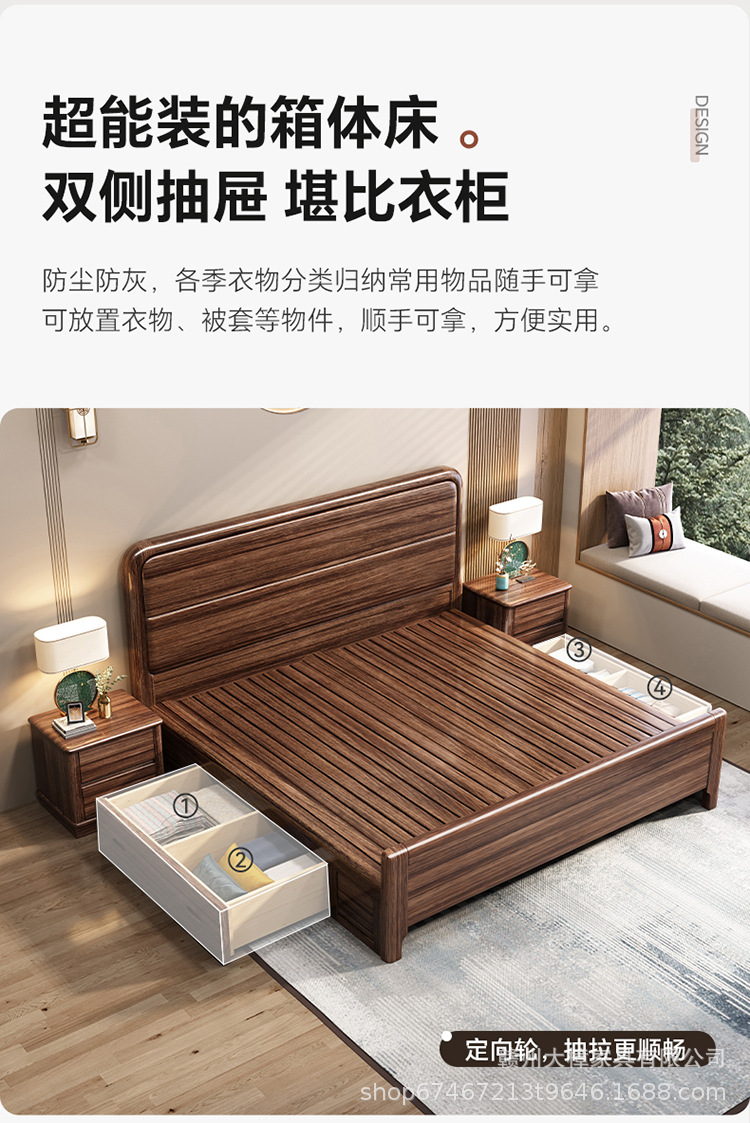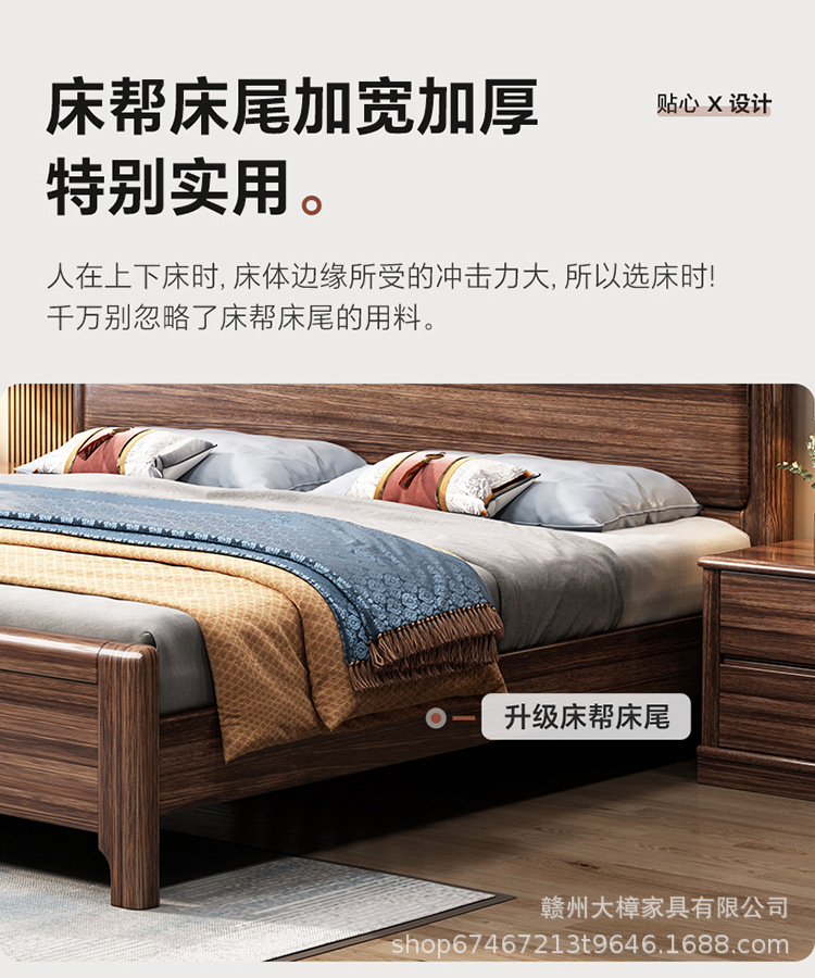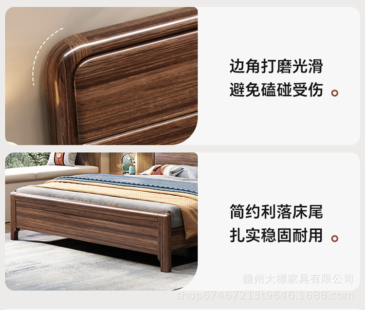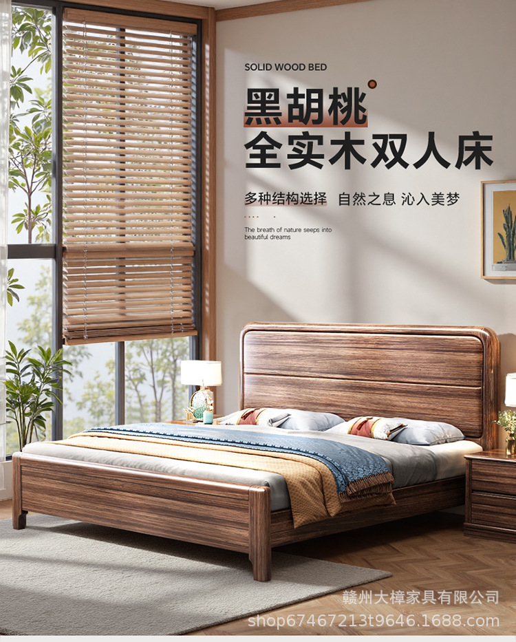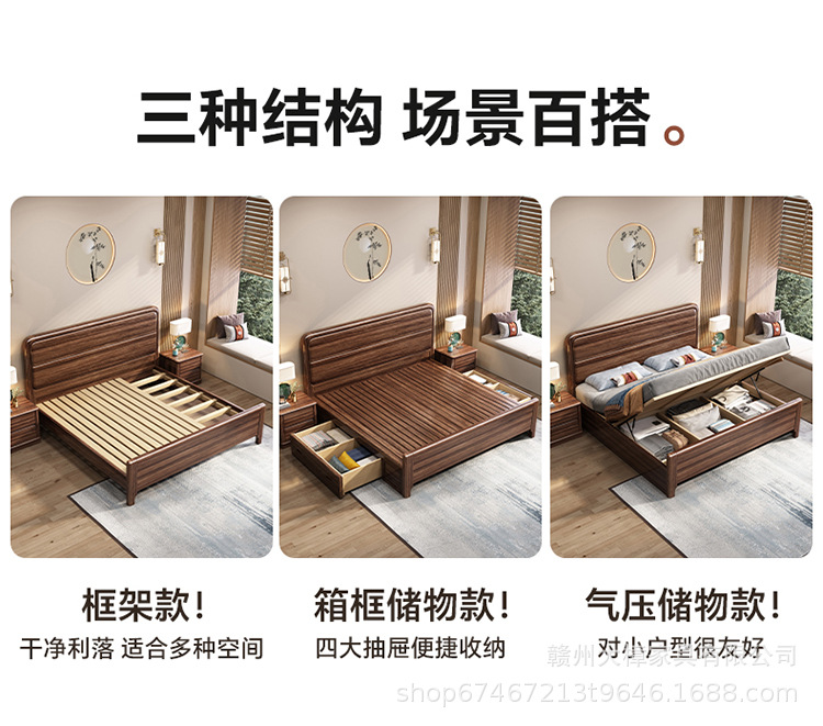 호두나무 침대, 가벼운 럭셔리, 미니멀리스트 홈 침실, 단단한 나무 침대, 중소형 수납 마스터 침실, 새로운 중국 스타일의 단단한 나무 침대스토어 가기