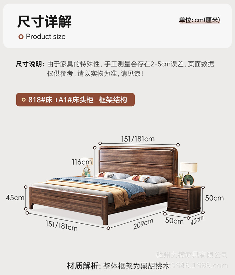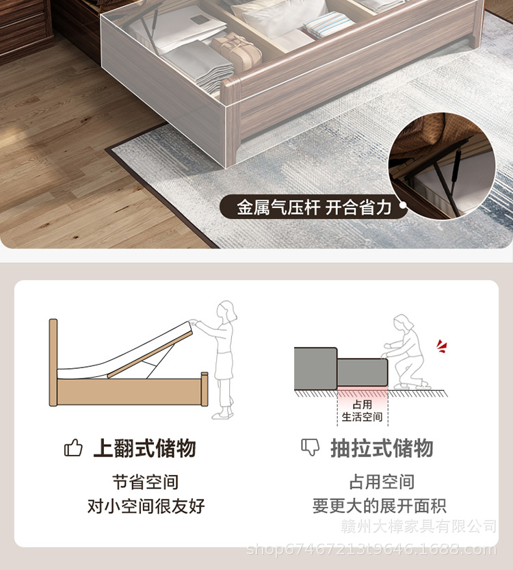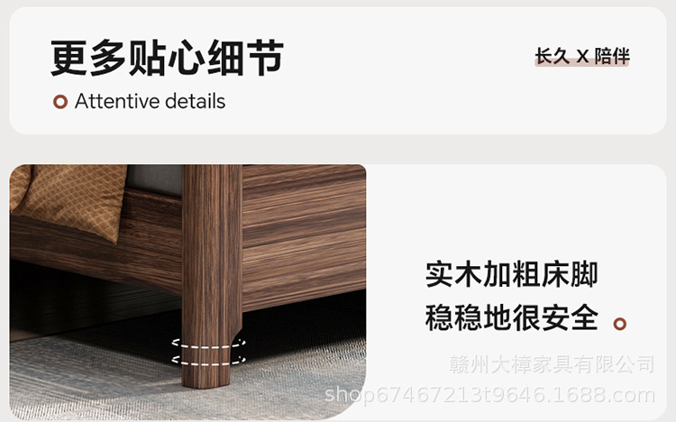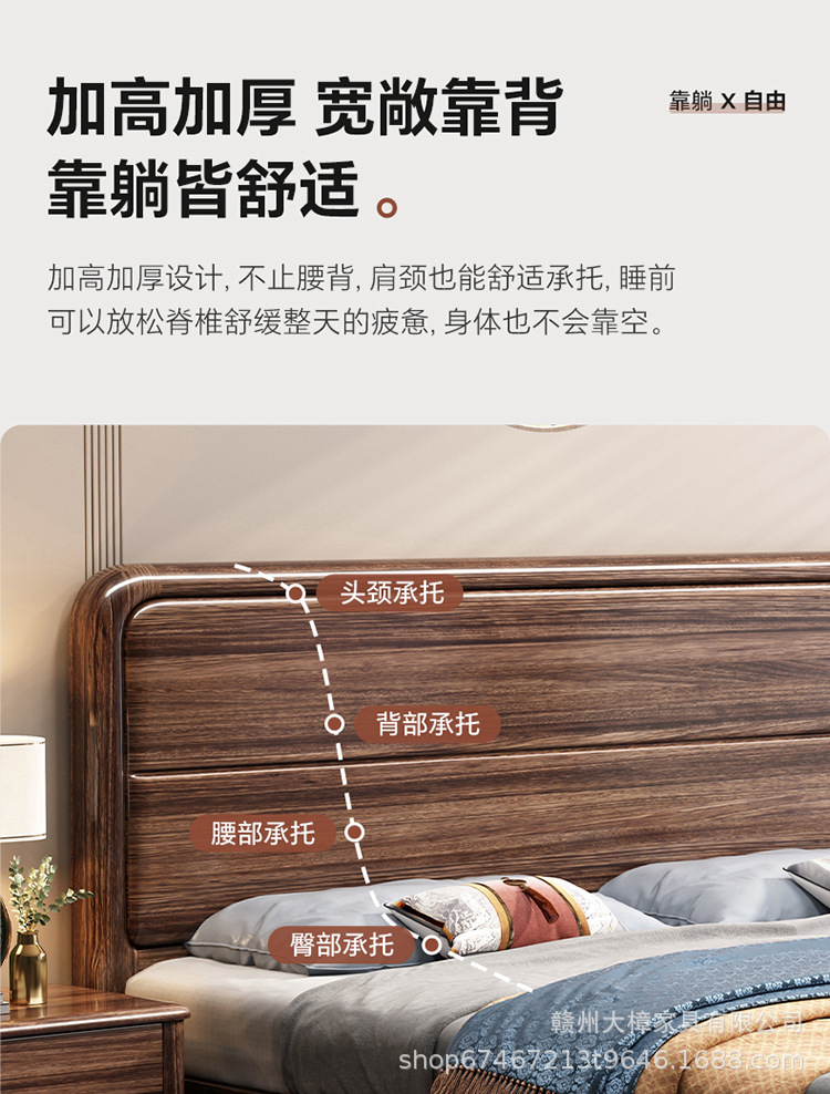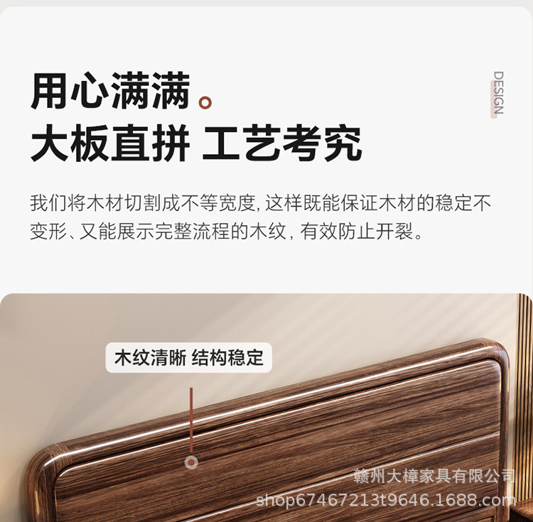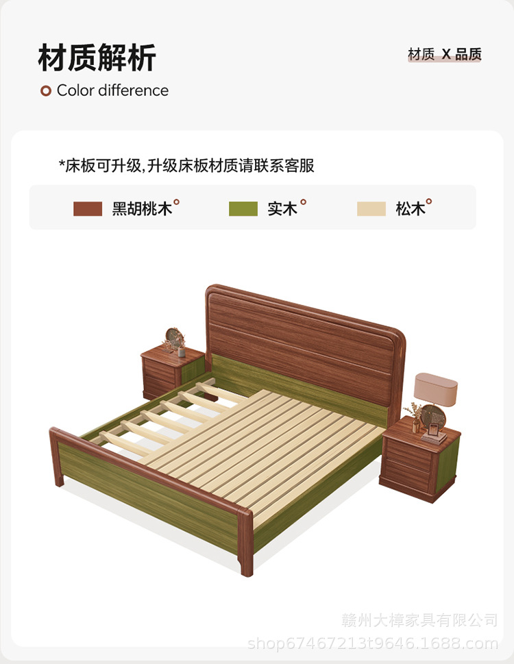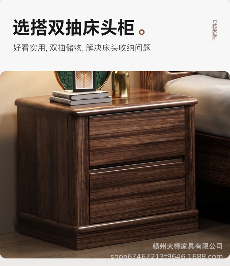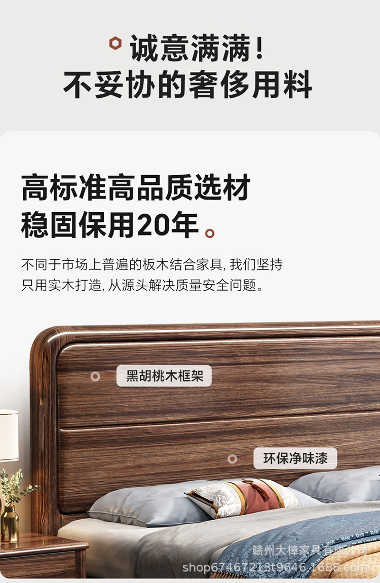 호두나무 침대, 가벼운 럭셔리, 미니멀리스트 홈 침실, 단단한 나무 침대, 중소형 수납 마스터 침실, 새로운 중국 스타일의 단단한 나무 침대스토어 가기