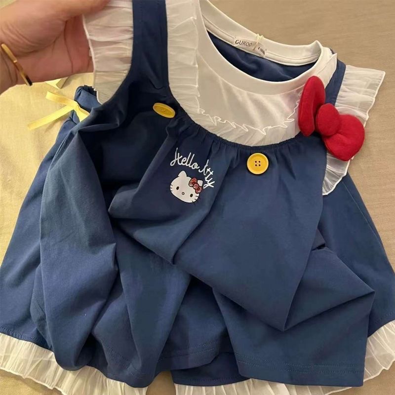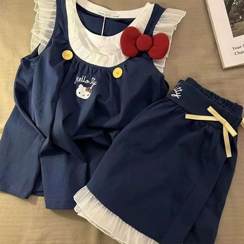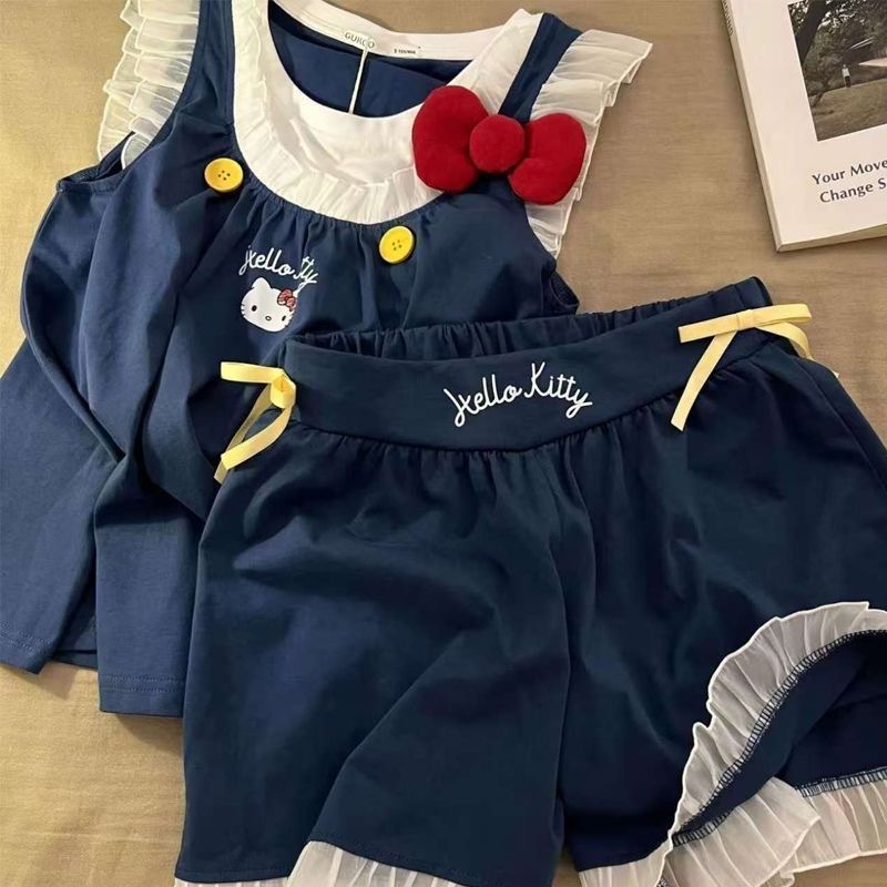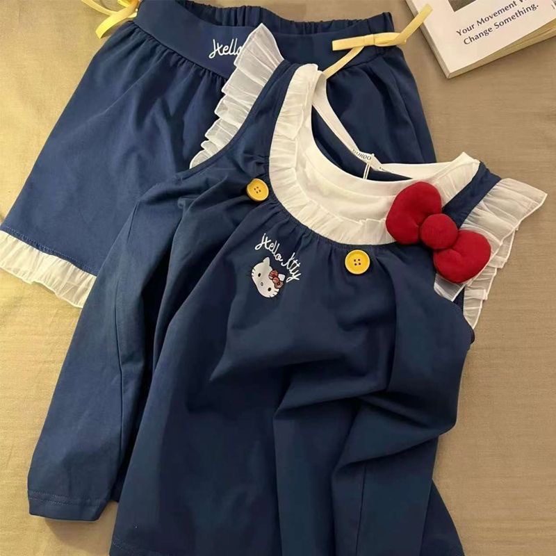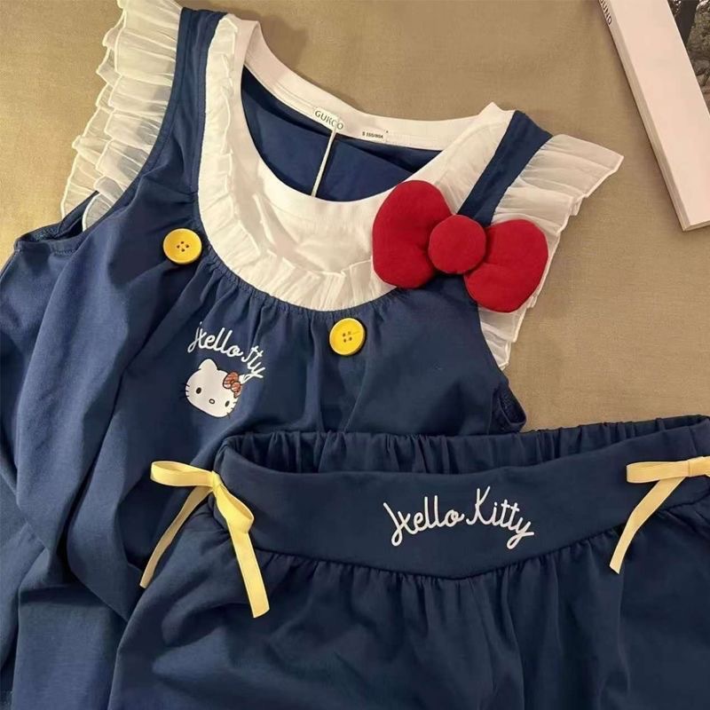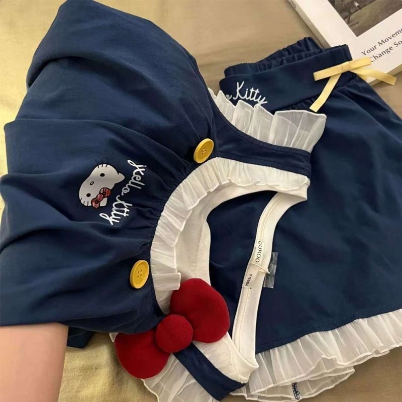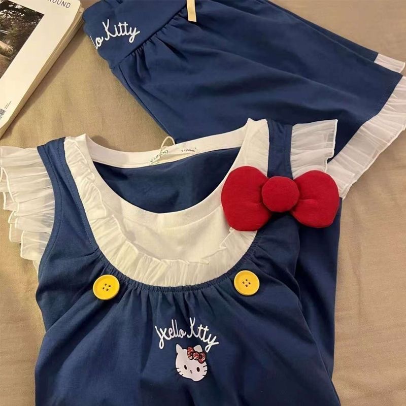 귀여운 헬로키티 작은 날개 잠옷, 고급스러운 레이스 반바지, 소녀 잠옷스토어 가기