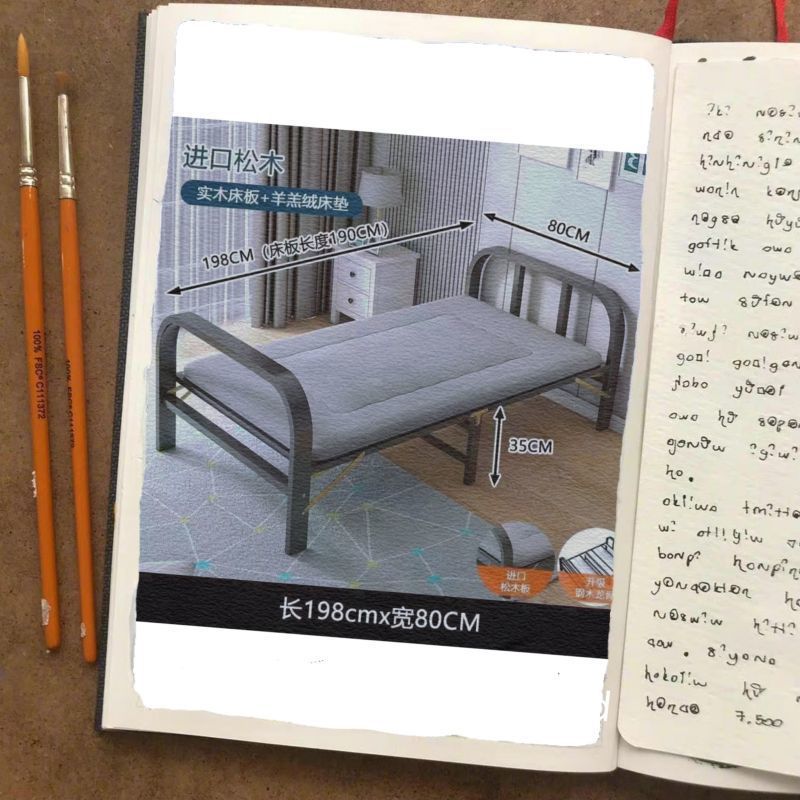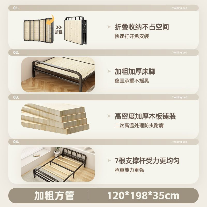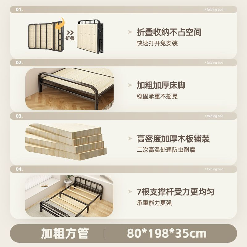 접이식 침대 원목 침대판 사무실 점심 침대 가정용 간이 더블 하드 침대 동반 침대 철제 프레임 싱글 침대