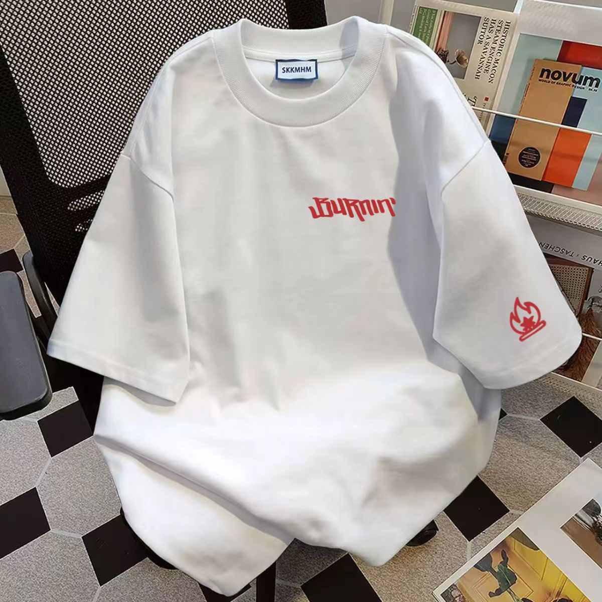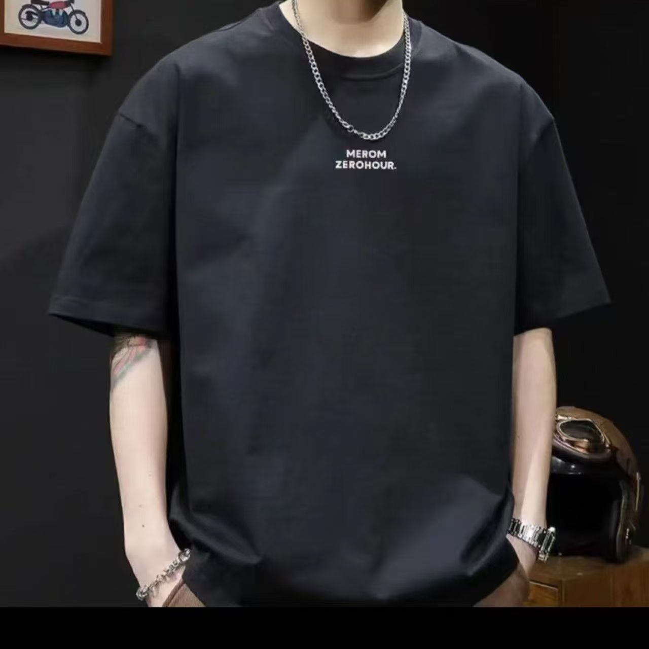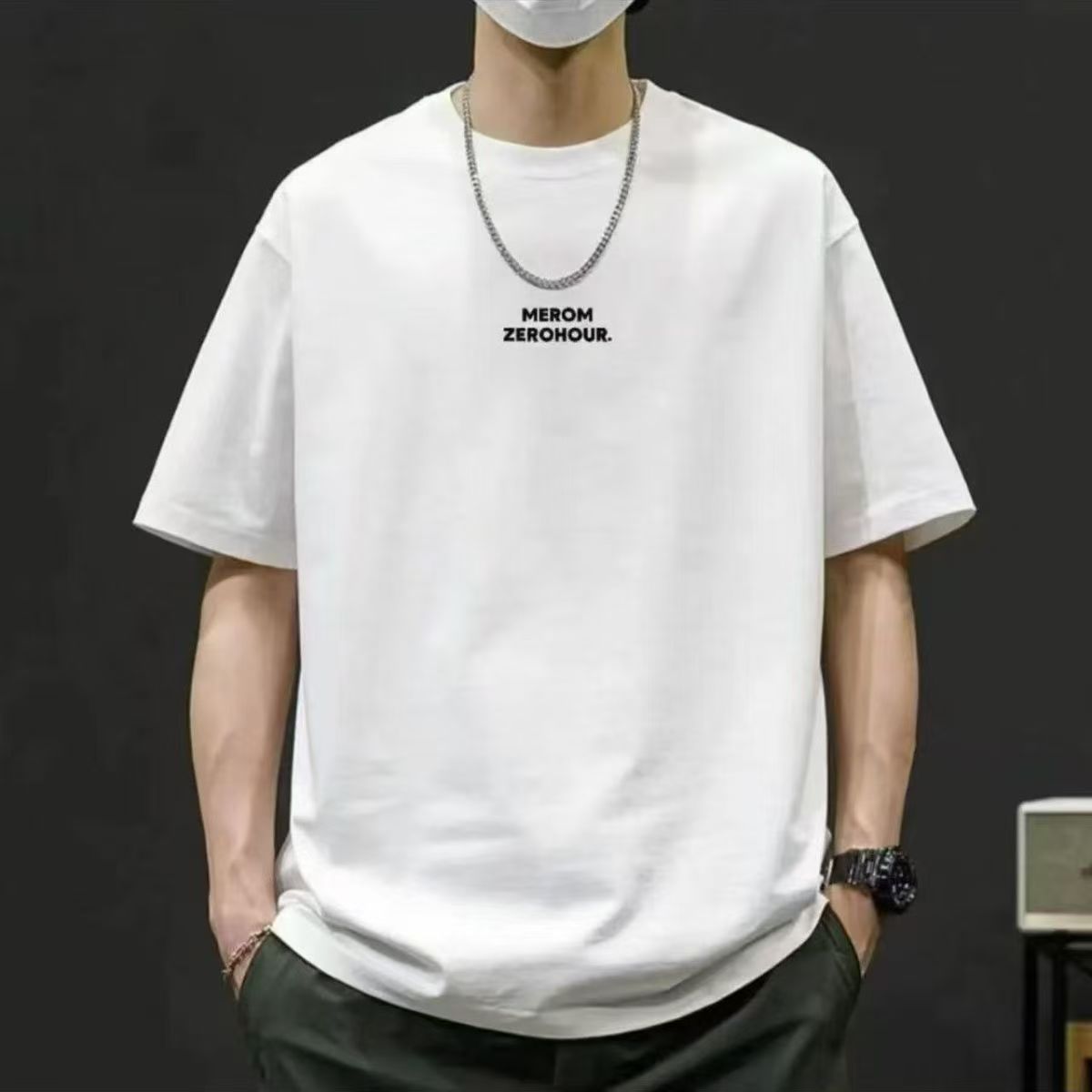 남성용 반팔 티셔츠 아이스 실크 반팔 남성용 티셔츠 여름 라운드 넥 바닥 셔츠 남성용 캐주얼 다용도 핸섬 짧은 티셔츠스토어 가기