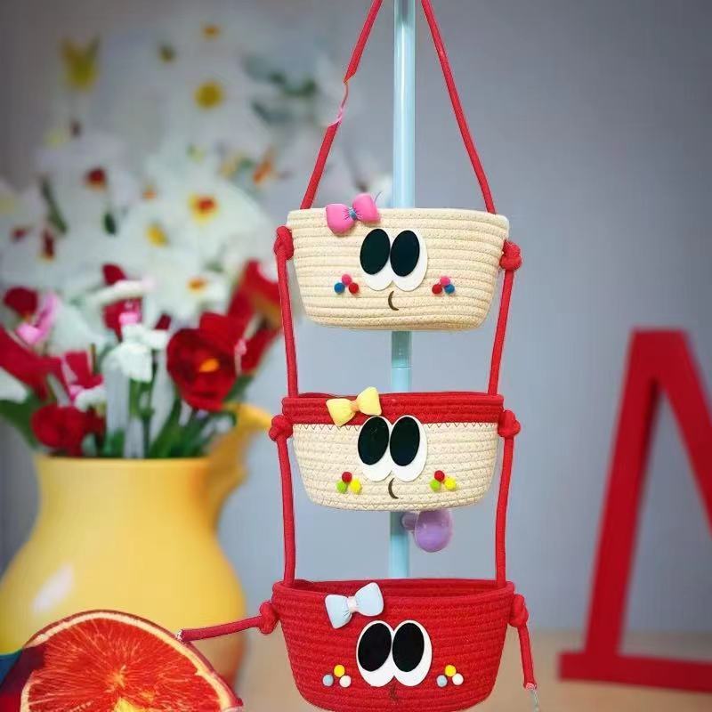 • 뜨거운 큰 눈 소녀 빨간색 3층 교수형 바구니