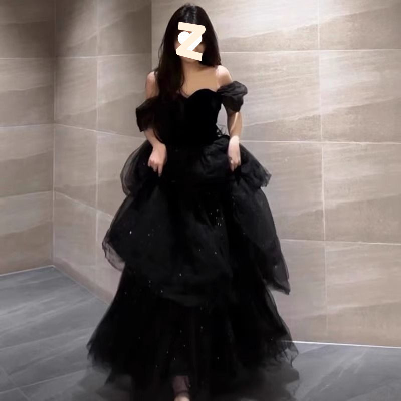 이브닝 드레스, 공주 드레스, 블랙 라이트 럭셔리 틈새 성인식, 생일, 보컬 아트 시험 공연 드레스, 튜브탑 연회
