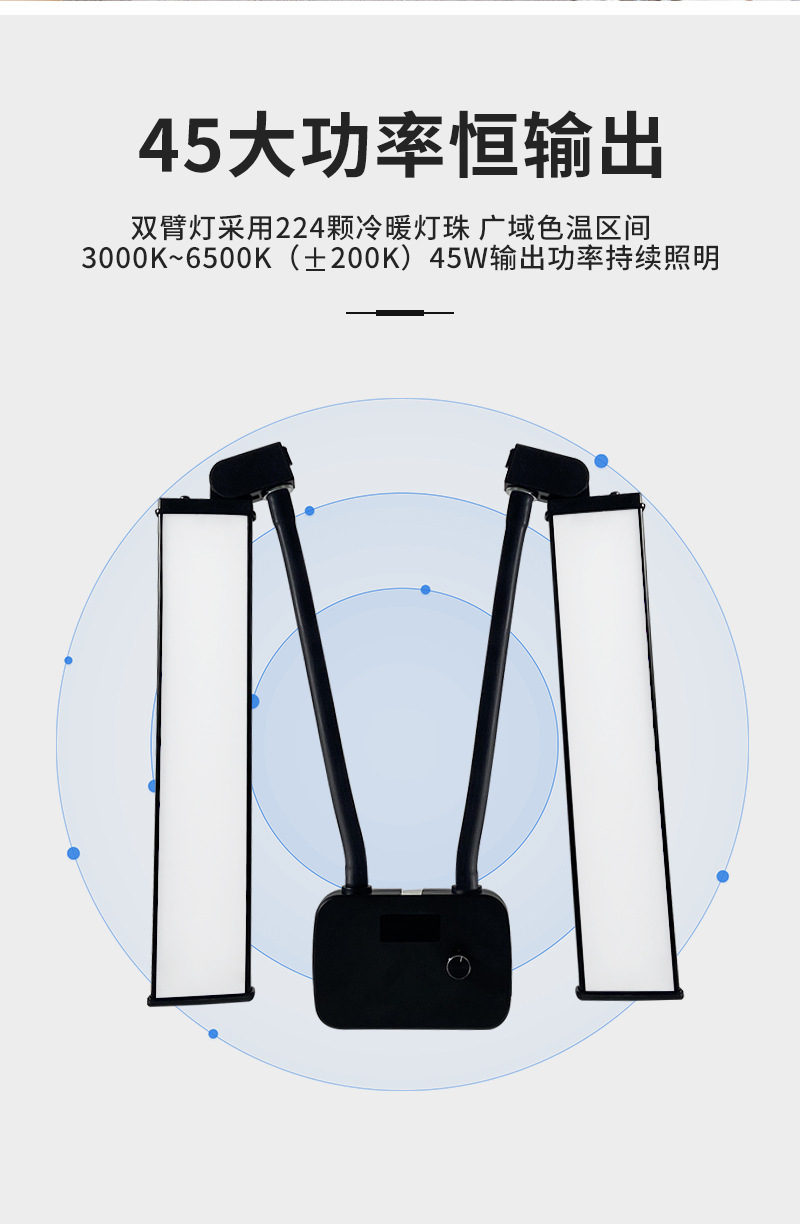 접이식 보조 조명, LED 뷰티 라이트, 인터넷 셀럽 라이브 방송용 듀얼 암 라이트, 45W 듀얼 튜브 사진 촬영 및 셀카 조명