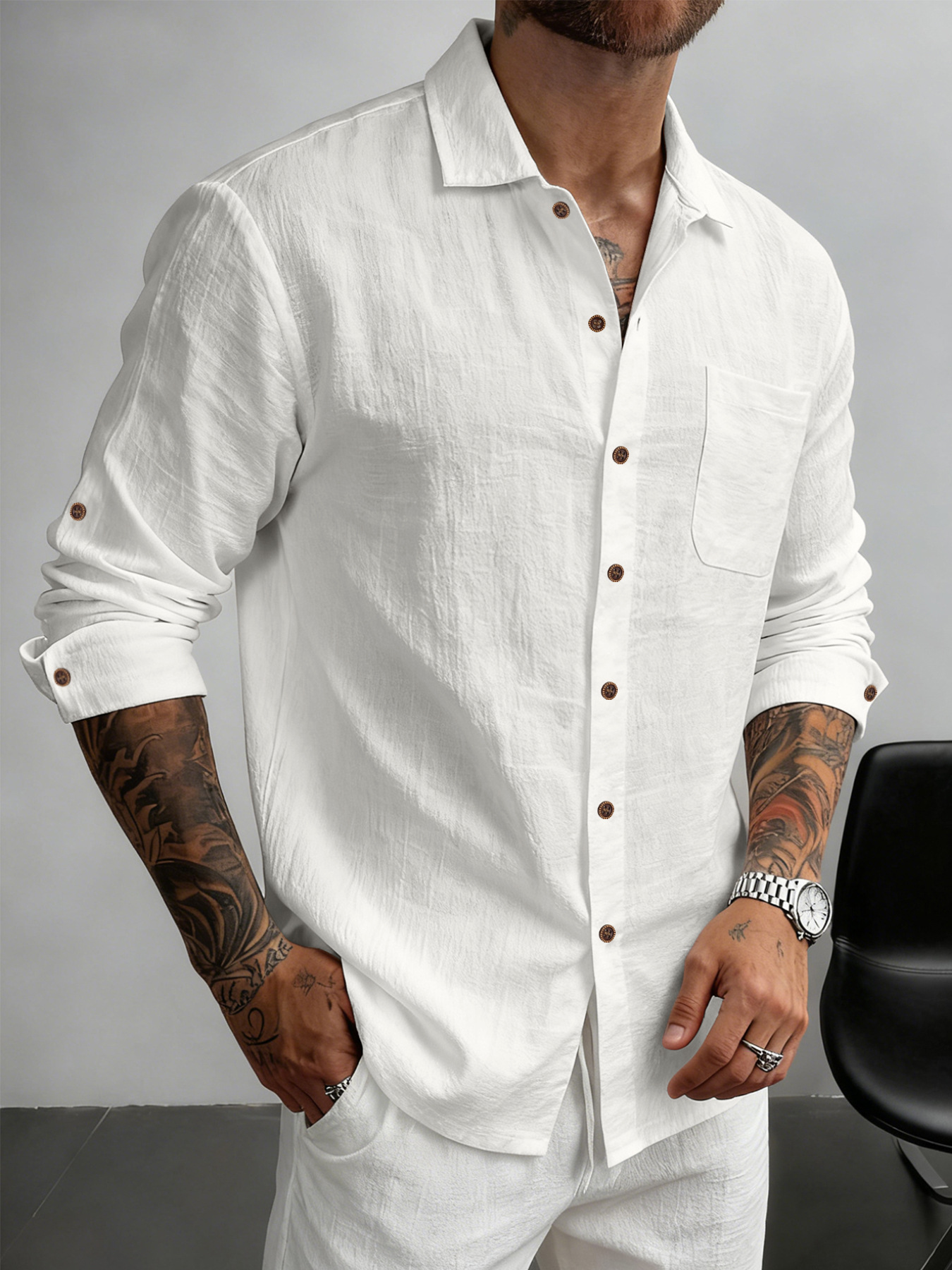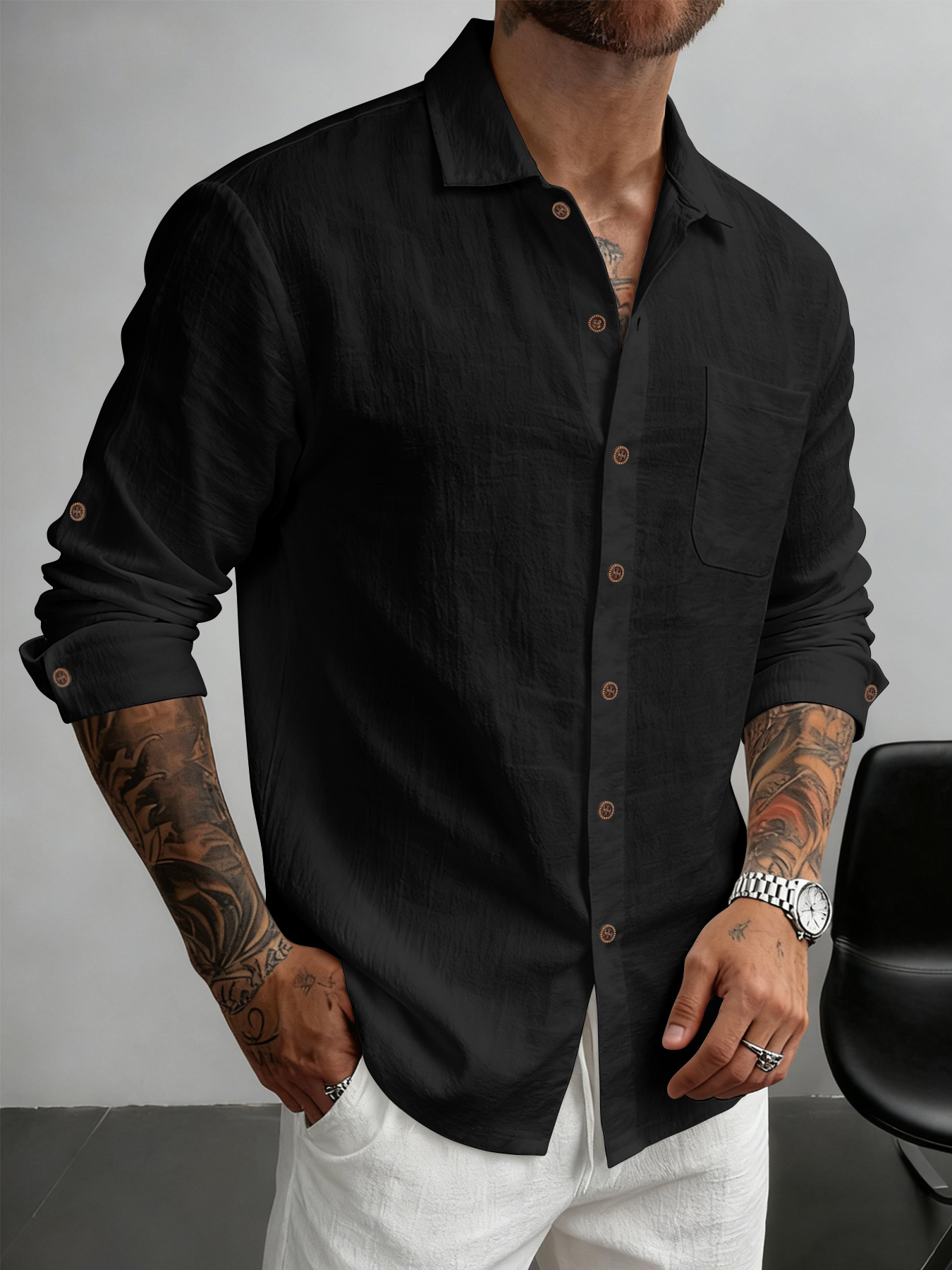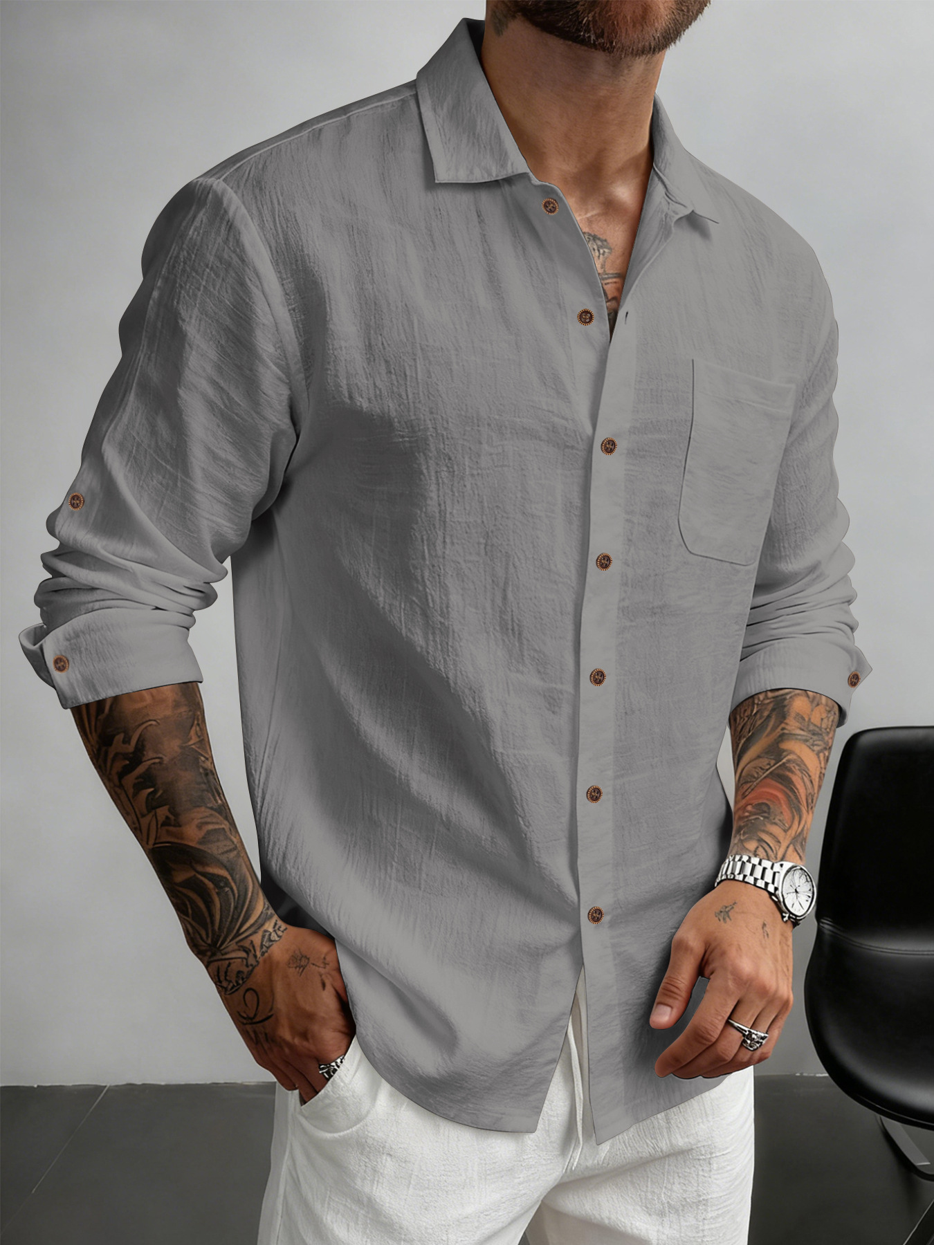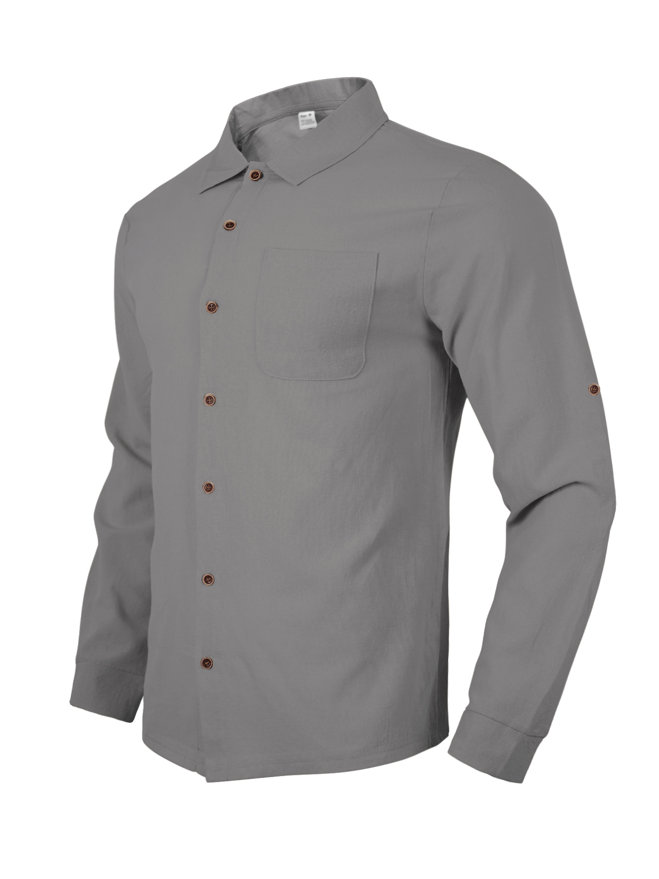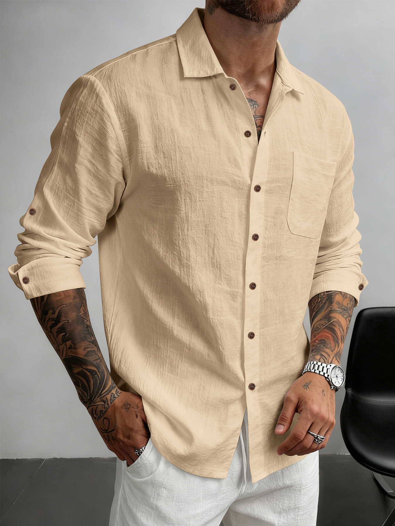 2025 아마존 미국 스타일 크로스보더 트렌디 셔츠 남성 하와이안 스타일 린넨 라펠 통기성 캐주얼 긴팔 셔츠