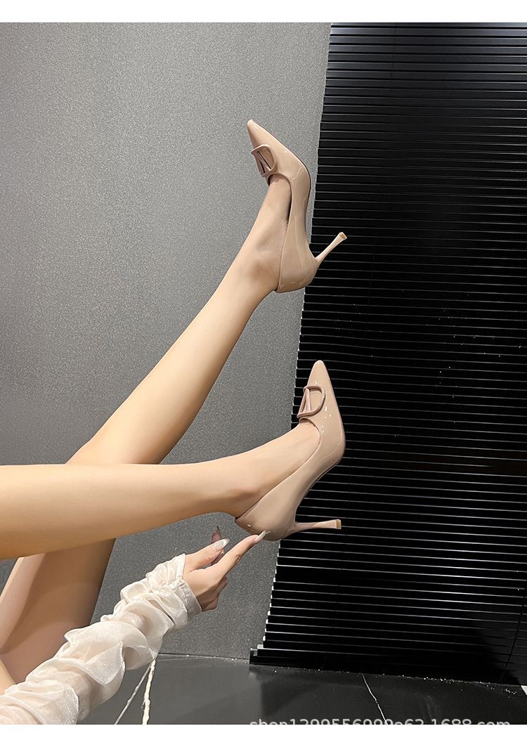누드색 하이힐 2025 신상 인기 V형 뾰족코 얇은 굽 초하이힐 발이 피곤하지 않은 전문직 워킹화 다용도스토어 가기