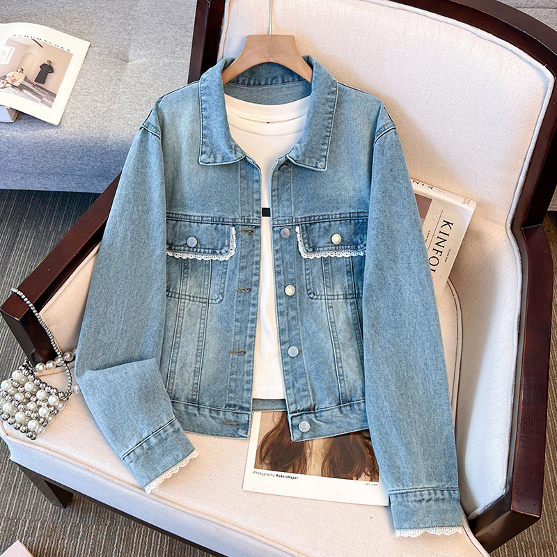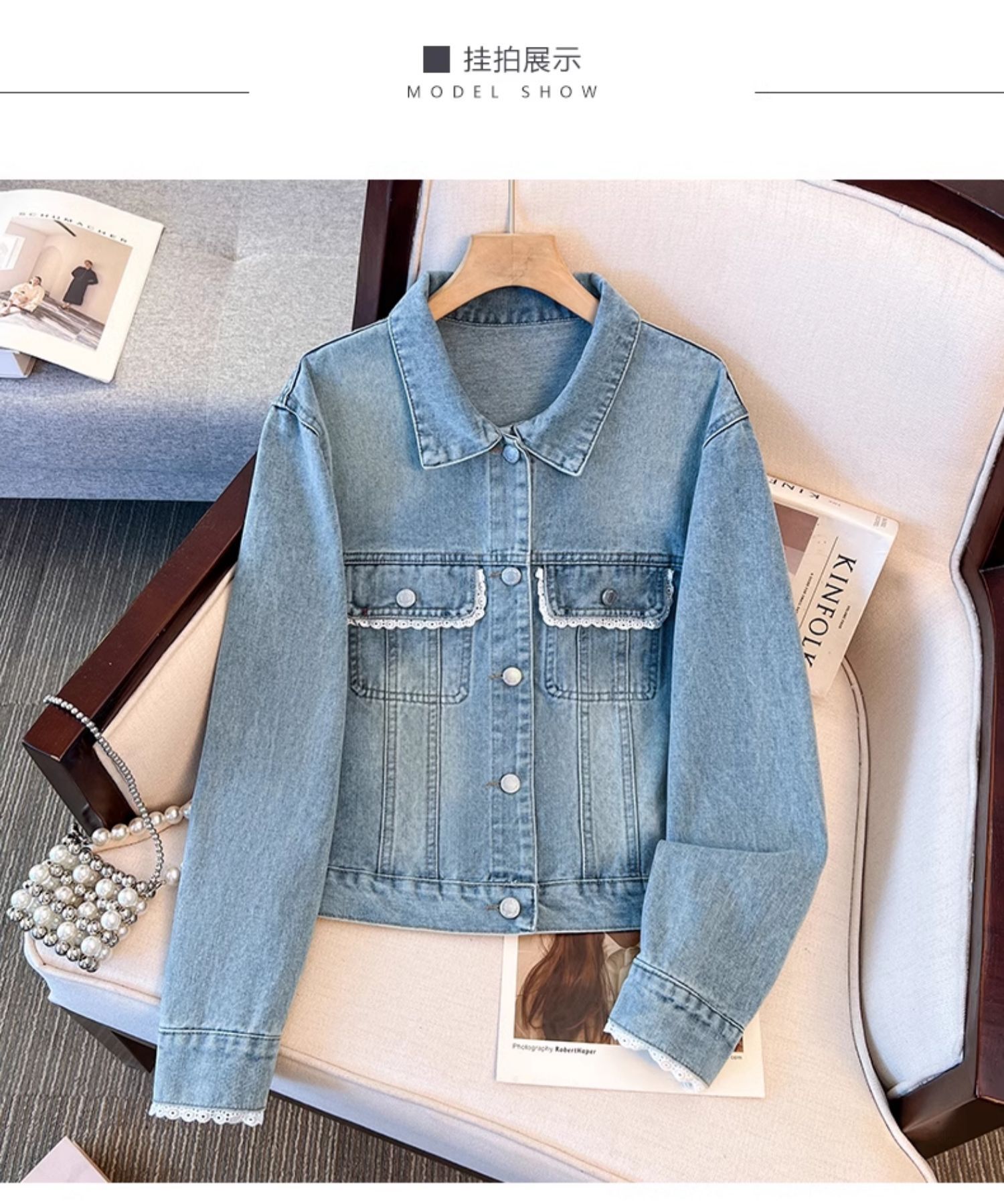 Xiaoxiangfeng 레이스 데님 재킷 여성 짧은 2025 봄과 가을 새로운 얇은 탑 서양식 재킷스토어 가기