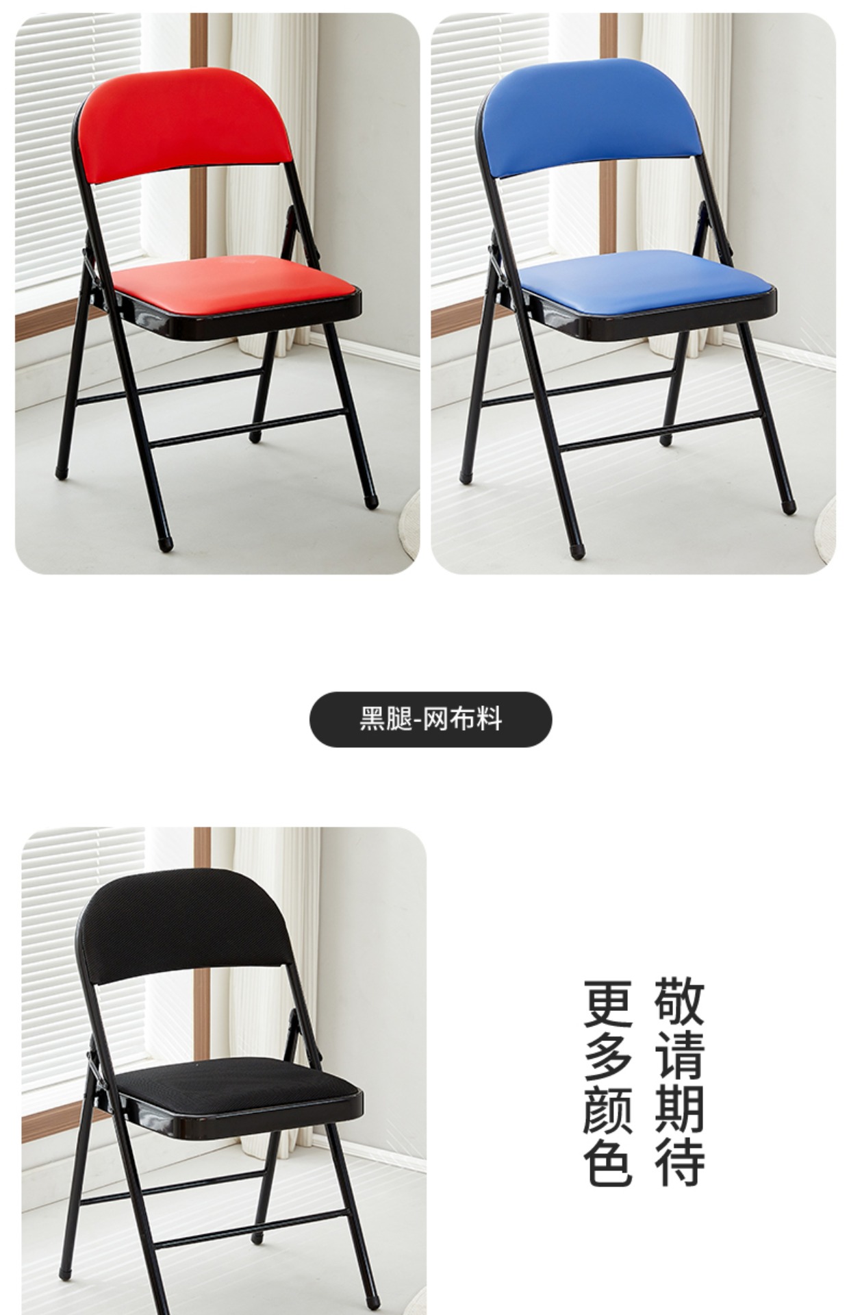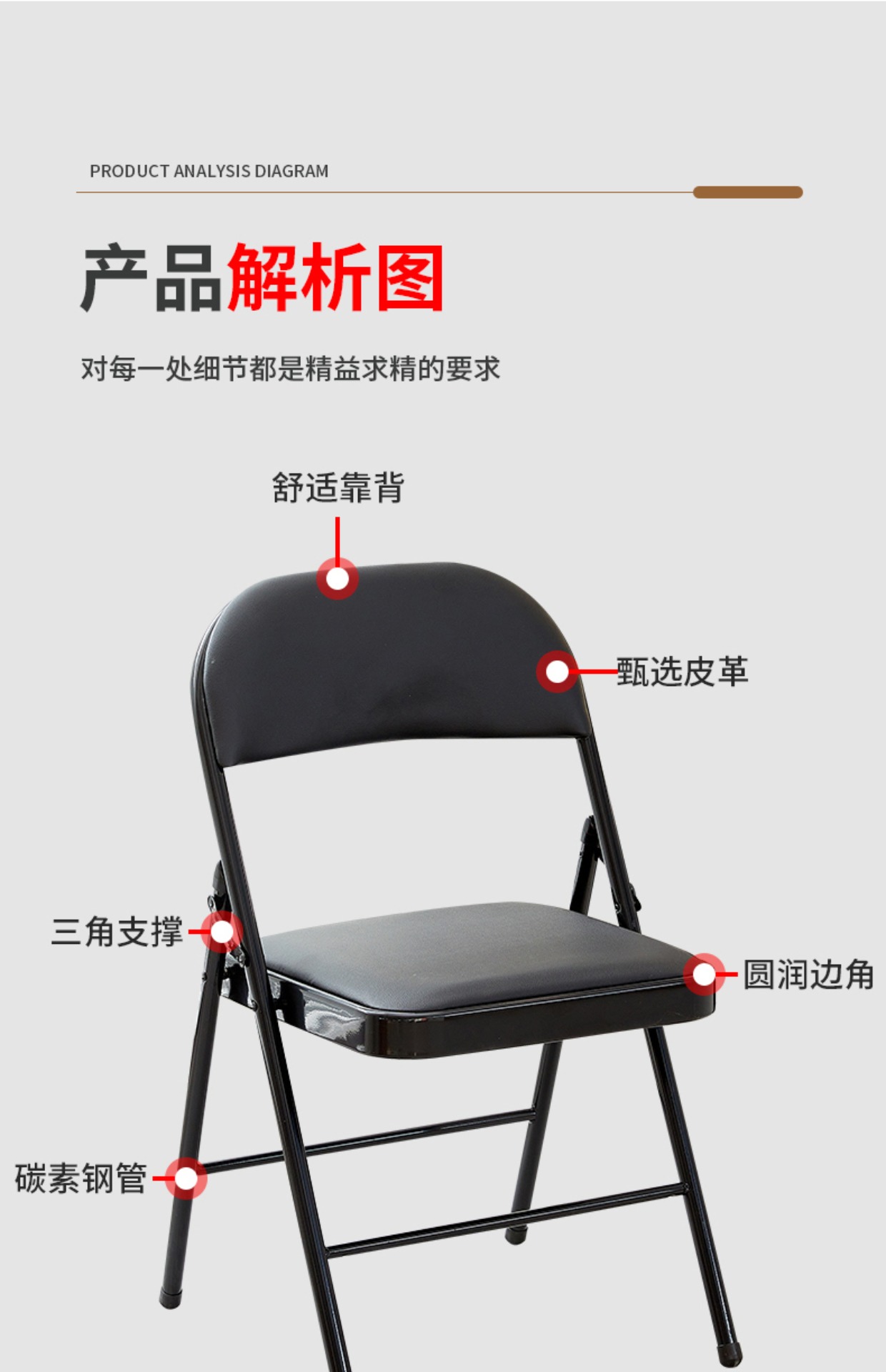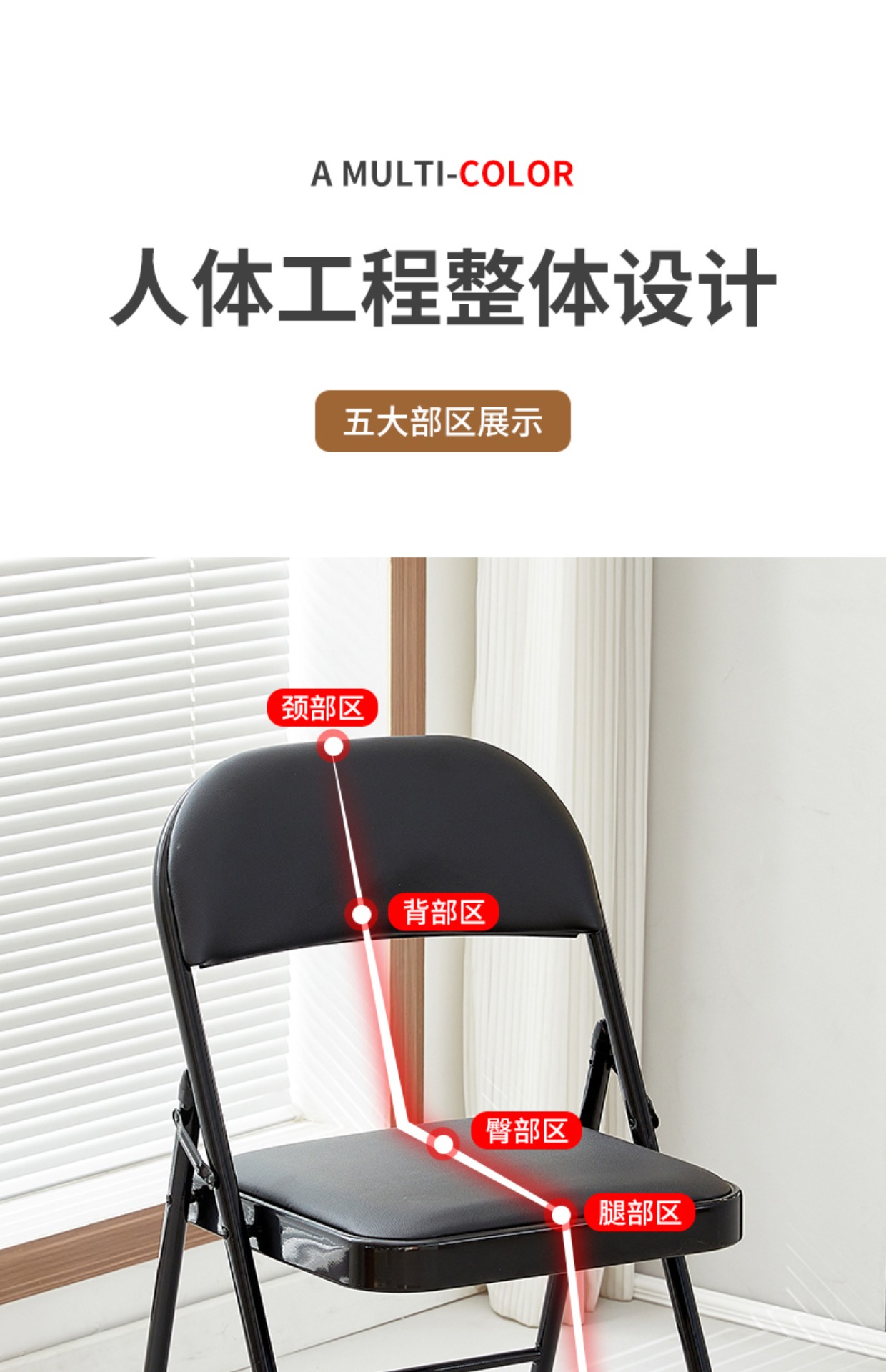 • 검정색 두꺼운 강철판 받침대 이중 스펀지 접이식 의자