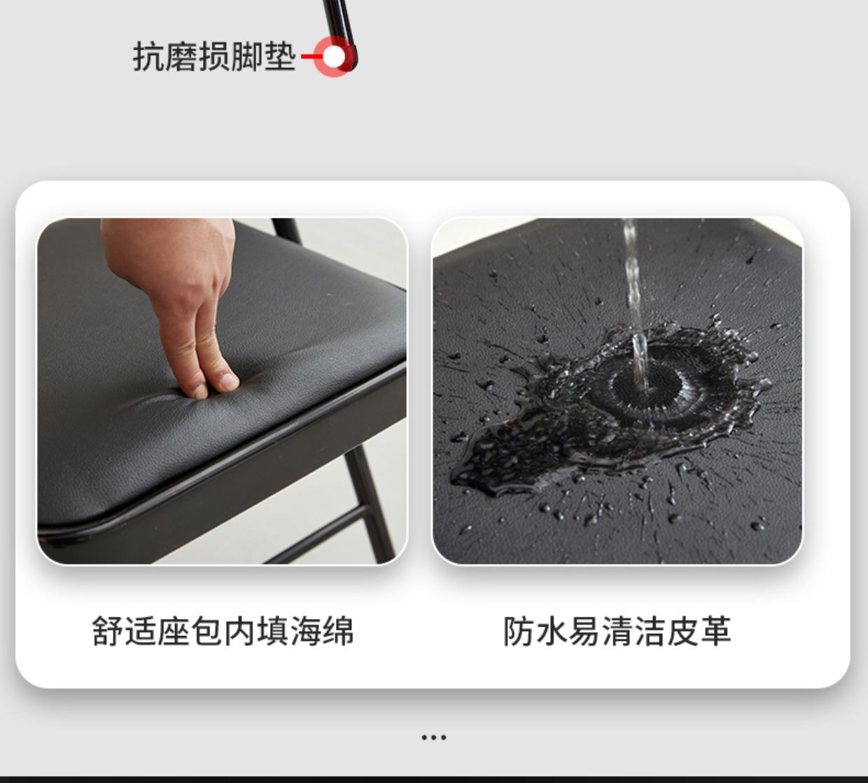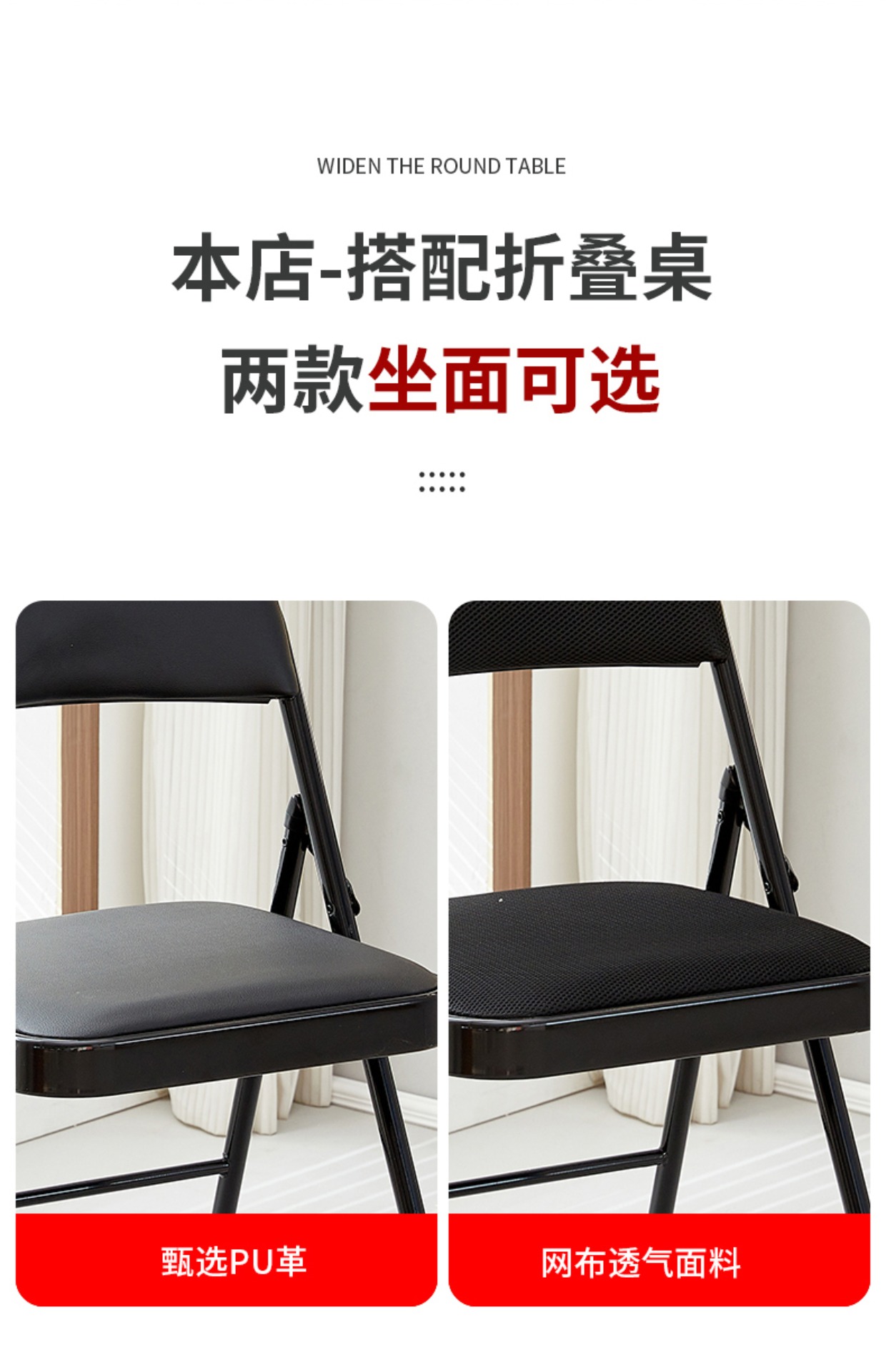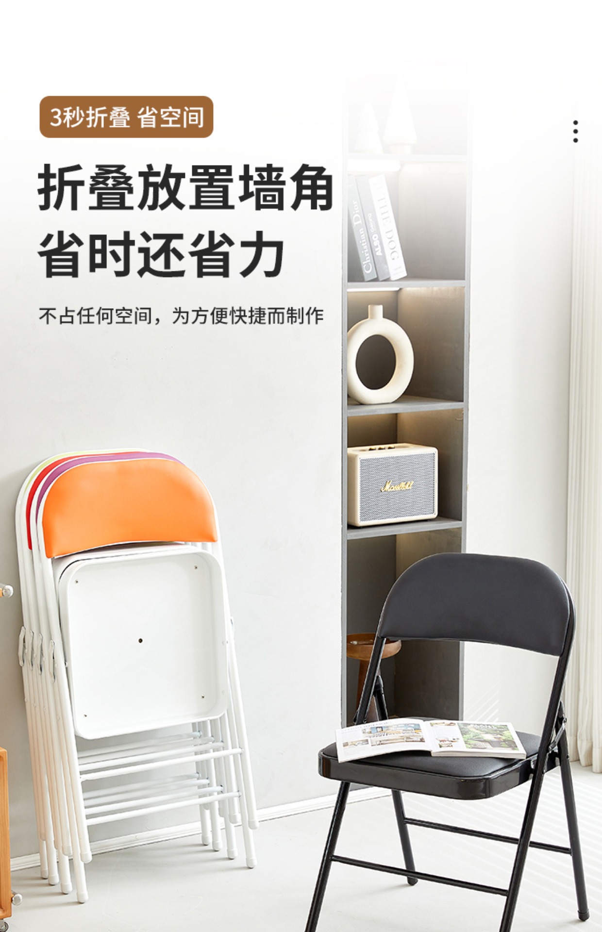 • 검정색 두꺼운 강철판 받침대 이중 스펀지 접이식 의자