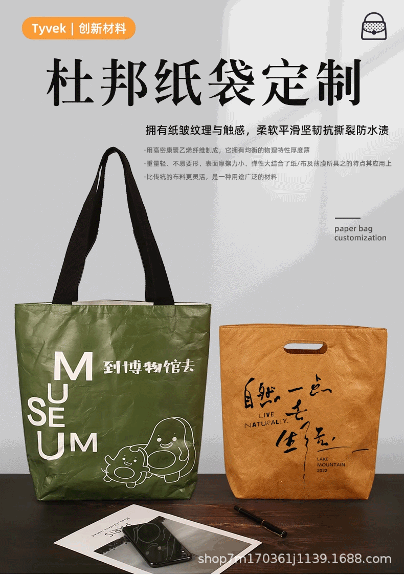 맞춤형 듀폰 가방, 친환경 핸드백, 고급스러운 두꺼운 토트백, 맞춤형 쇼핑백, 기업 홍보용 부직포 핸드백