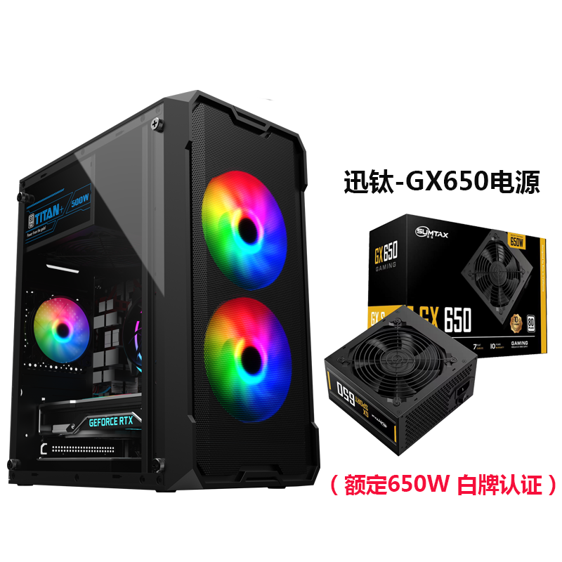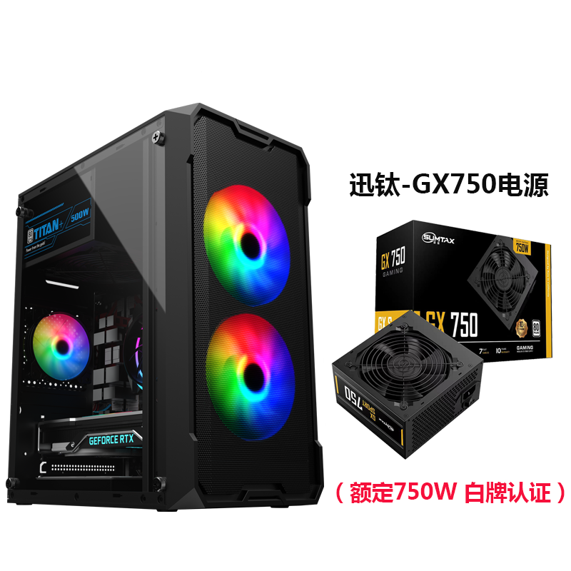 • Wenjie Black - 측면 투명 버전 + Xun Titanium GX750 전원 공급 장치 [정격 750W 화이트 라벨 인증]