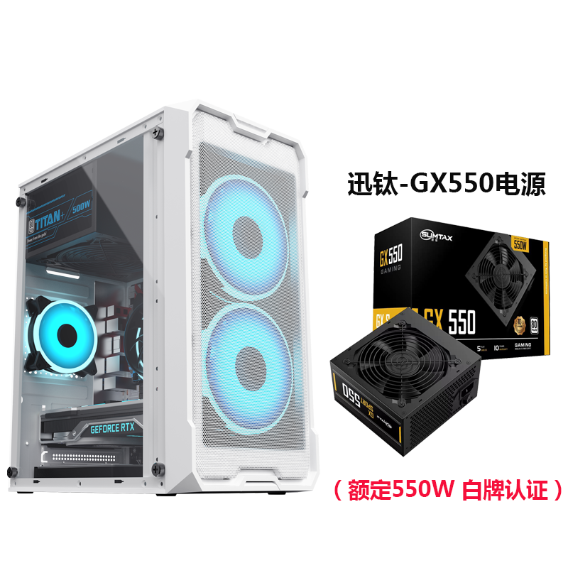 • Wenjie Black - 측면 투명 버전 + Xun Titanium GX550 전원 공급 장치 [정격 550W 화이트 라벨 인증]