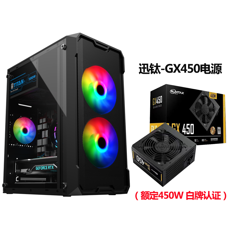 • Wenjie Black - 측면 투명 버전 + Xunti GX450 전원 공급 장치 [정격 450W 화이트 라벨 인증]