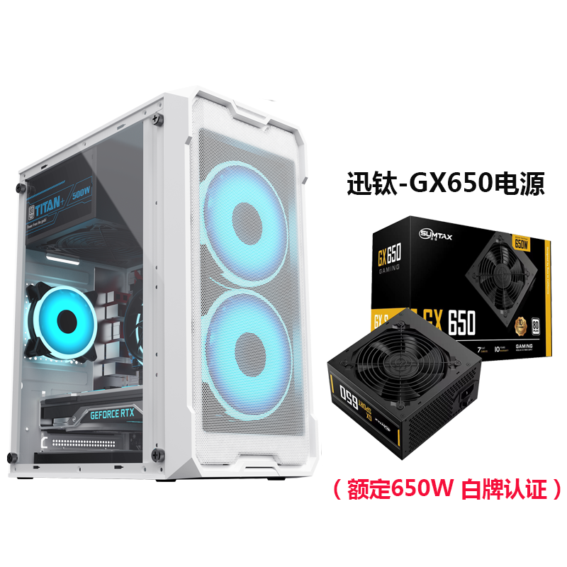 • Wenjie White - 측면 투명 버전 + Xunti GX650 전원 공급 장치 [정격 650W 화이트 라벨 인증]