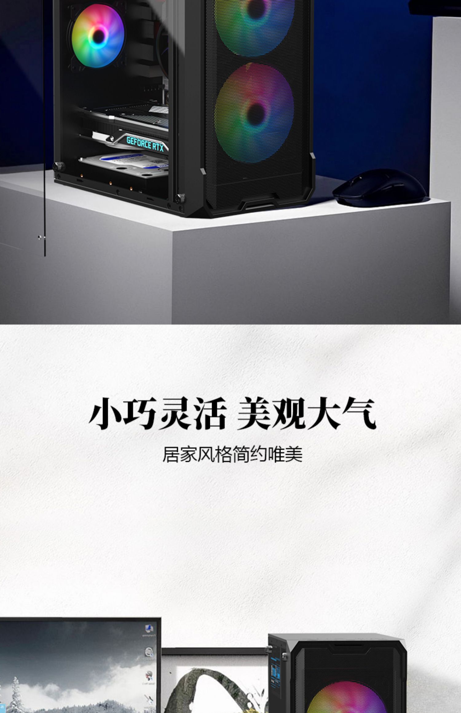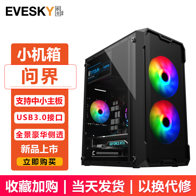 Sumtax/Xuntai Qianjie 컴퓨터 케이스 데스크탑 DIY 전체 측면 투명 방진 수냉식 m-atx 마더보드 소형 케이스스토어 가기