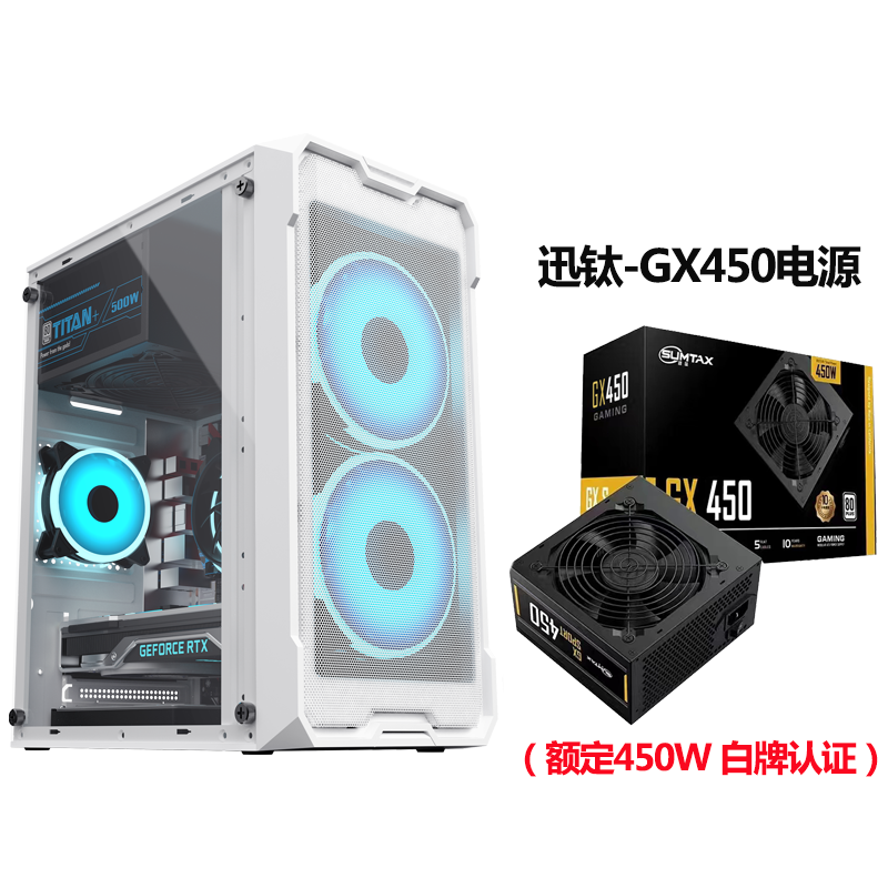 • Wenjie White - 측면 투명 버전 + Xunti GX450 전원 공급 장치 [정격 450W 화이트 라벨 인증]