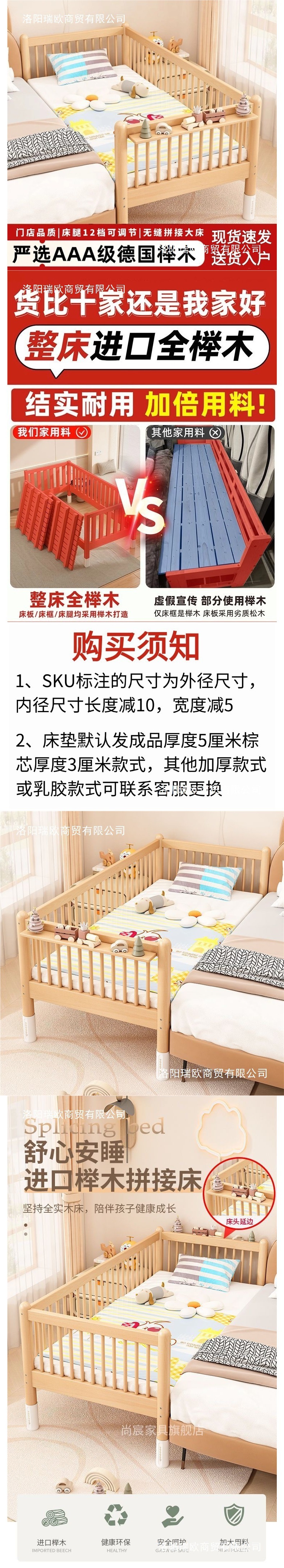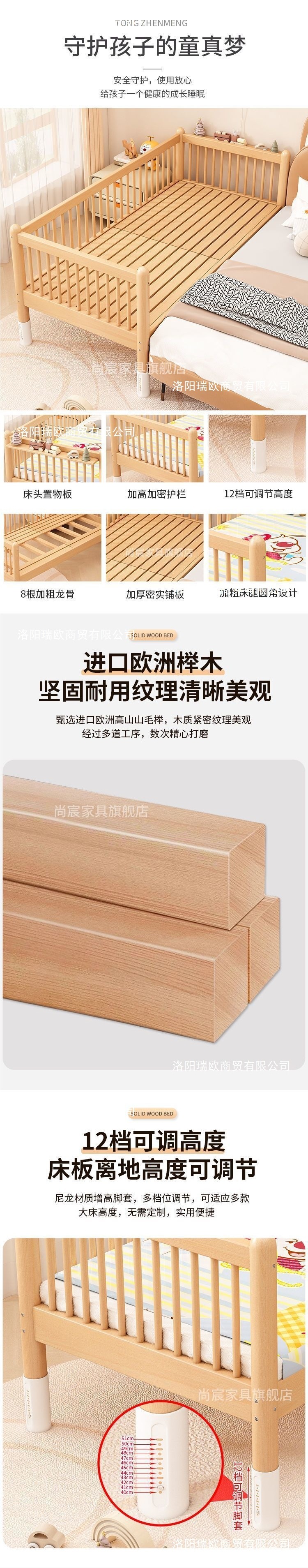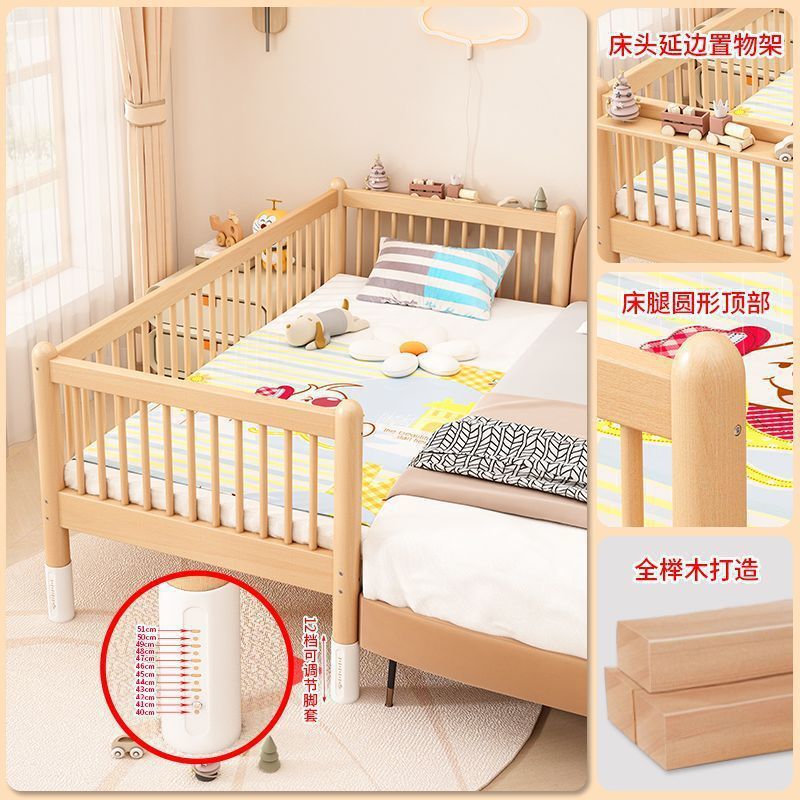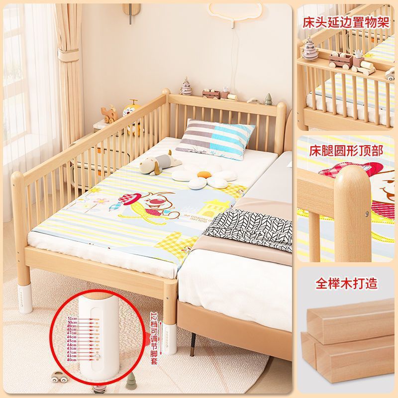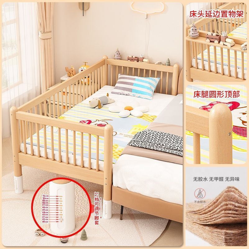 아기 접합 침대 단단한 나무 신생아 대형 침대 조절 가능한 접합 침대 사이드 침대 가드 레일 두꺼운 너도밤 나무 유아용 침대