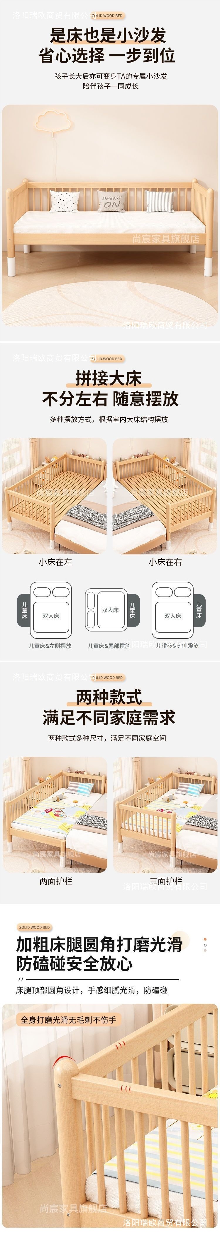 아기 접합 침대 단단한 나무 신생아 대형 침대 조절 가능한 접합 침대 사이드 침대 가드 레일 두꺼운 너도밤 나무 유아용 침대스토어 가기