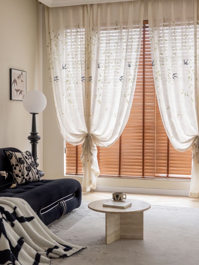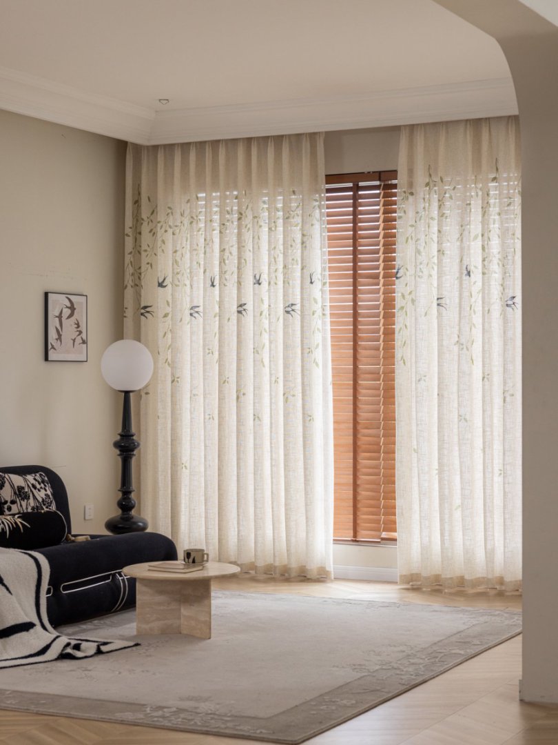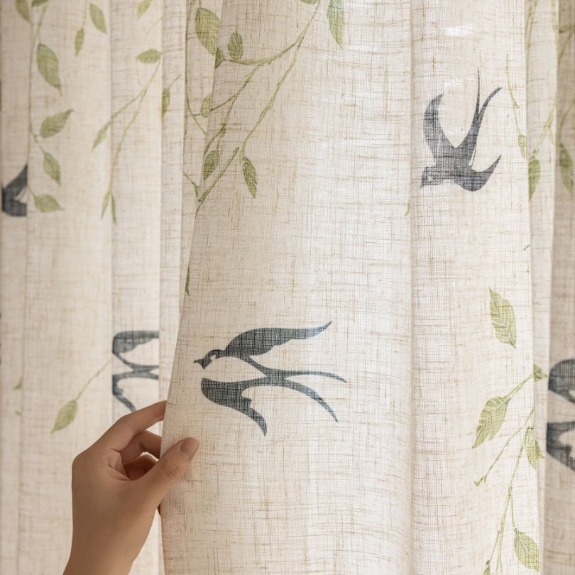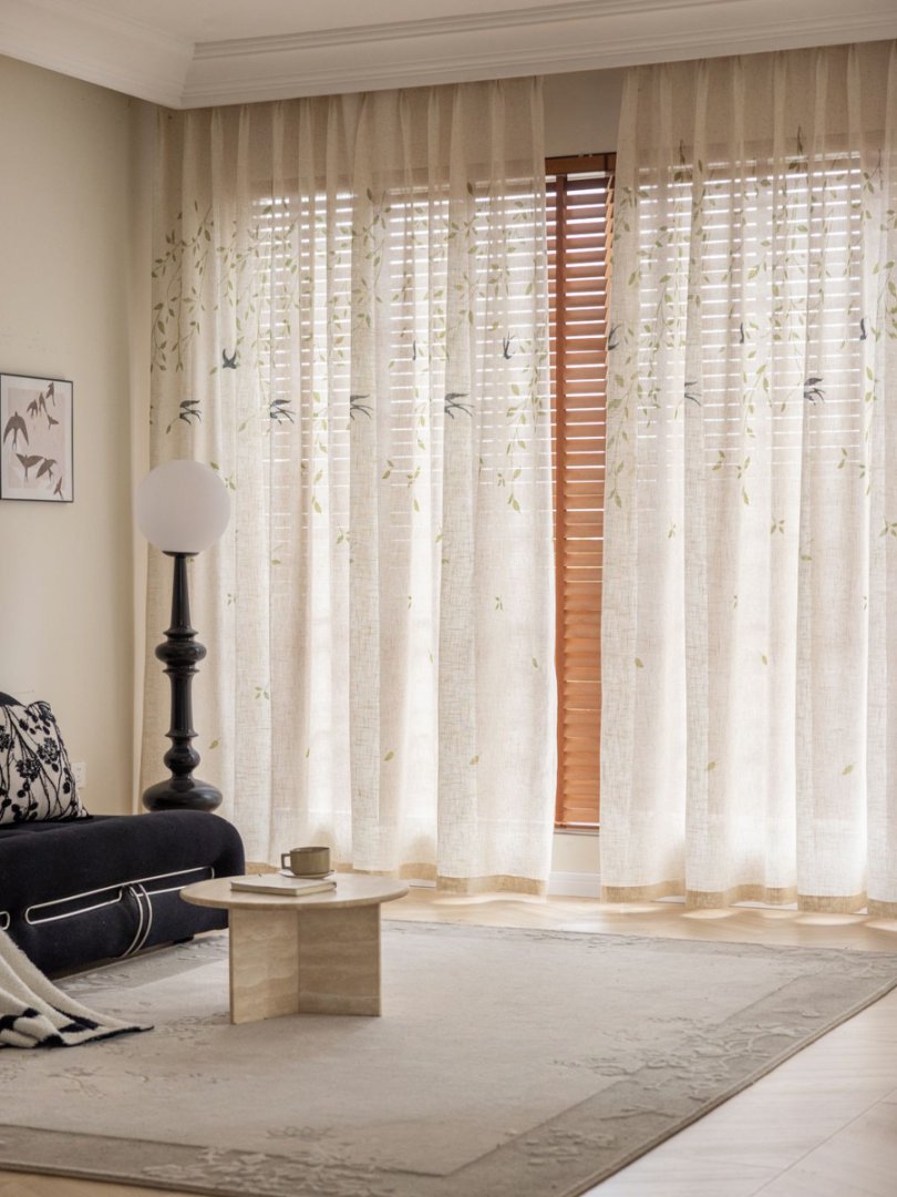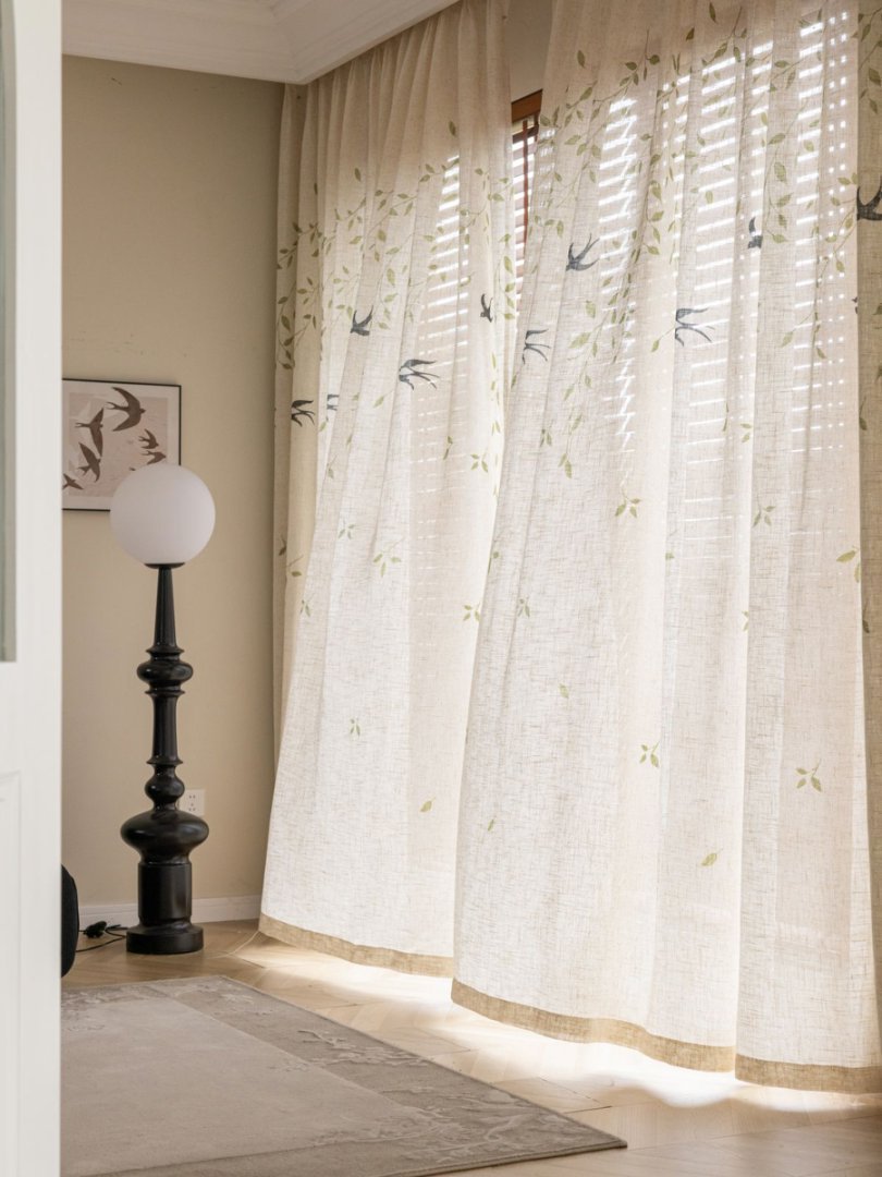 미드 센츄리 스타일 린넨 플로팅 커튼, 차광 크림색, 반투명, 거실 발코니 옷장 방진 일본식 거즈 커튼