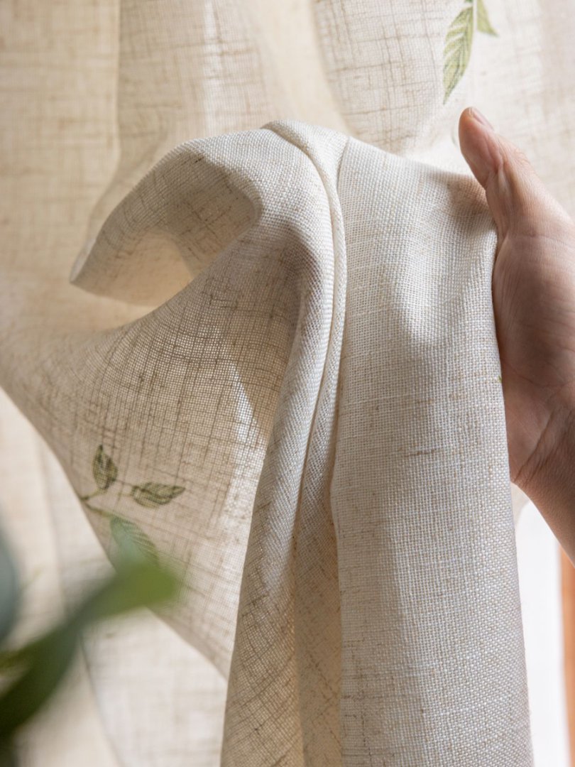 미드 센츄리 스타일 린넨 플로팅 커튼, 차광 크림색, 반투명, 거실 발코니 옷장 방진 일본식 거즈 커튼스토어 가기