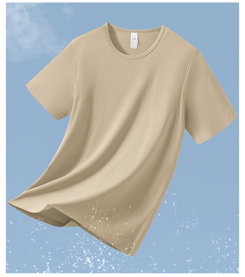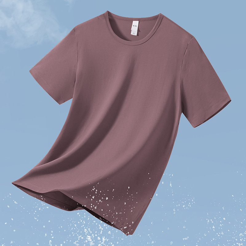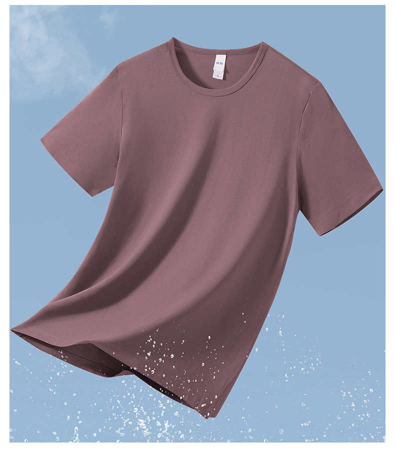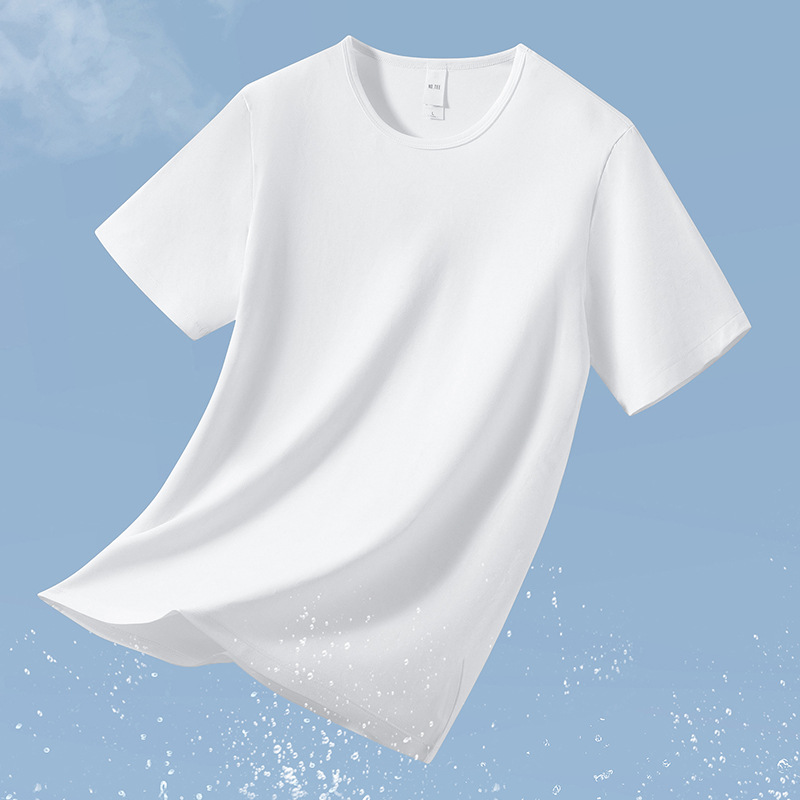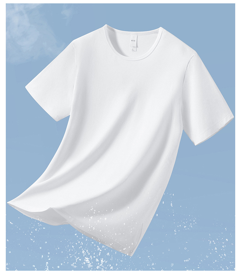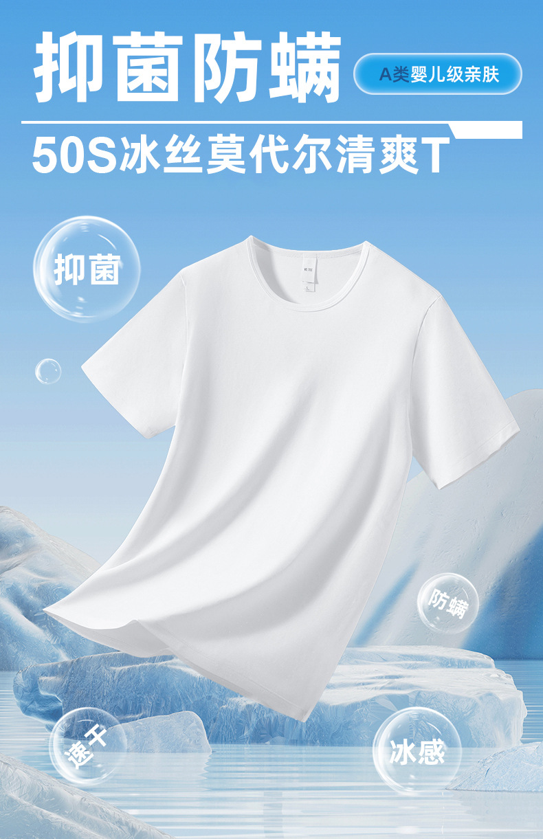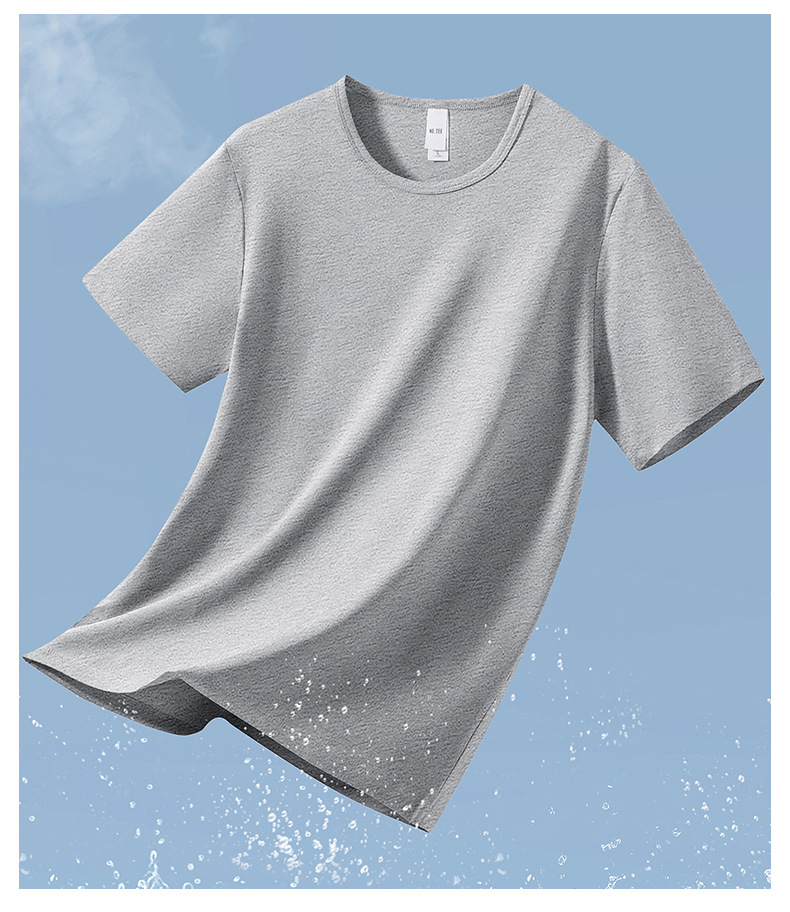 모달 라운드 넥 반팔 티셔츠 남성용 항균 및 진드기 방지 솔리드 컬러 탑 아이스 실크 시원한 느낌 속건성 반팔 바닥 셔츠
