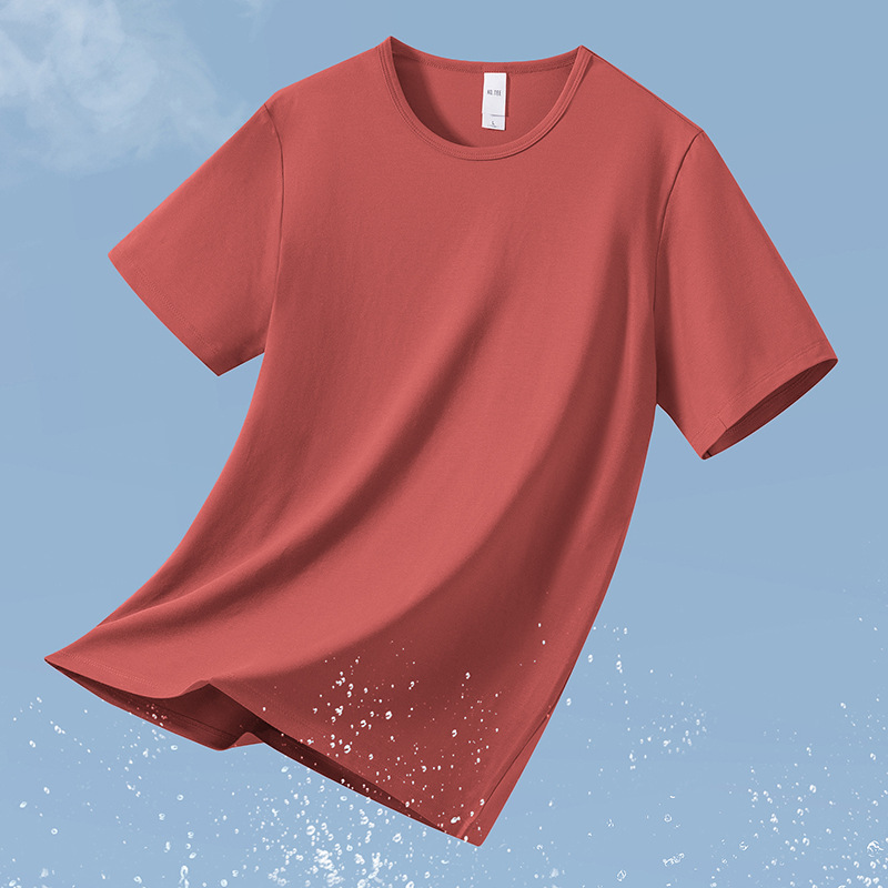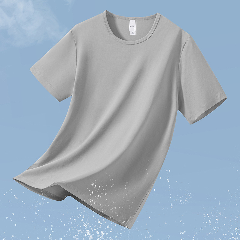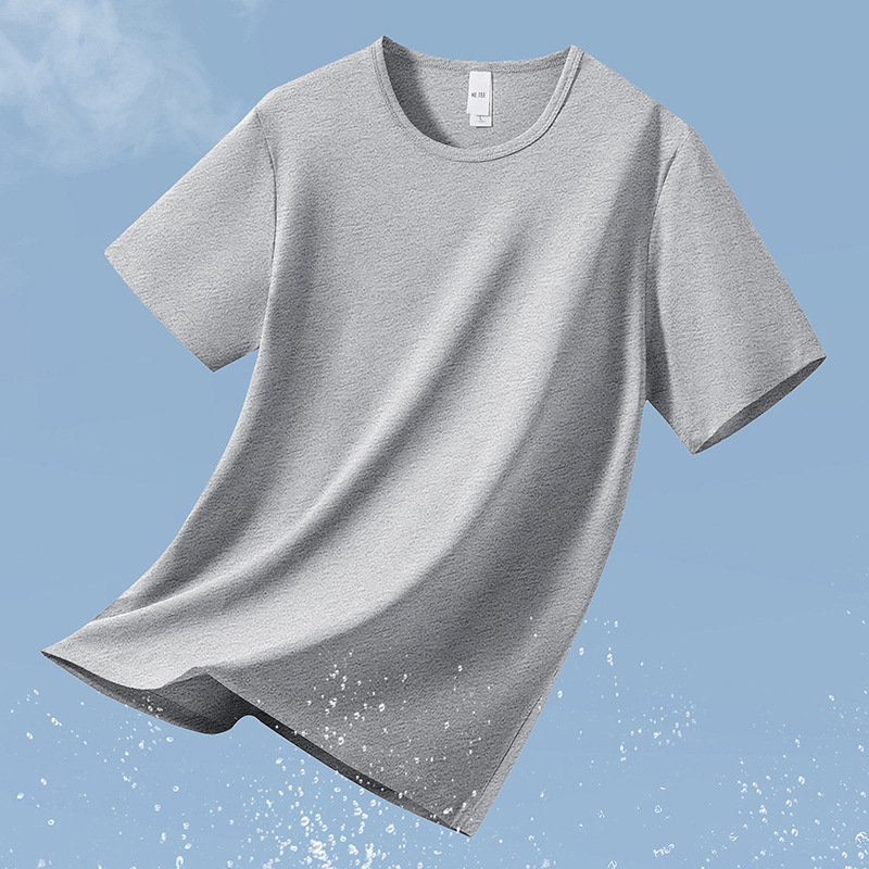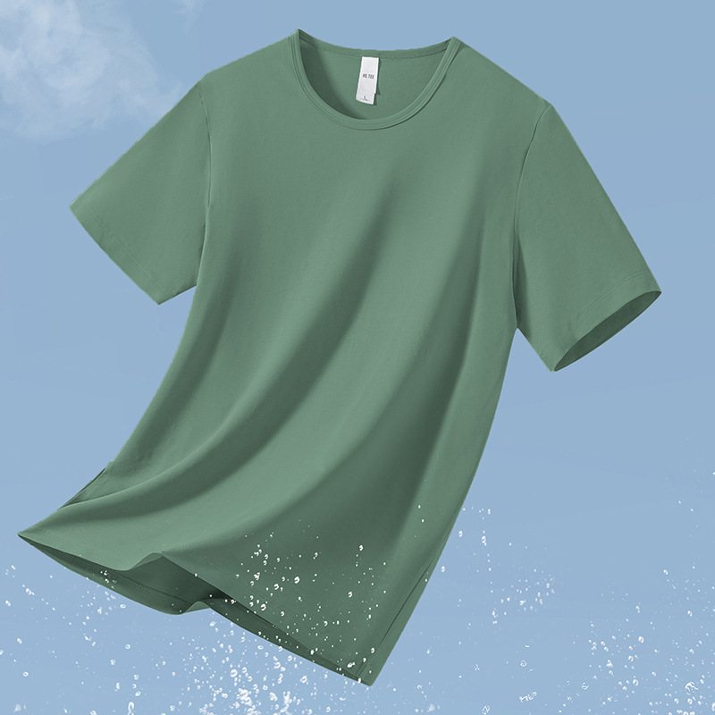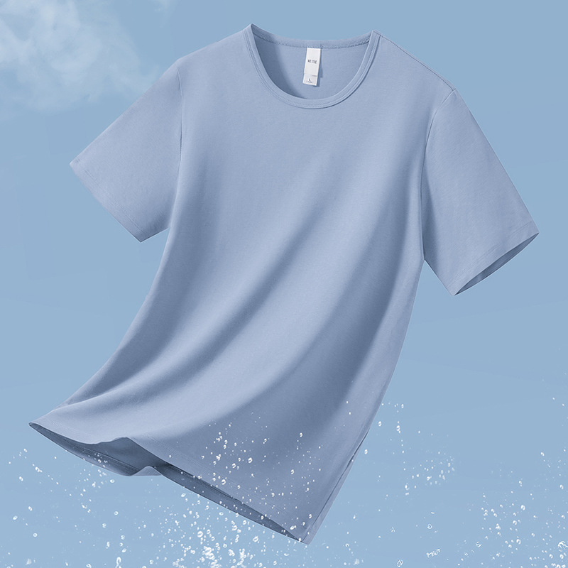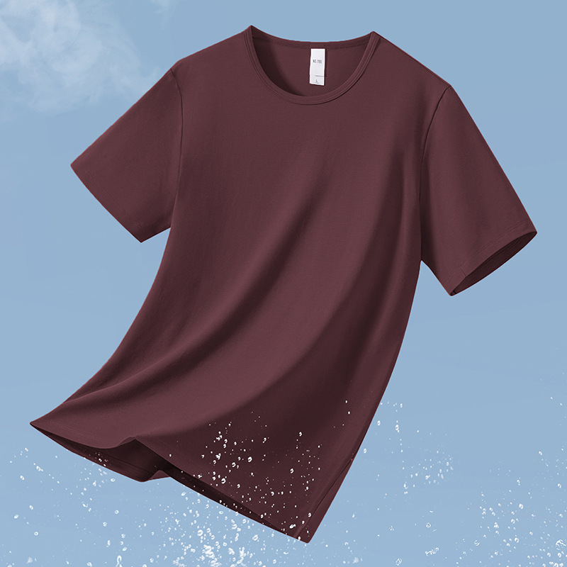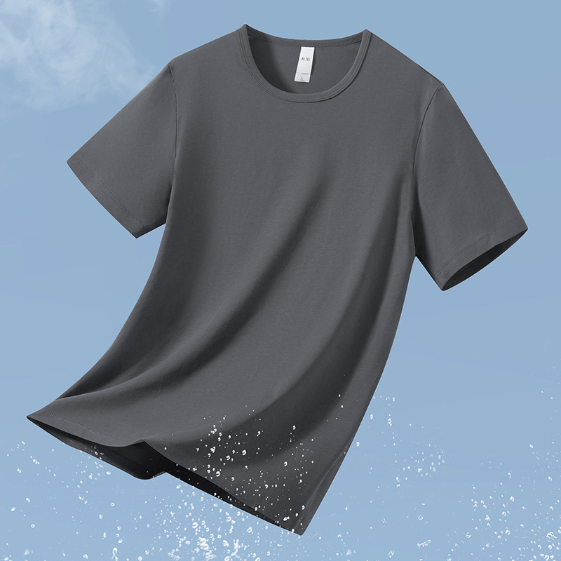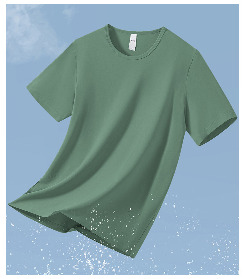 모달 라운드 넥 반팔 티셔츠 남성용 항균 및 진드기 방지 솔리드 컬러 탑 아이스 실크 시원한 느낌 속건성 반팔 바닥 셔츠