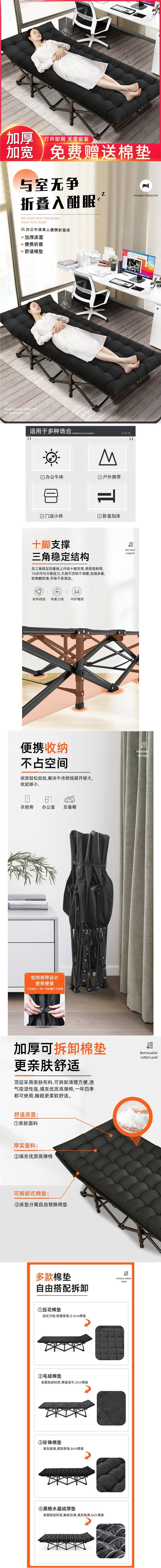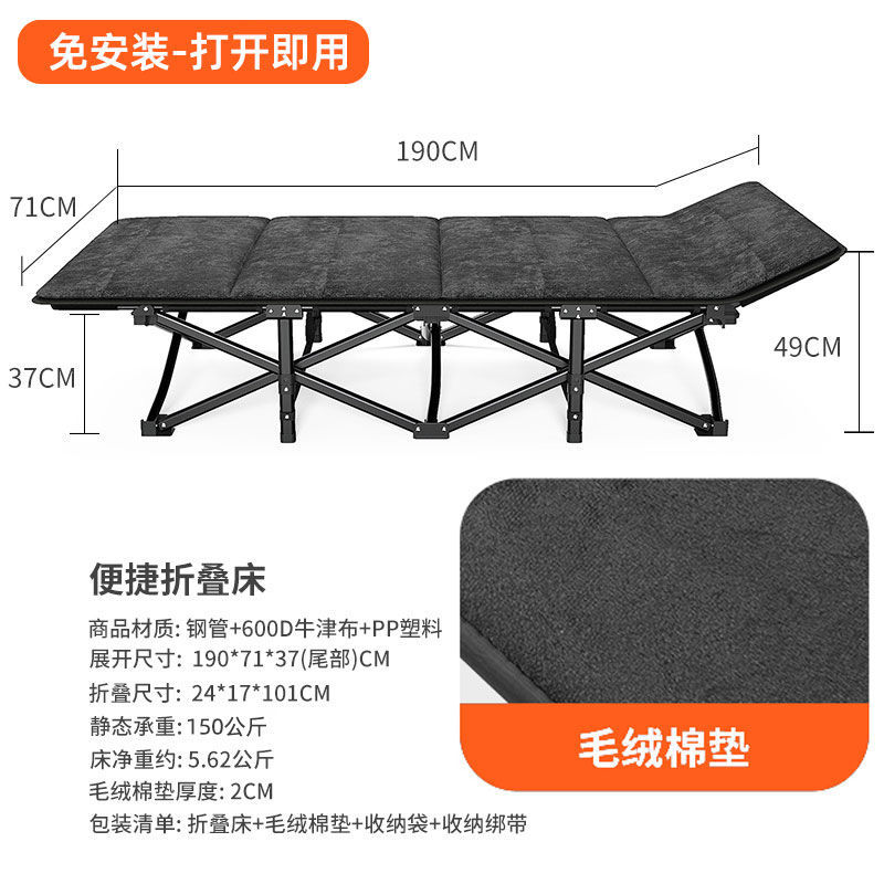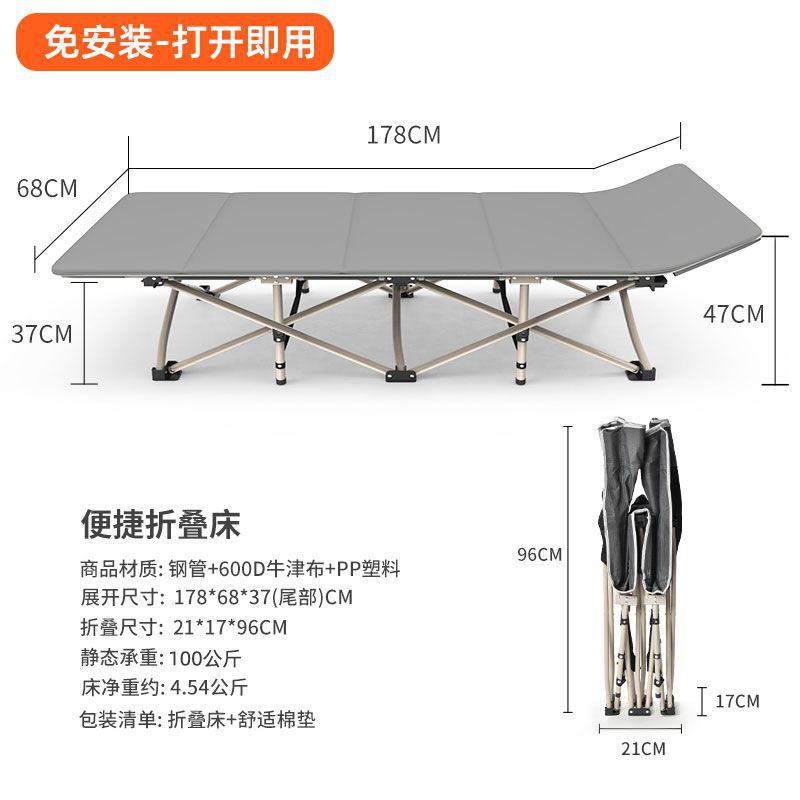 사무실 점심 시간 접이식 침대 낮잠 싱글 침대 간단한 휴대용 캠프 침대 야외 수면 휴대용 안락 의자스토어 가기