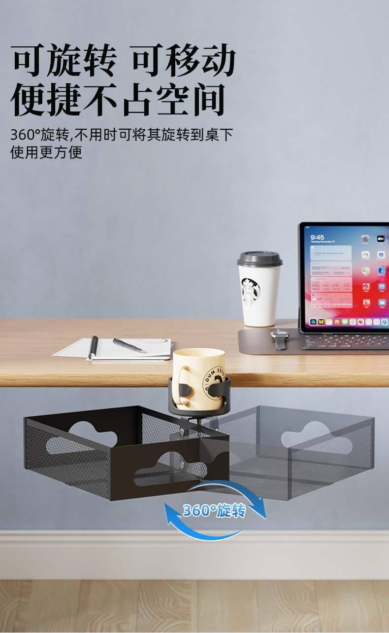 테이블 아래 펀치 없는 케이블 정리함, 강력한 내하중 라우터 케이블 정리함, 컵홀더 수납선반