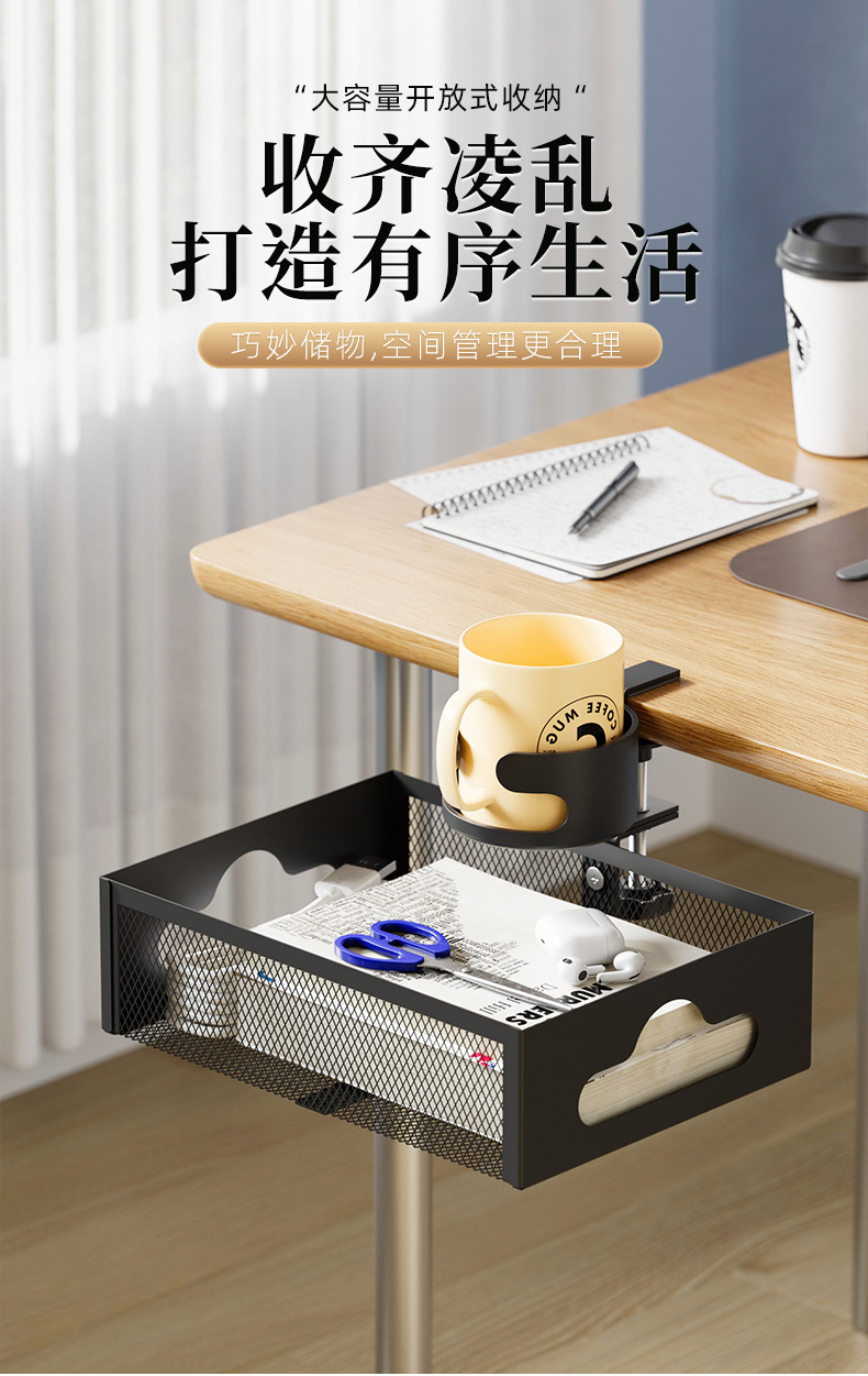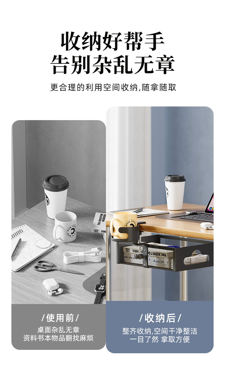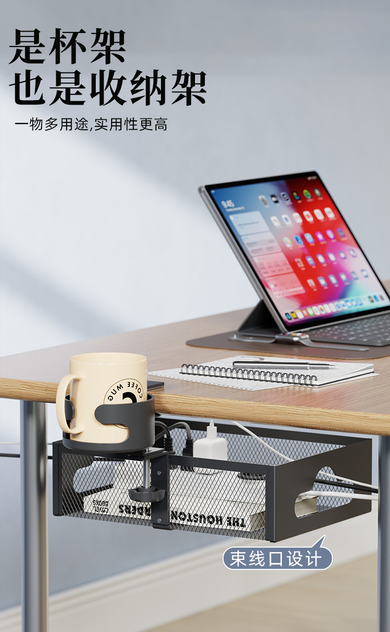 • 데스크탑 컵홀더 수납선반 케이블 정리함 [클래식 블랙]