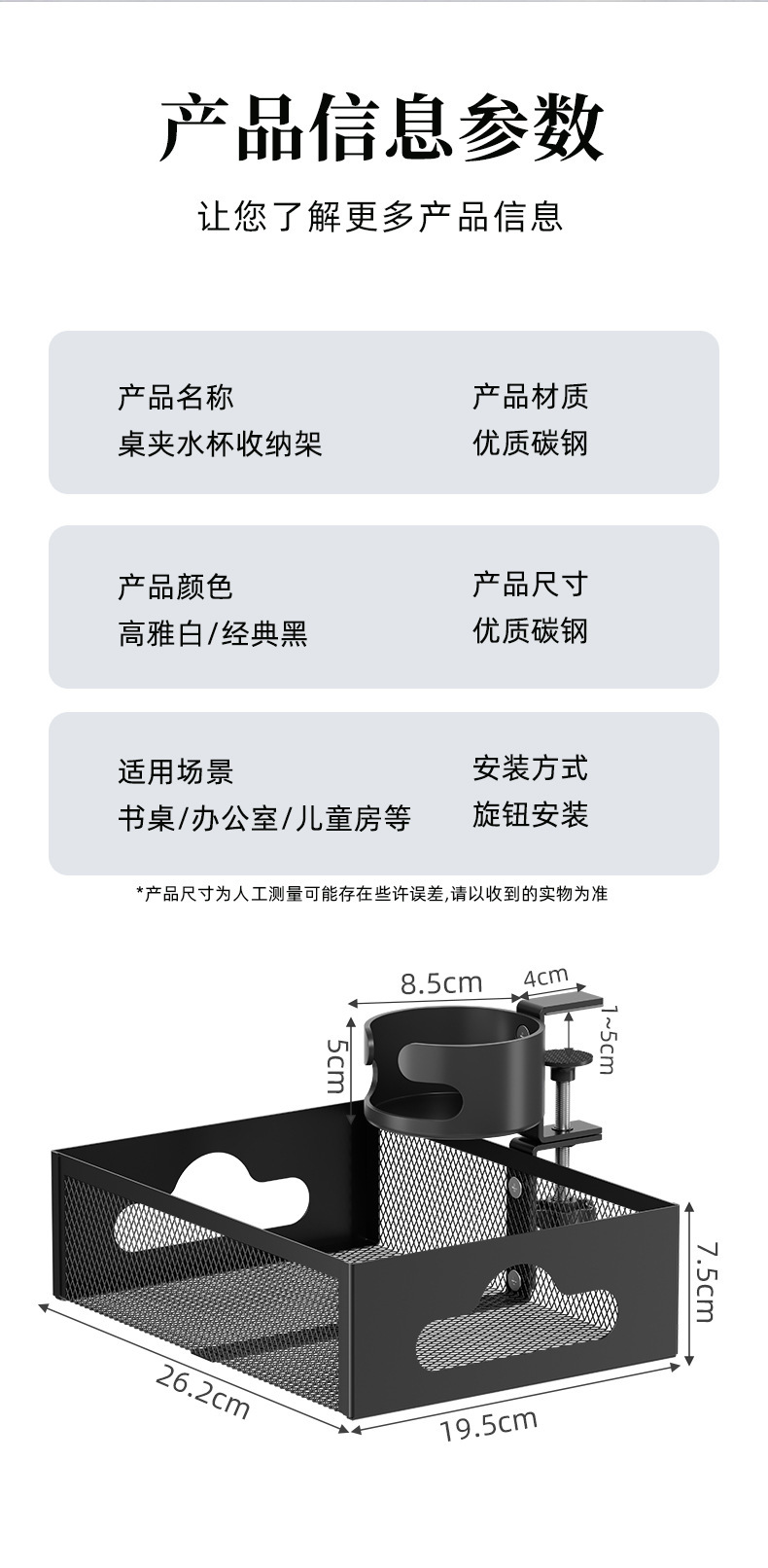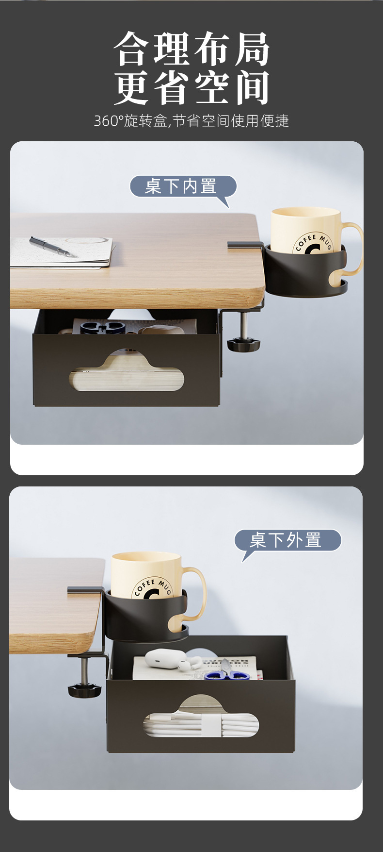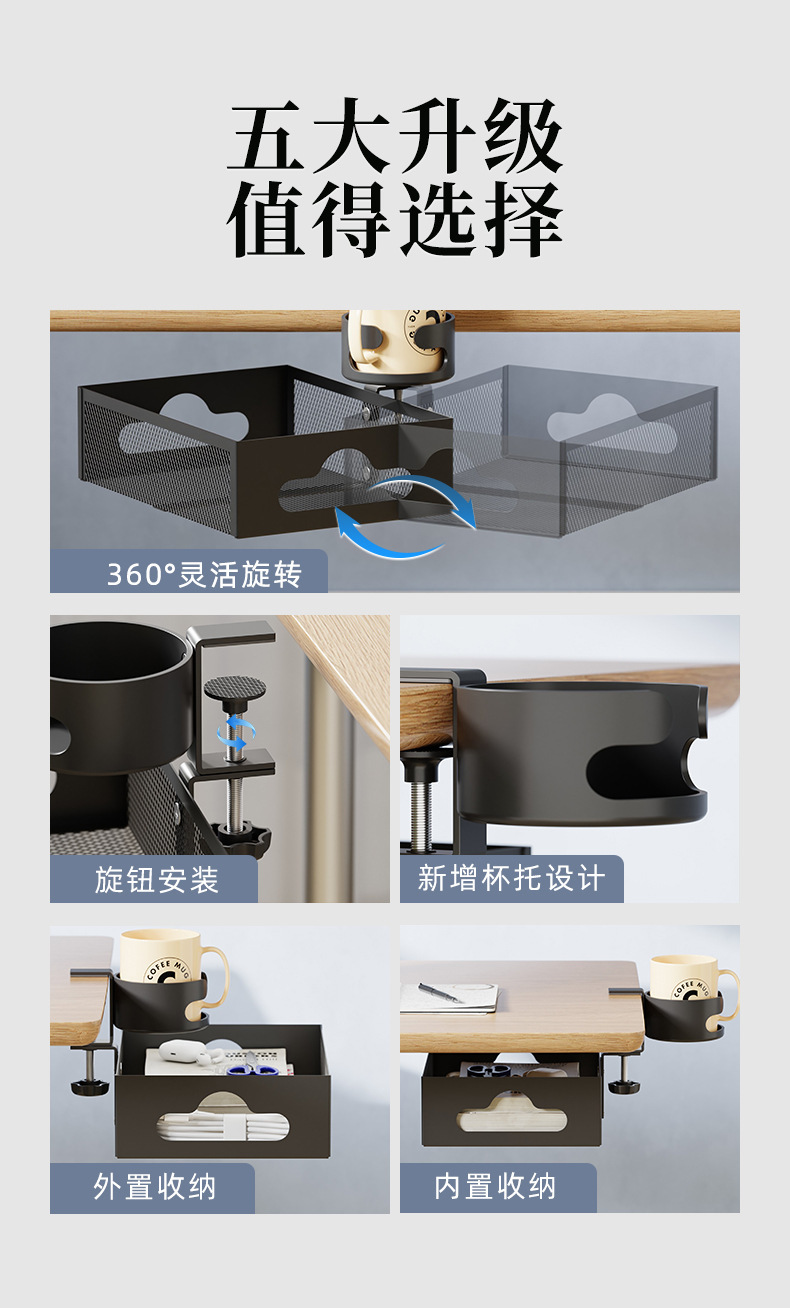 • 데스크탑 컵홀더 수납선반 케이블 정리함 [클래식 블랙]