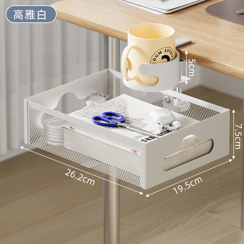 • 데스크탑 컵홀더 수납선반 케이블 정리함 [우아한 화이트]