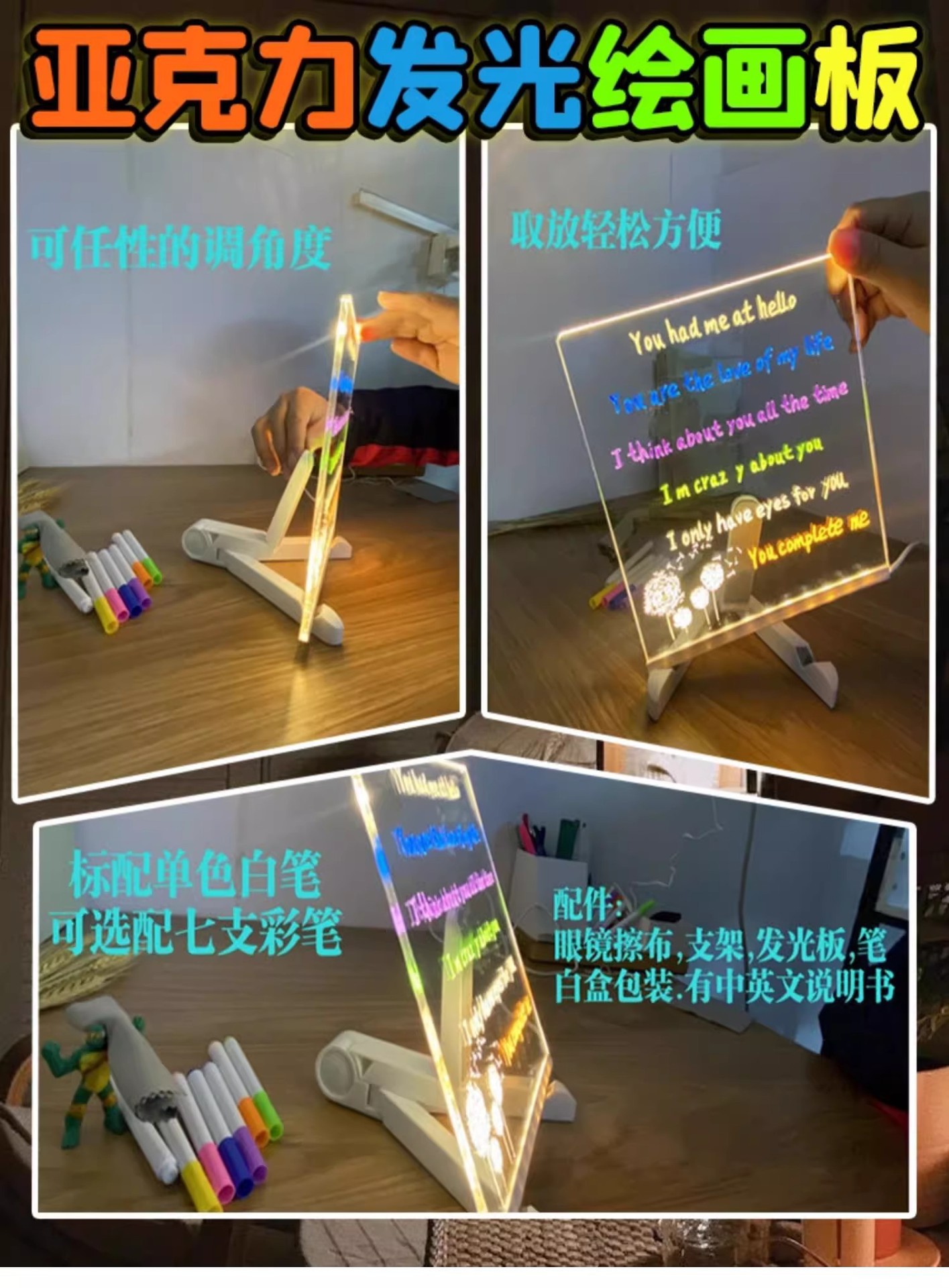 크리 에이 티브 빛나는 장난감 빛나는 드로잉 보드 어린이 수제 diy 아크릴 드로잉 보드 지울 수있는 diy 장난감스토어 가기