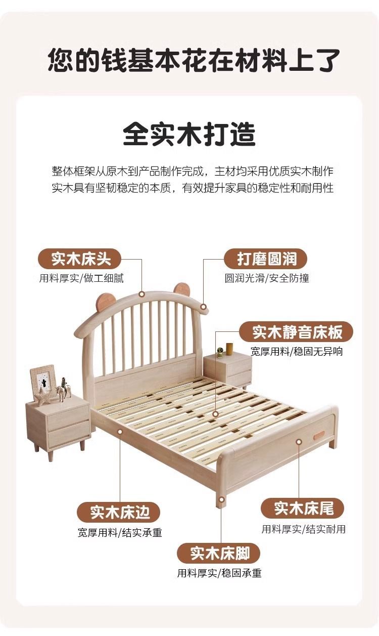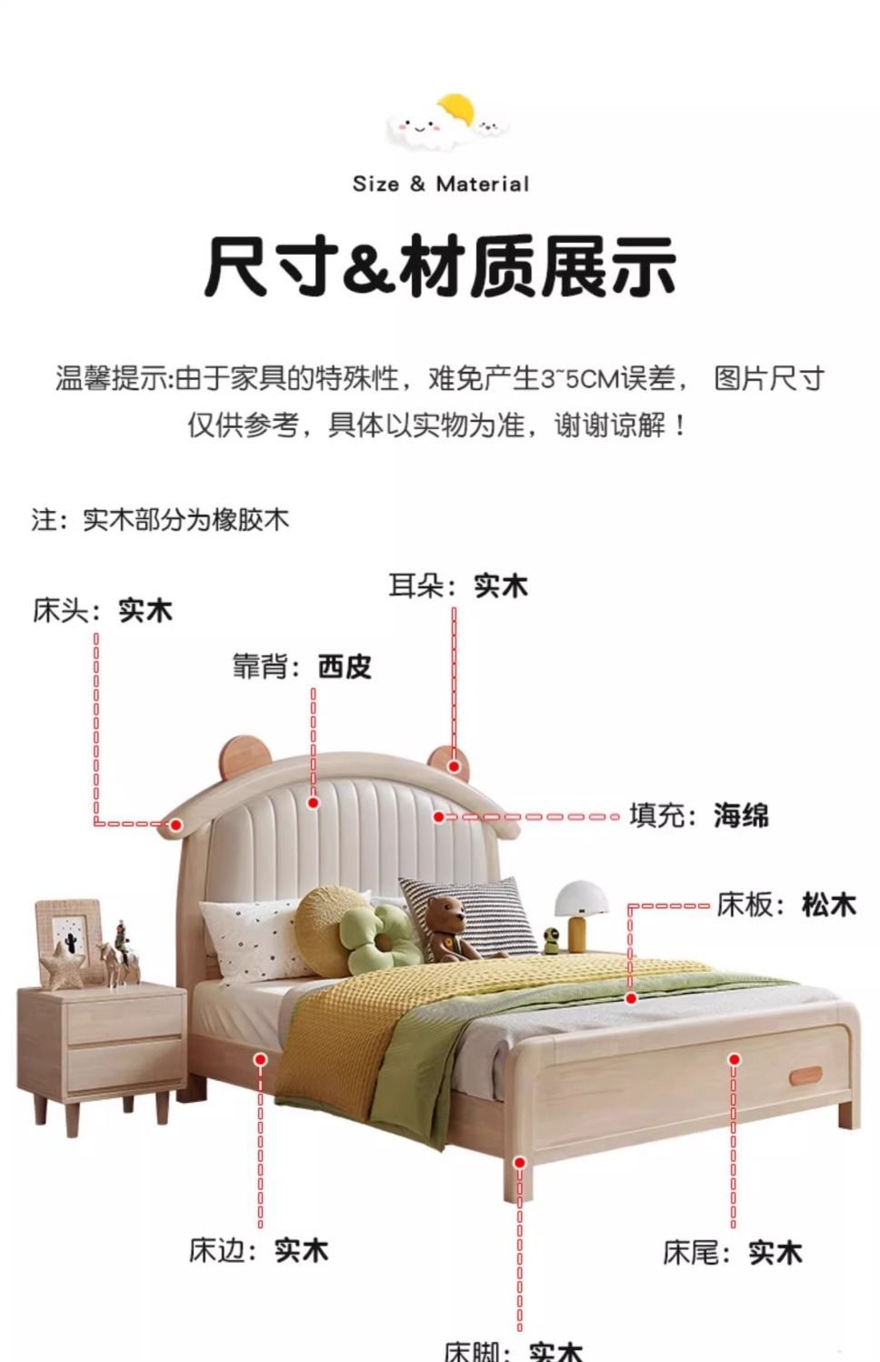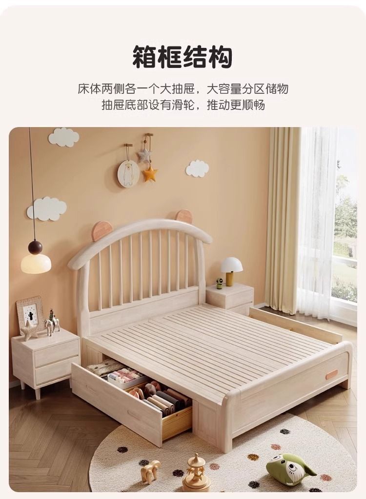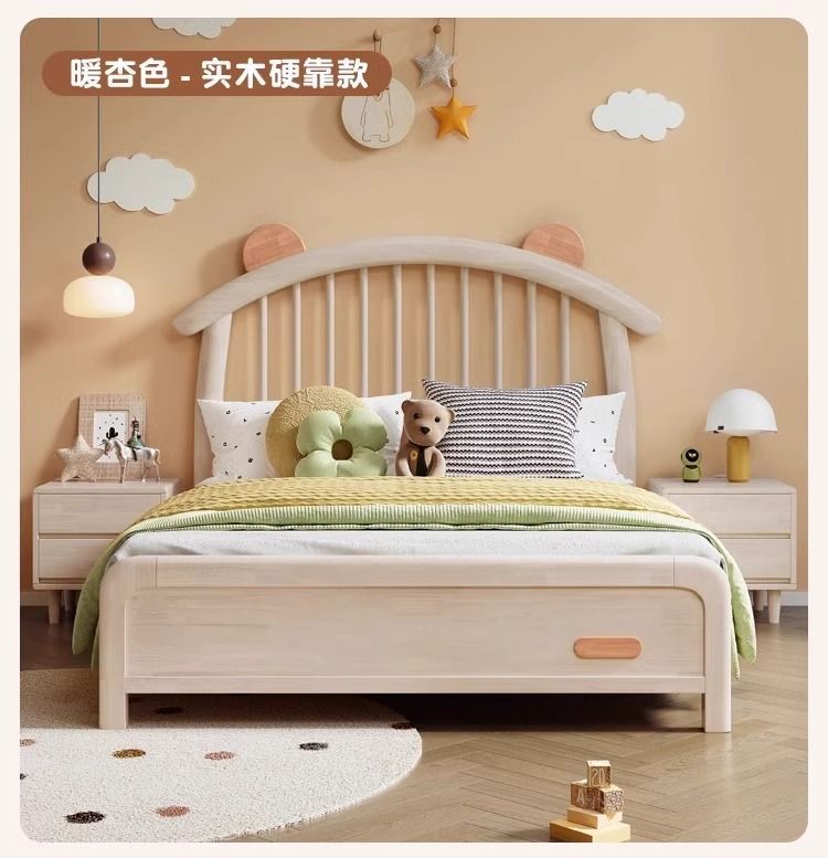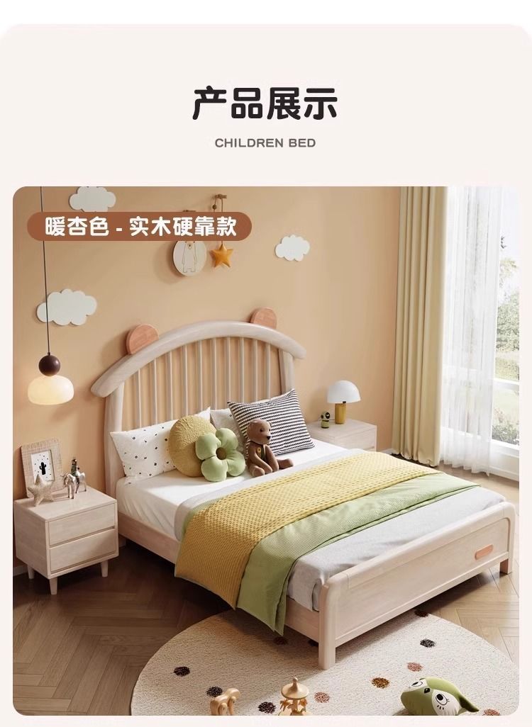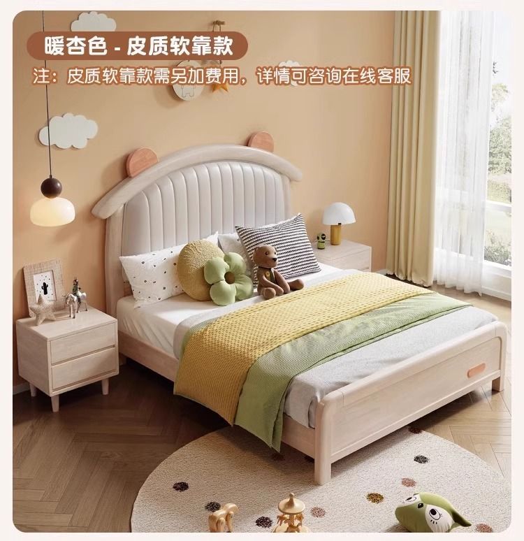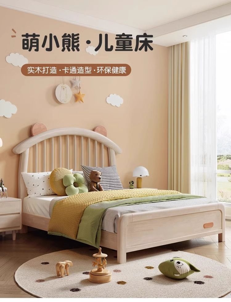 크림 스타일 단단한 나무 어린이 침대 현대 간단한 싱글 침대 1.2m 소년 소녀 만화 어린이 1.5 소년 침대스토어 가기