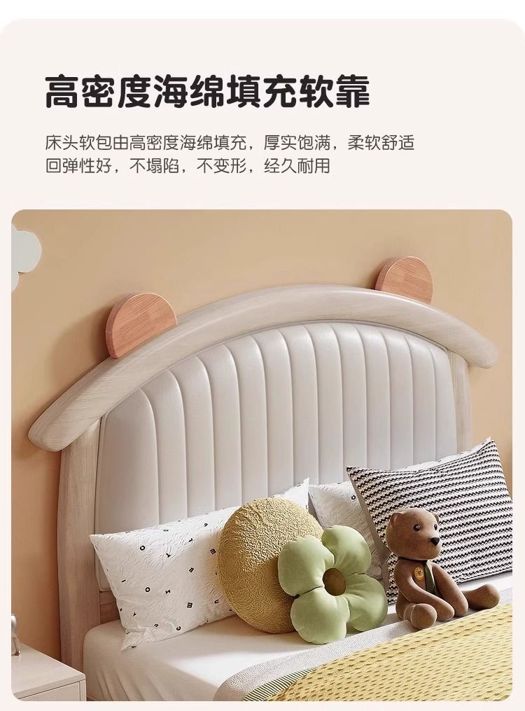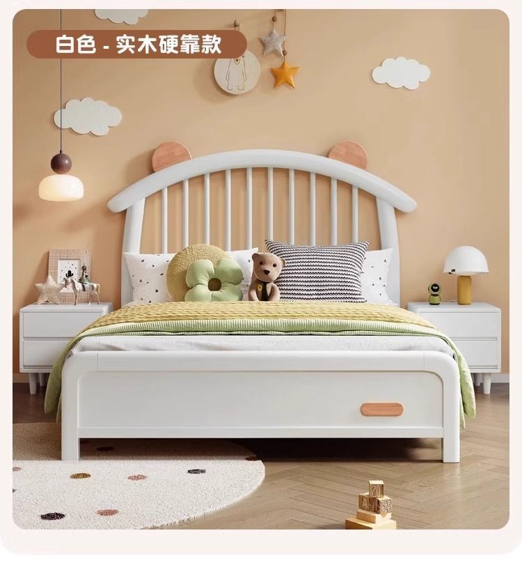 크림 스타일 단단한 나무 어린이 침대 현대 간단한 싱글 침대 1.2m 소년 소녀 만화 어린이 1.5 소년 침대