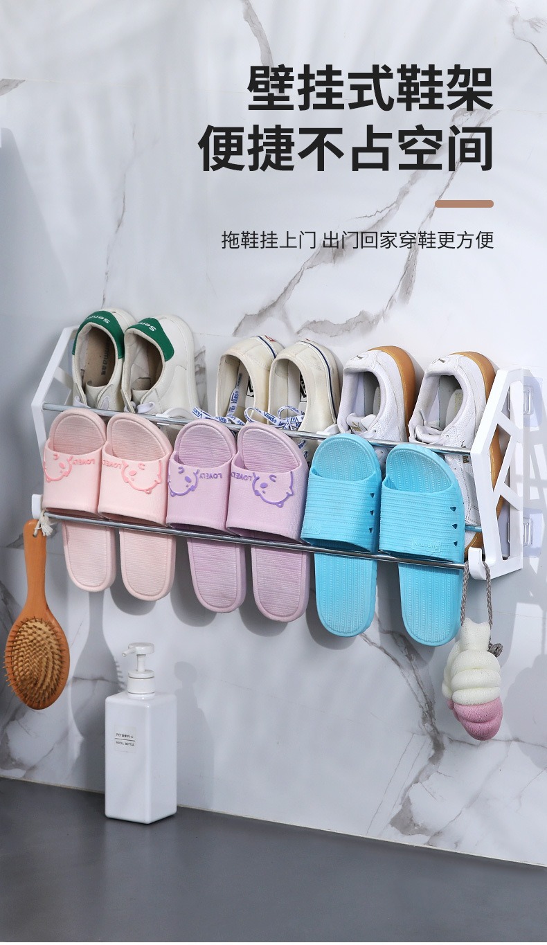 욕실 슬리퍼걸이, 구멍이 없는 욕실 수납선반, 신발수납용품, 화장실 벽걸이형 배수걸이