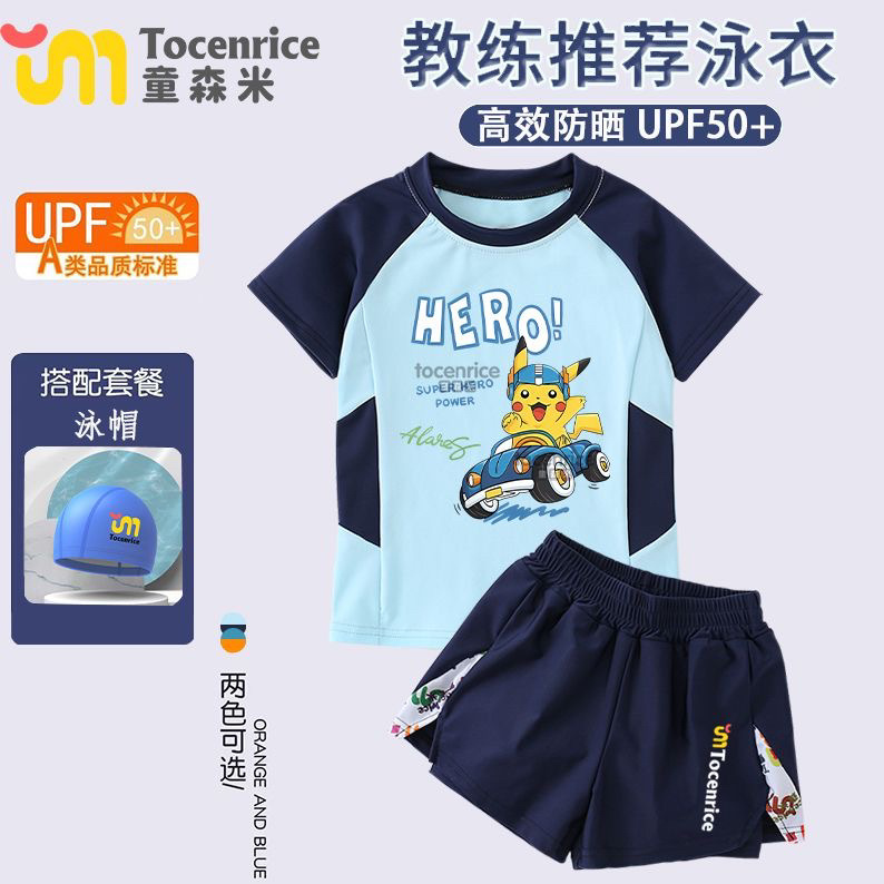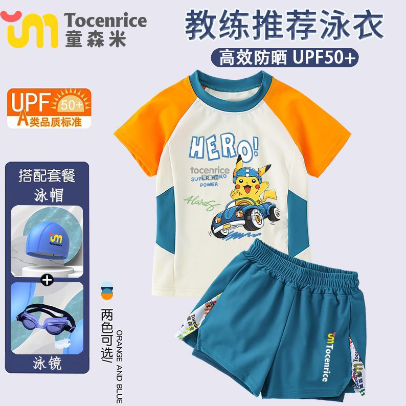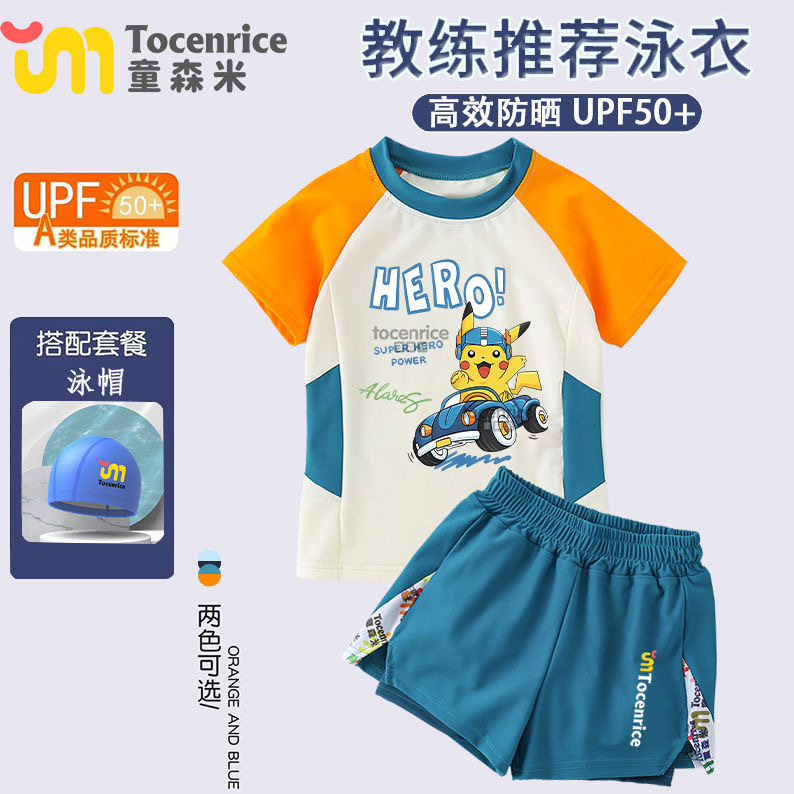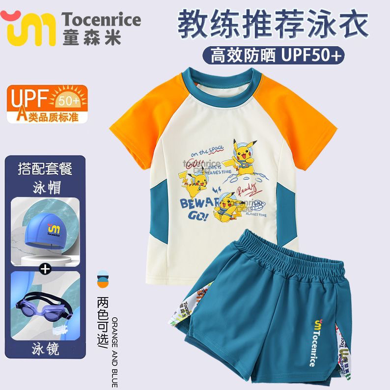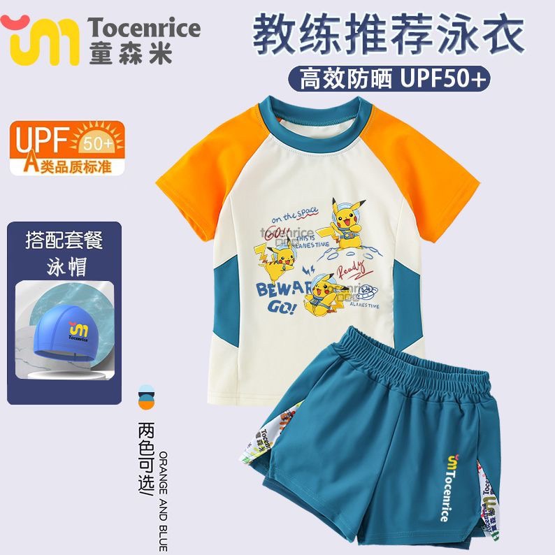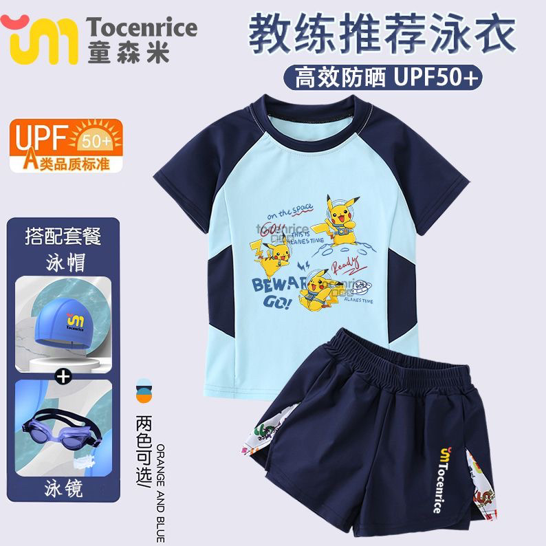 아동 수영복 피카츄 소년 스플릿 중대형 아동 수영복 여름 2025 새로운 자외선 차단 수영 트렁크 수영복 귀여운스토어 가기