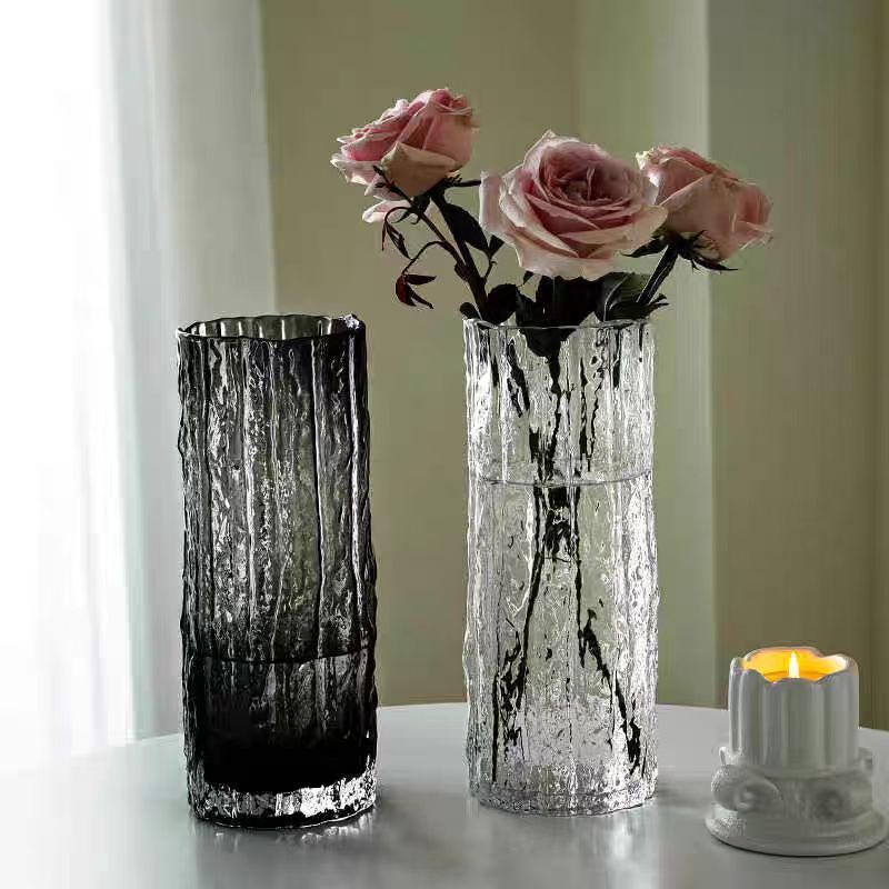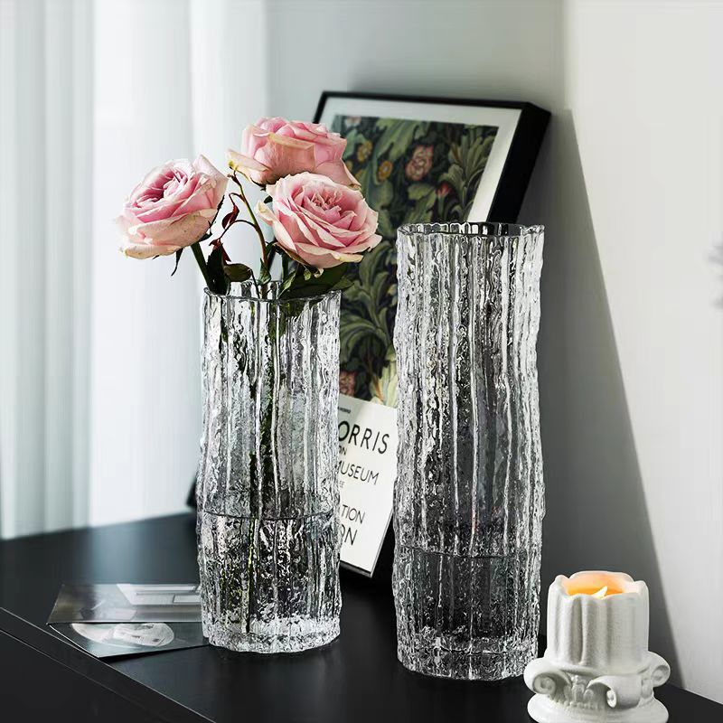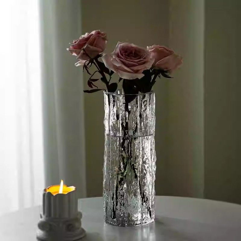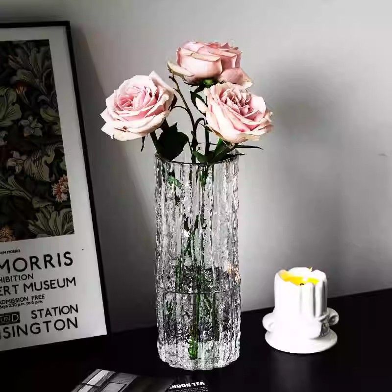 가벼운 고급스럽고 고급스러운 꽃병 장식품, 거실 물양식 유리 투명 꽃꽂이 장미 백합 꽃, 대구경 특별스토어 가기