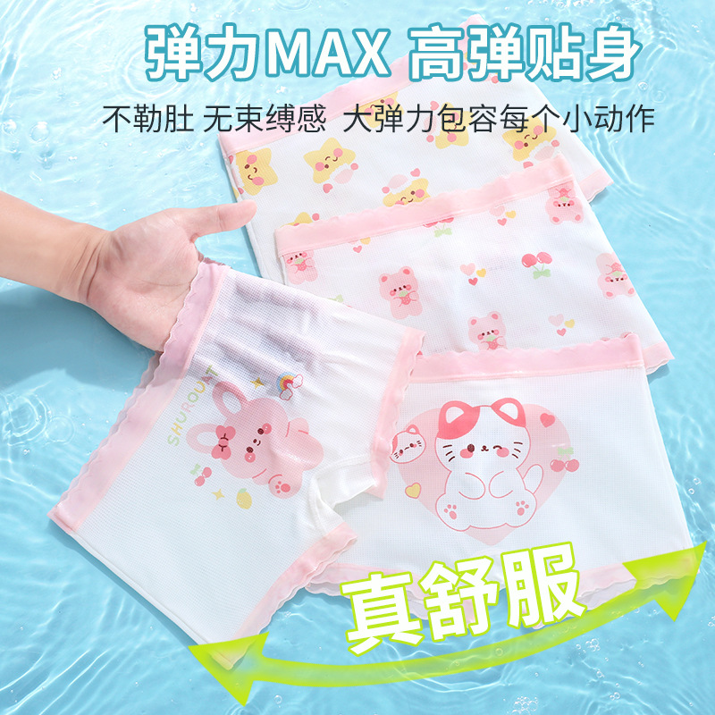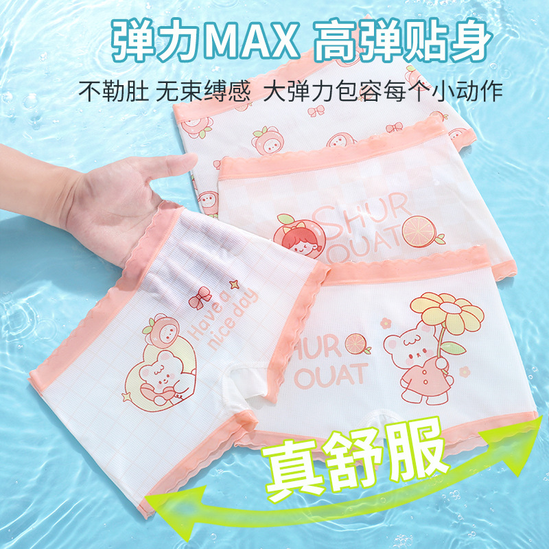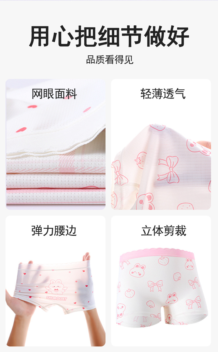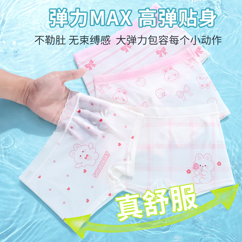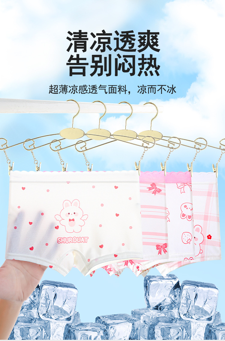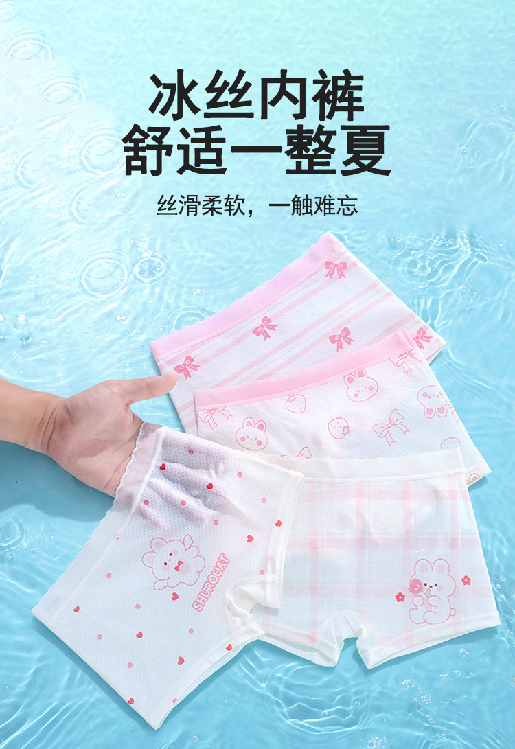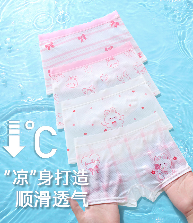 여름철 여아용 아이스 실크 속옷, 통기성이 좋고 시원하고 편안한 여아용 복서 팬티 10A 항균 복서 팬티