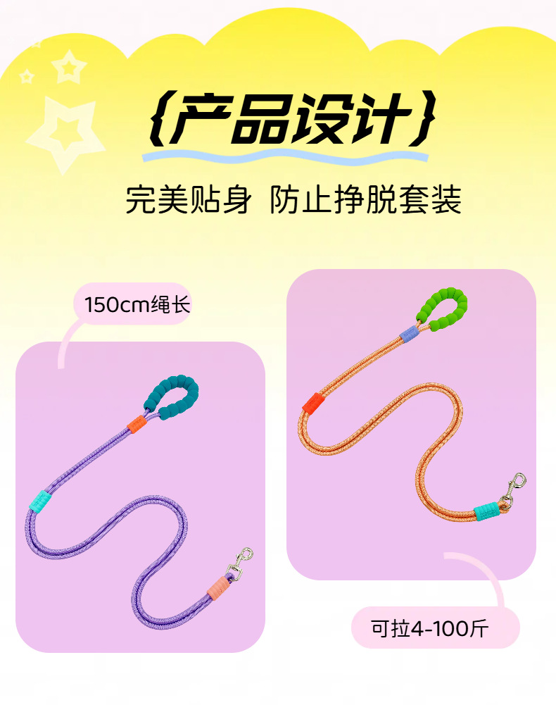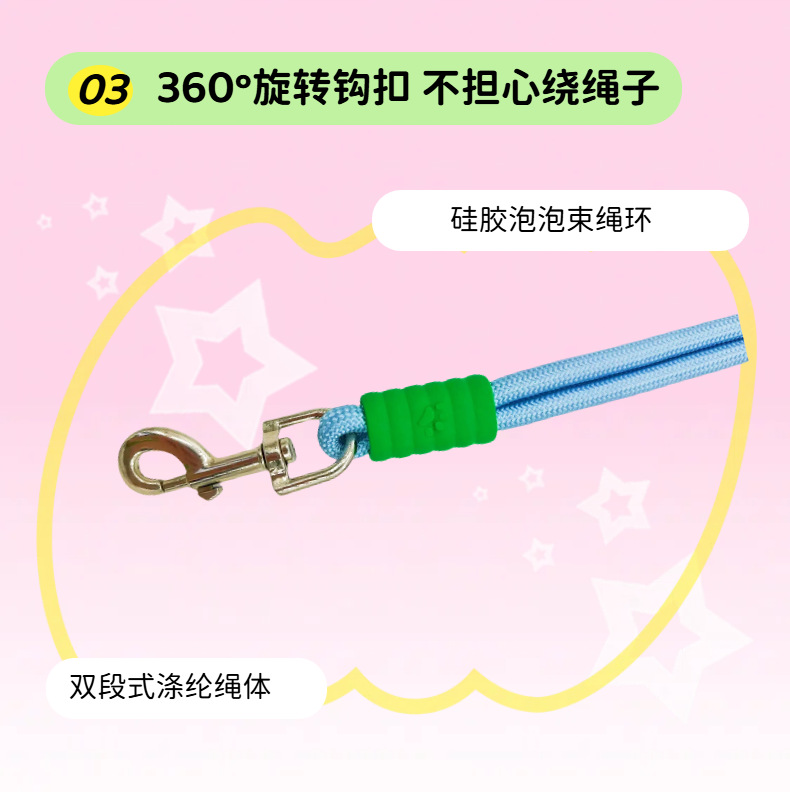허리에 걸 수 있는 개 목줄, 편안한 버블 코튼 개 목줄, 내마모성 개 산책용 나일론 P 로프, 싱글 리드