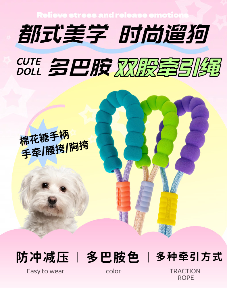 허리에 걸 수 있는 개 목줄, 편안한 버블 코튼 개 목줄, 내마모성 개 산책용 나일론 P 로프, 싱글 리드스토어 가기