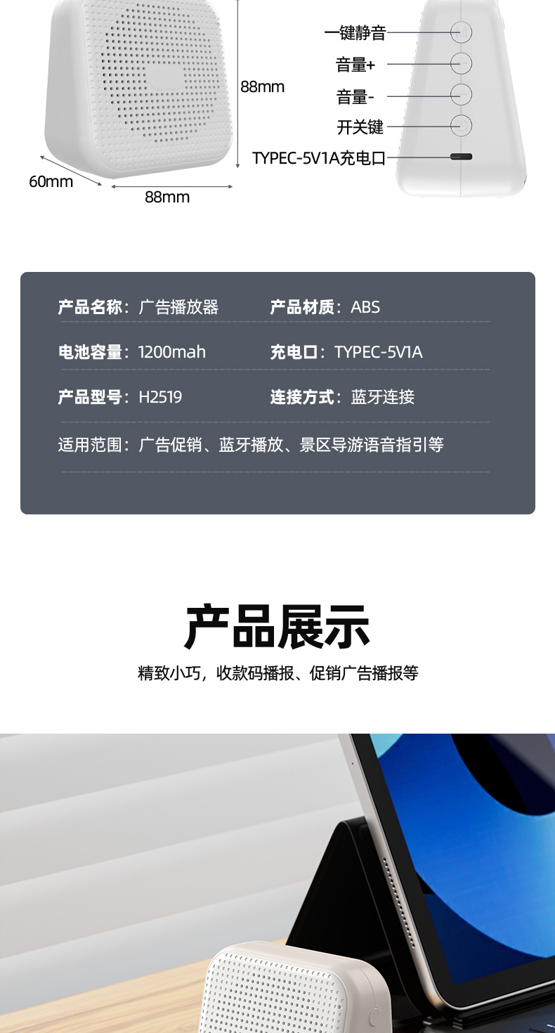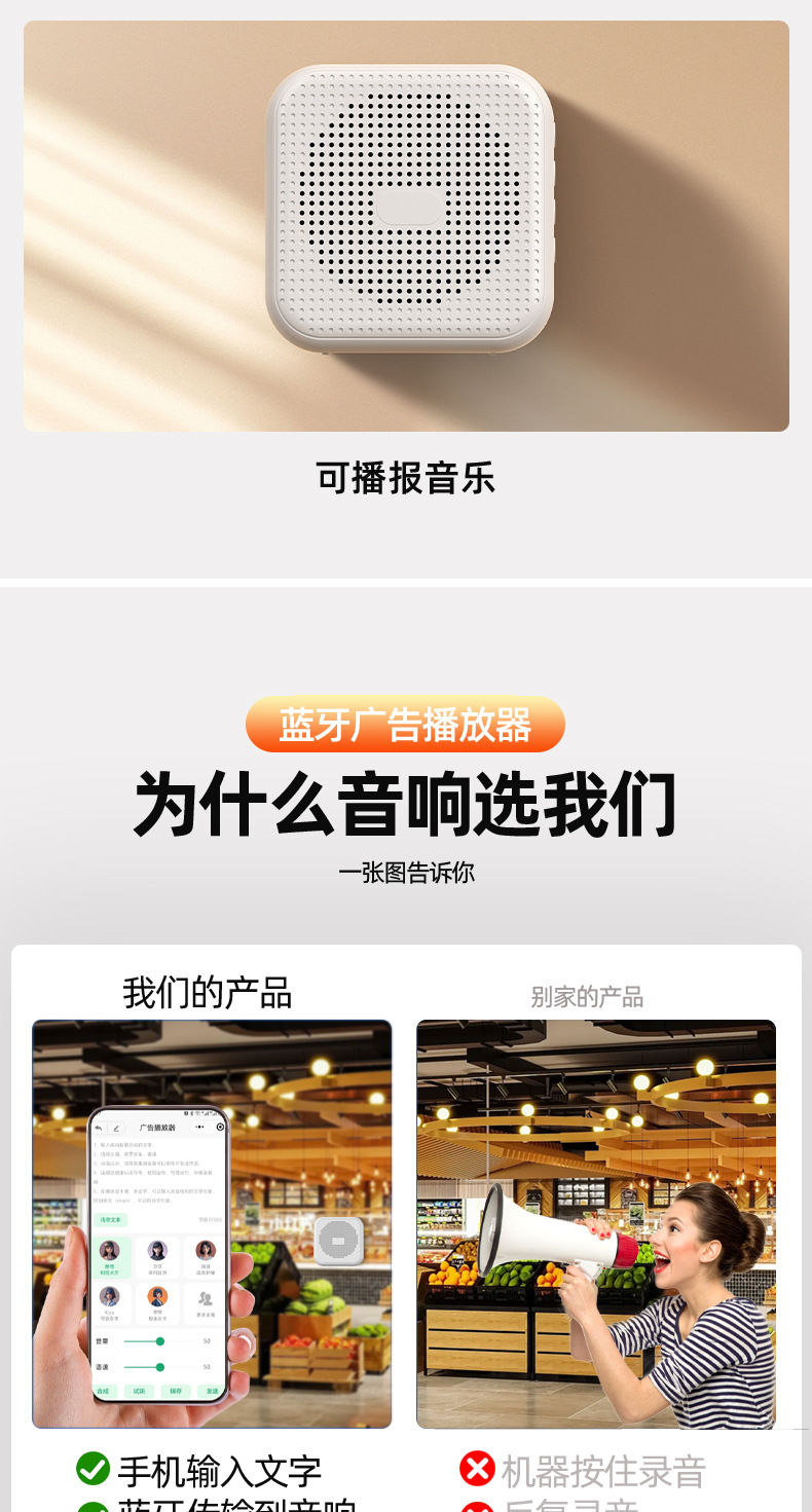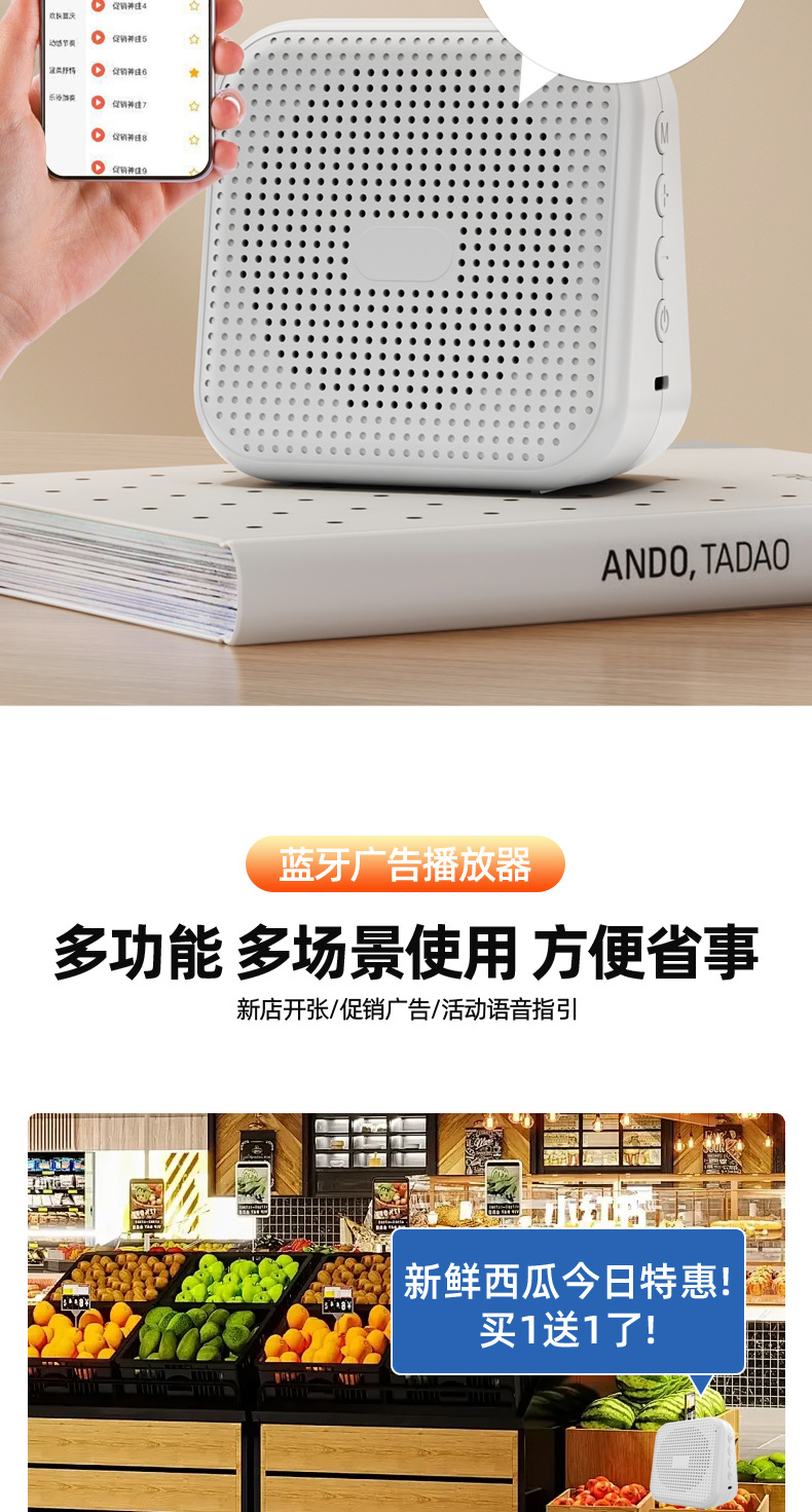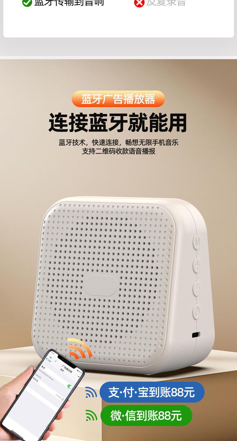 광고 오디오 반복 녹음 스피커 노점 판매자 텍스트-음성 변환 Bluetooth 올인원 범용스토어 가기