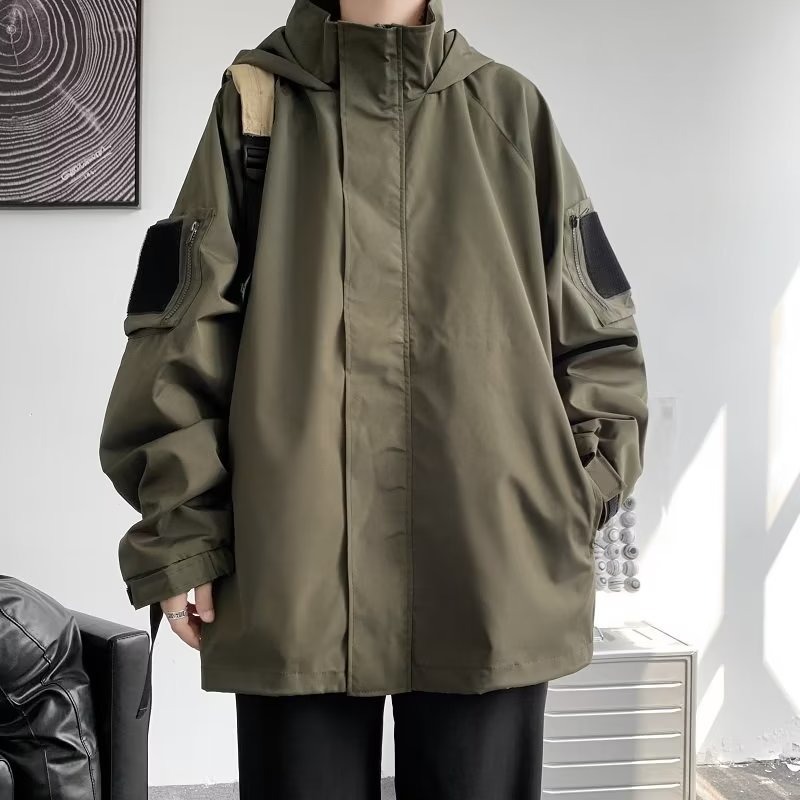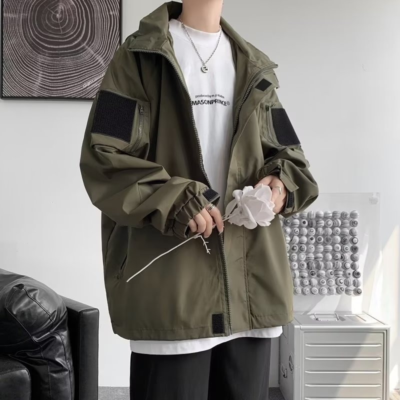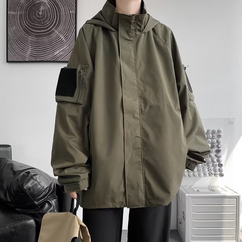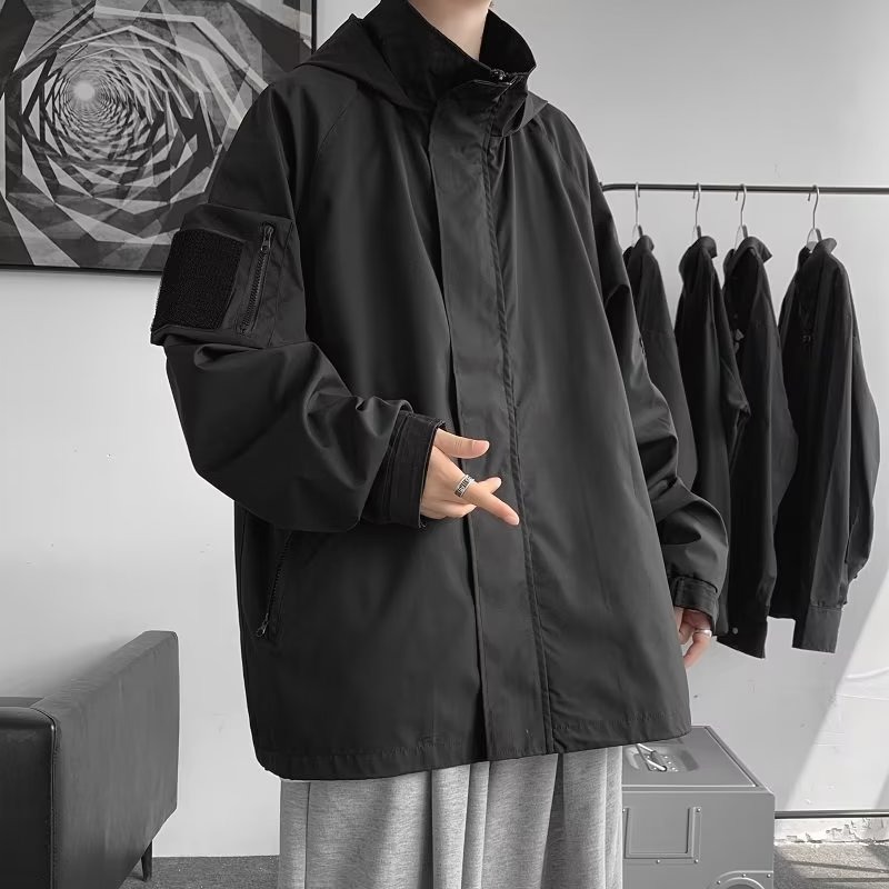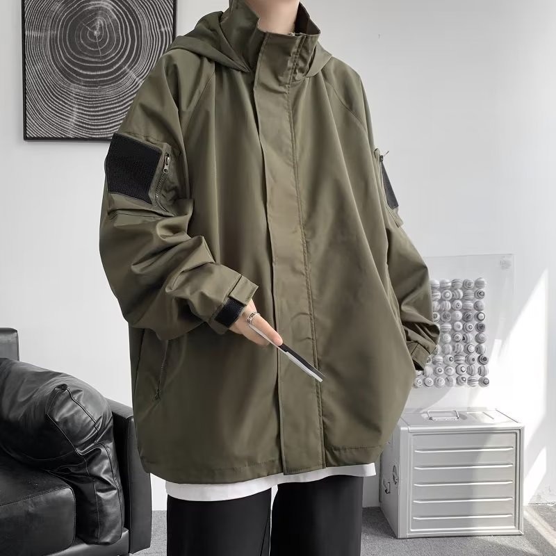 봄과 가을 벨크로 후드 자켓 남성 자켓 트렌디 브랜드 루즈 캐주얼 의류 남성용 학생 작업복 자켓