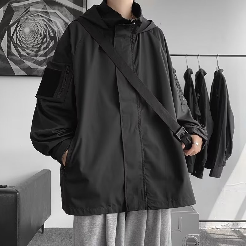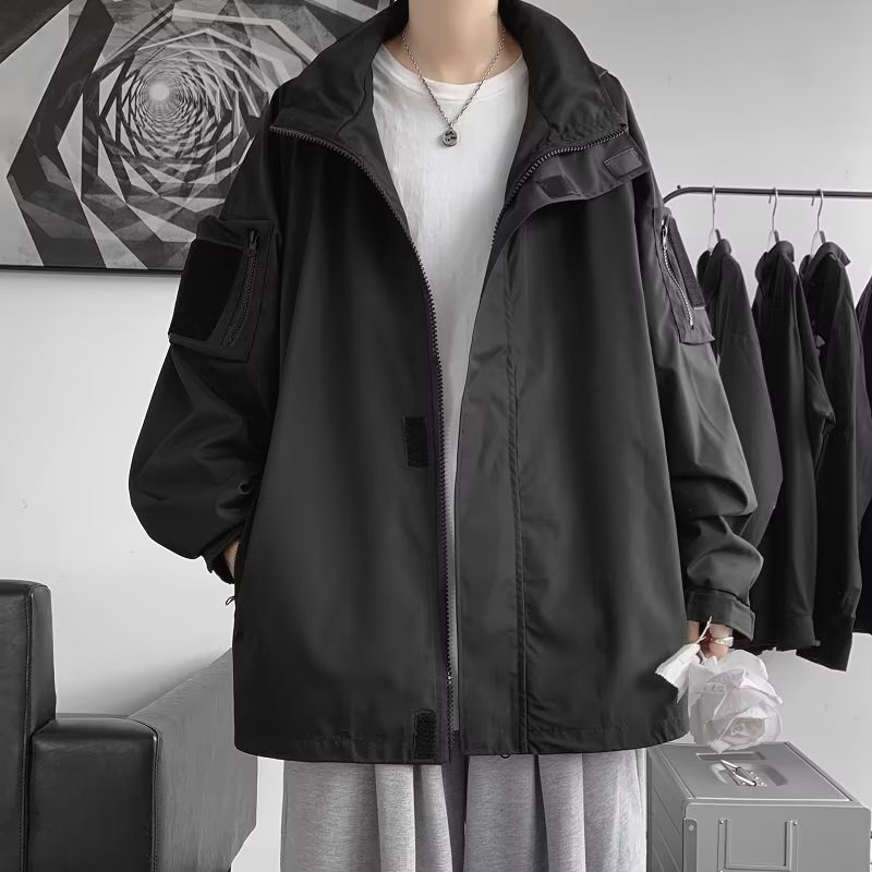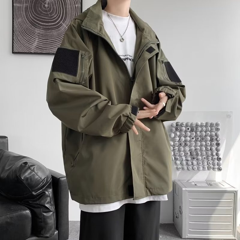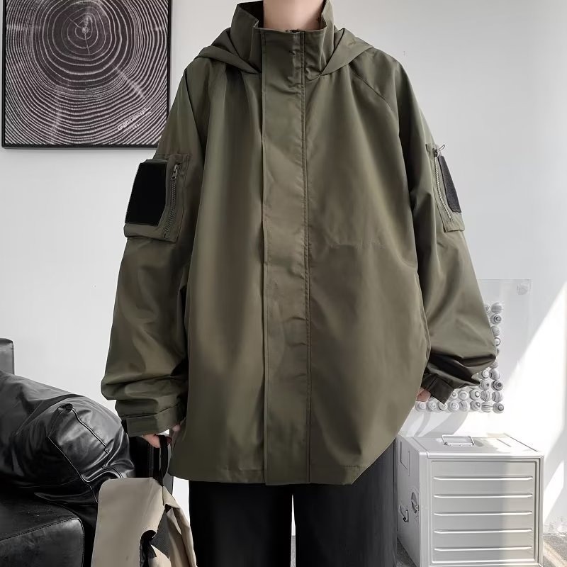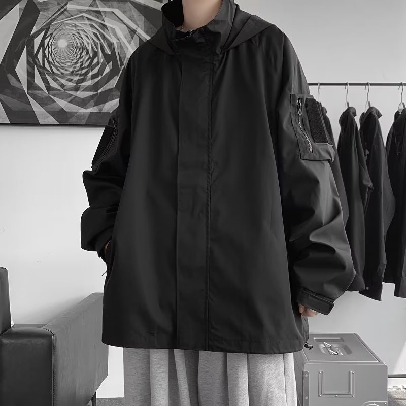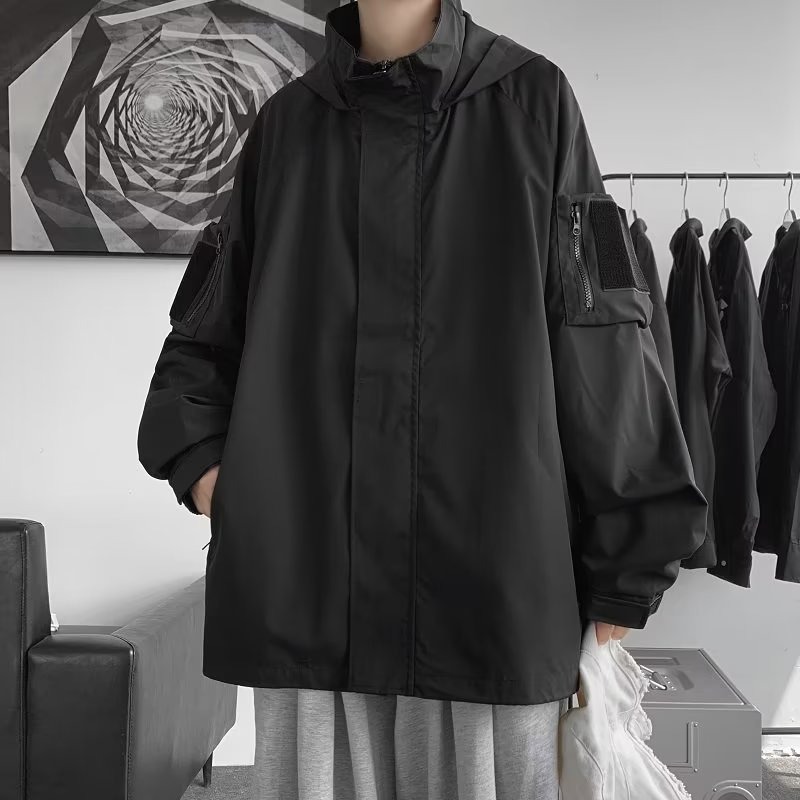 봄과 가을 벨크로 후드 자켓 남성 자켓 트렌디 브랜드 루즈 캐주얼 의류 남성용 학생 작업복 자켓